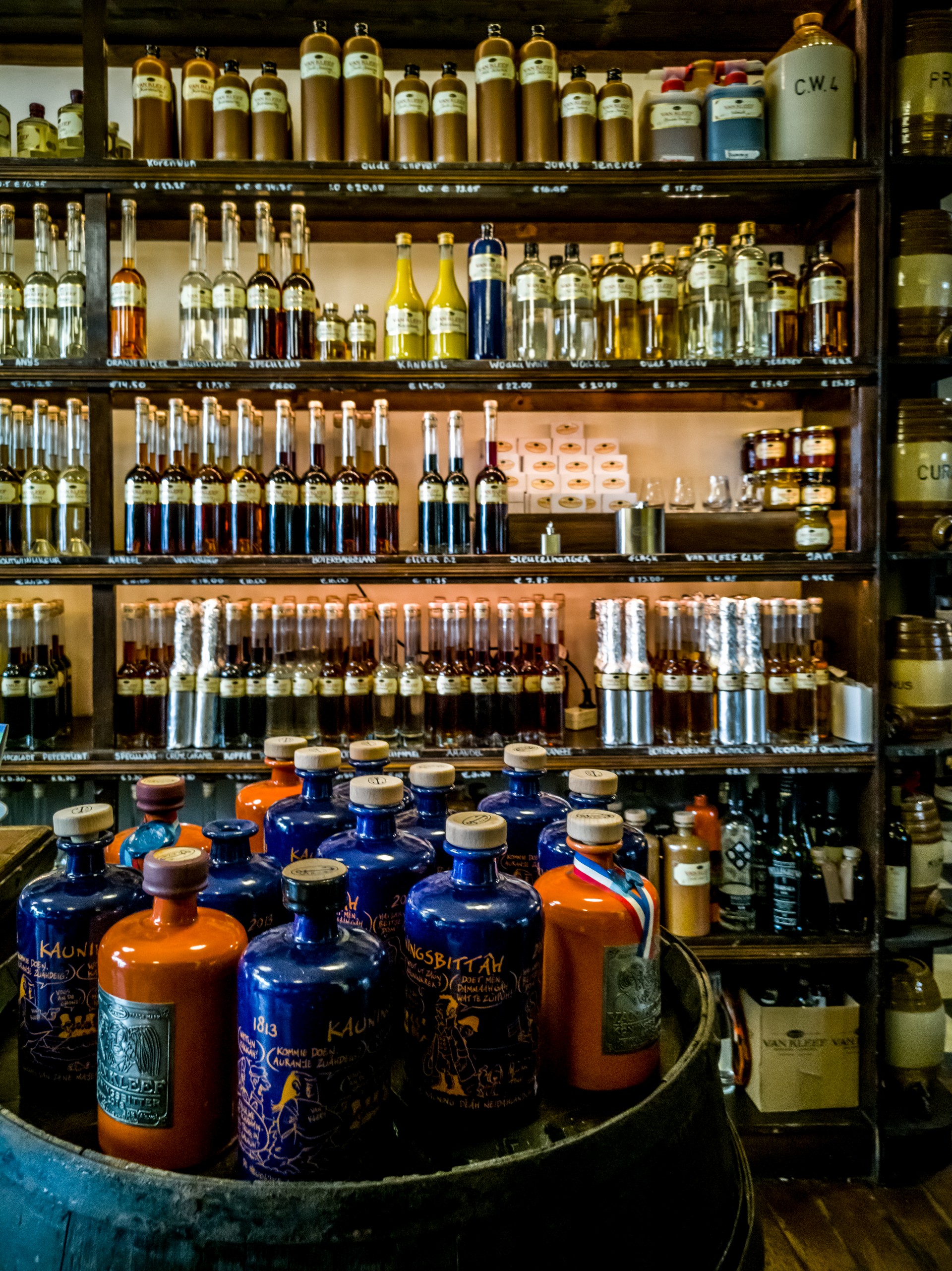 A quelques minutes de là, dans une petite rue, on passe devient une boutique aux airs d’antan. Cette boutique est en fait la dernière distillerie qui existe encore à La Haye : la Distillerie Van Kleef. Dans ce magasin d’un autre temps, il doit certainement ne pas avoir changé depuis la fondation de la distillerie en 1842, les bouteilles de jeune et de vieux genièvres couvrent tous les étages. Seules les liqueurs de fruits à coque et de fruits frais avec leurs bouteilles allongées très contemporaines brisent l’illusion. Si vous êtes seul.e dans la boutique, la patronne vous fera déguster les différents types de genièvres dont ceux qui ont mûri dans des fûts de chêne et dont le goût ressemble beaucoup à celui du whisky. Attention, n’abusez de la dégustation, le genièvre, c’est costaud. La modération est de mise.