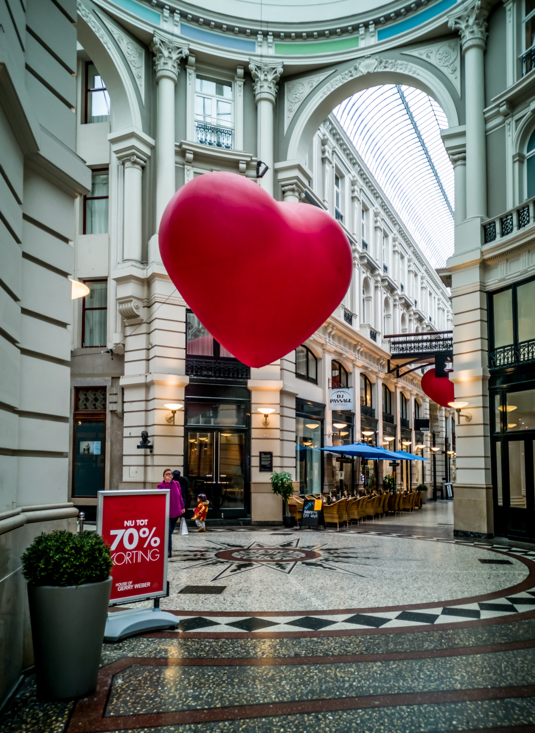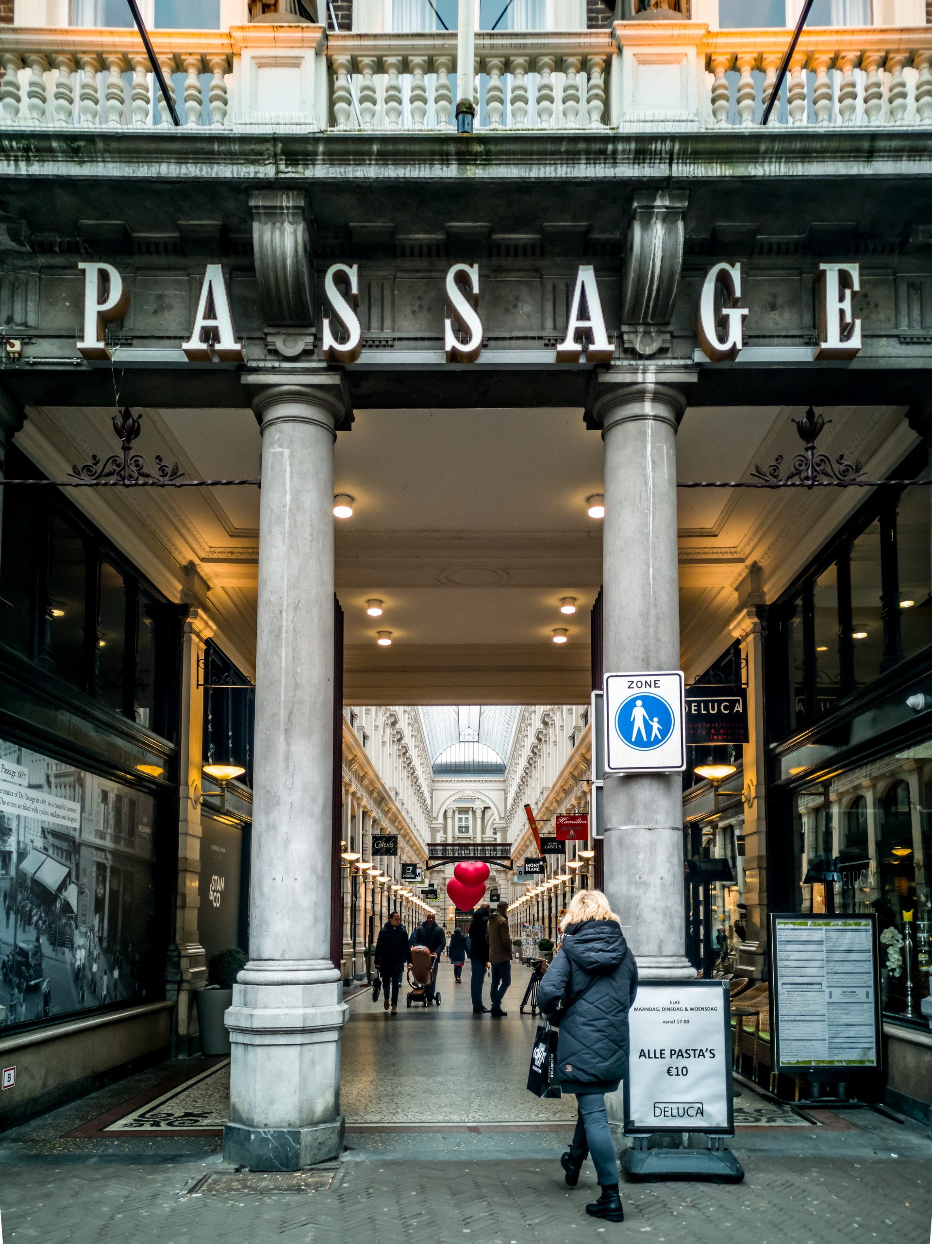 Je ne suis pas spécialement une accro au shopping mais quand je vois une galerie commerçante comme De Passage, je ne peux pas résister à aller m’y promener. Le XIXème siècle a vu la multiplication de ces galeries couvertes d’une verrière avec commerces en bas et appartement aux étages. Elles s’appellent Galeries Saint-Hubert, Galerie Vittorio-Emmanuelle ou Galerie Vivienne. La Haye ne pouvait manquer d’avoir la sienne, comme toute grande ville qui se respecte. De Passage est donc né et sa clarté et son élégance sont un plaisir pour les yeux, même si on n’est pas là pour faire des emplettes. Par contre, je reste plus mitigée sur l’extension contemporaine qui y a été ajoutée.