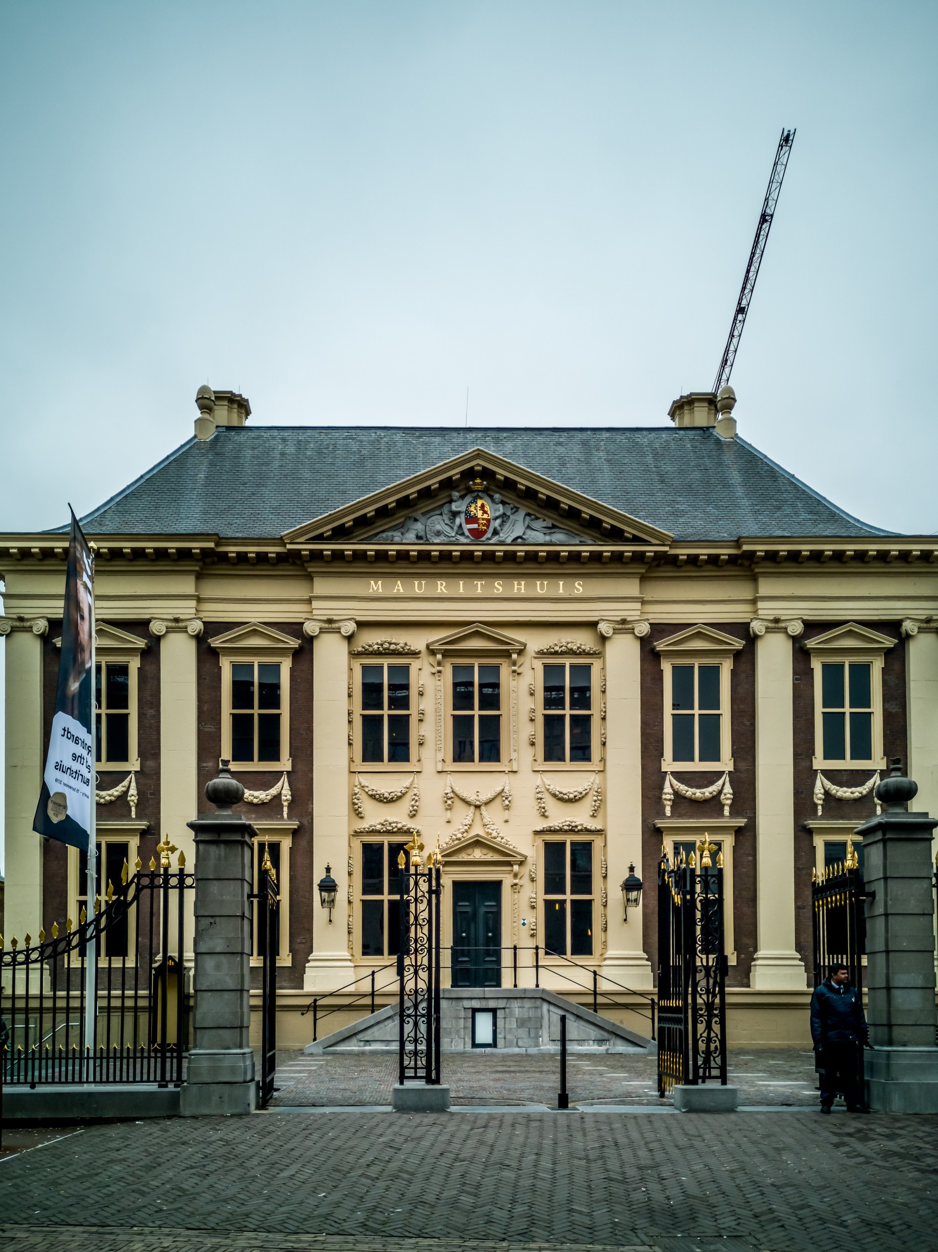 Comme je le disais, La Haye est le centre de la vie politique néerlandaise et mon premier arrêt sera royal : le Paleis Noordeinde, qui est le lieu de travail de Willem-Alexander, roi des Pays-Bas. Installé dans un joli parc (malheureusement un peu morne en hiver), c’est un bel ouvrage de style classique d’un blanc éclatant qui trône dans ce coin huppé de la ville. A l’origine, il y avait une ferme (on peut d’ailleurs voir le joli cottage qui subsiste dans le parc). Au nord, vous trouverez aussi les écuries royales, elles ne peuvent malheureusement pas être visitées.