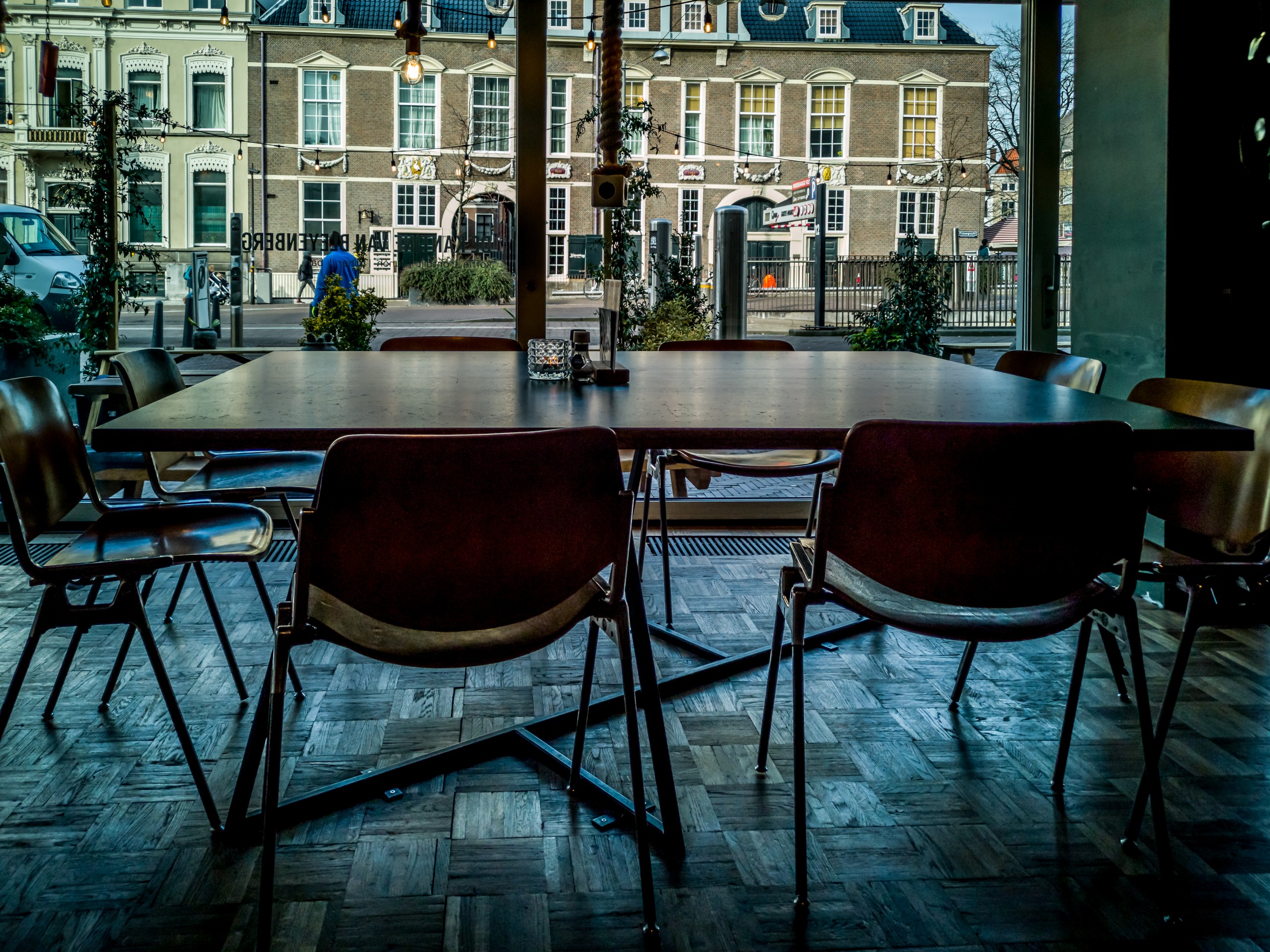 Le soir du deuxième jour, me voilà à nouveau jetée sur les pavés urbains à la recherche d’un endroit où dîner. Pas de chance, quand j’arrive, la plupart des restaurants sont complets de chez complet. Heureusement, le quartier de Buitenhof ne manque pas d’options.