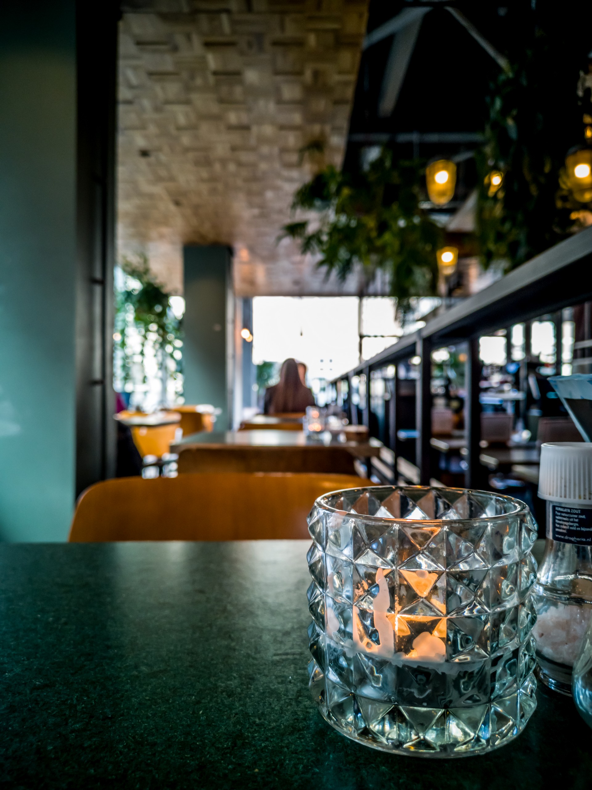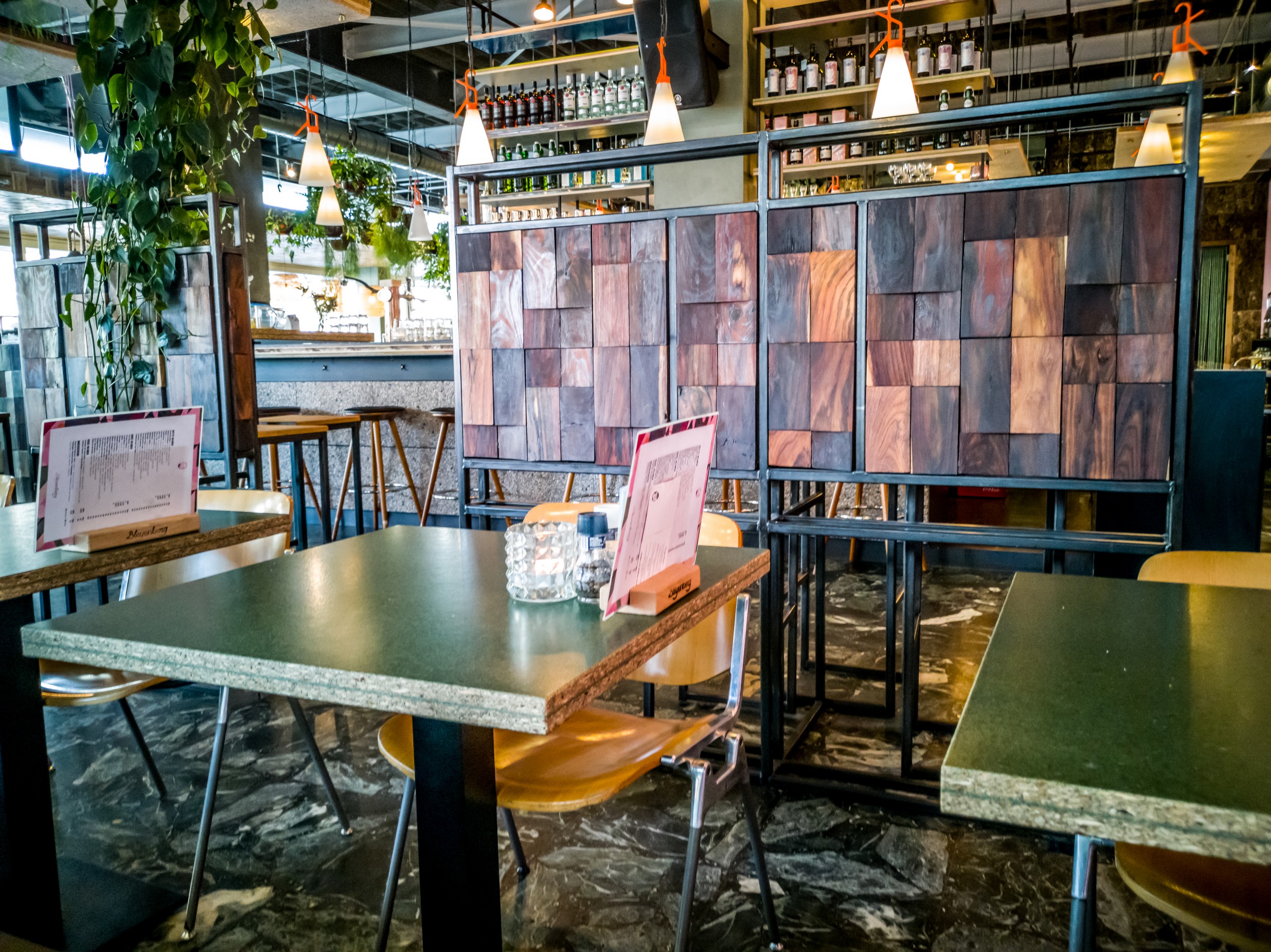 Le bâtiment en lui-même tranche énormément avec le reste de la Grote Markt, c’est un bloc de béton datant des années 80 où était installé un magasin de papier peint et de déco : Kwantum. A sa tête, Monsieur Bleyenberg, un sacré personnage d’entrepreneur avec un franc-parler devenu légende à La Haye. Les papiers-peints existent toujours mais le magasin a fini par fermer ses portes. Il connaît maintenant une nouvelle vie sous plusieurs aspects : il y a d’abords le rooftop bar (qui n’ouvrait malheureusement qu’à 16h, un peu trop tôt), les salles de réunions, un des meilleurs clubs de La Haye (Het Magazijn) ET la cantine, où je suis passée boire mon coca. L’endroit est vraiment joliment décoré et il y a un contraste intéressant entre le béton, le bois et les nombreuses plantes qui décorent l’espace. Et on peut y venir du petit-déjeuner jusque tard le soir. Petit coup de cœur.