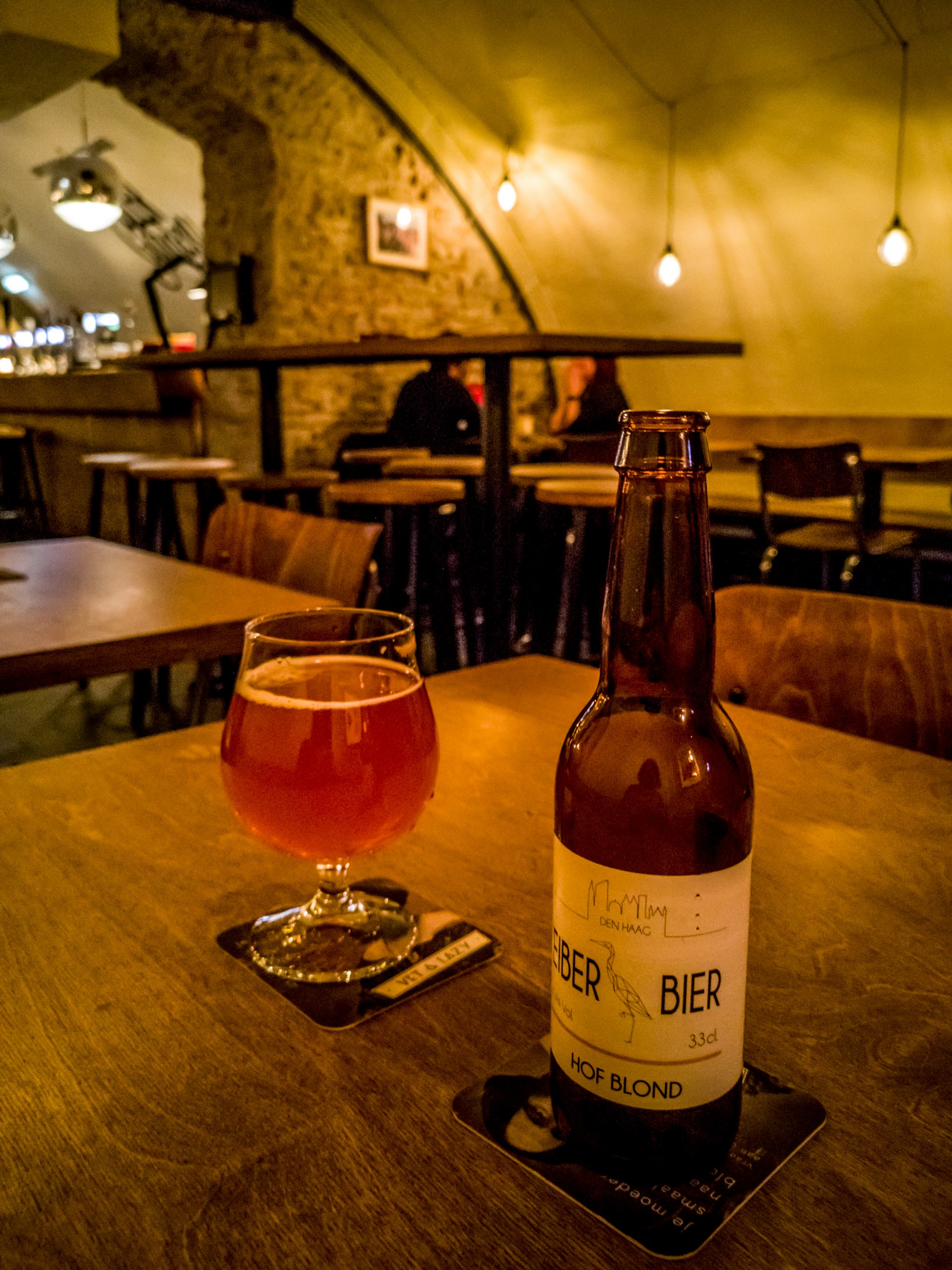 Quand je suis installée dans mon hôtel, il est plus de 22 heures (bien trop tard pour les restaurants hollandais qui ferment tôt) et attirée par une affiche promettant « de la bière et de la junk food bio », je rentre au « Beer Garden ». Plutôt qu’un jardin à bière, c’est une cave à bière que je découvre et le lieu est plutôt sympa pour les soirées d’hiver comme celle-ci avec son plafond en voûte, ses bancs en bois et ses lustres métalliques. Comme je m’y attendais, il est trop tard pour commander un plat, je me rabats donc sur les snacks, les fameuses « bitterballen », les boulettes de viande frites. Et c’est ici que je vais réaliser une chose ; La Haye est plein de jeunes expatriés, les deux tables à côté des miennes sont des étudiants venant d’ailleurs. En ville, je vais entendre parler anglais aussi souvent que néerlandais, ville étudiante et internationale oblige !