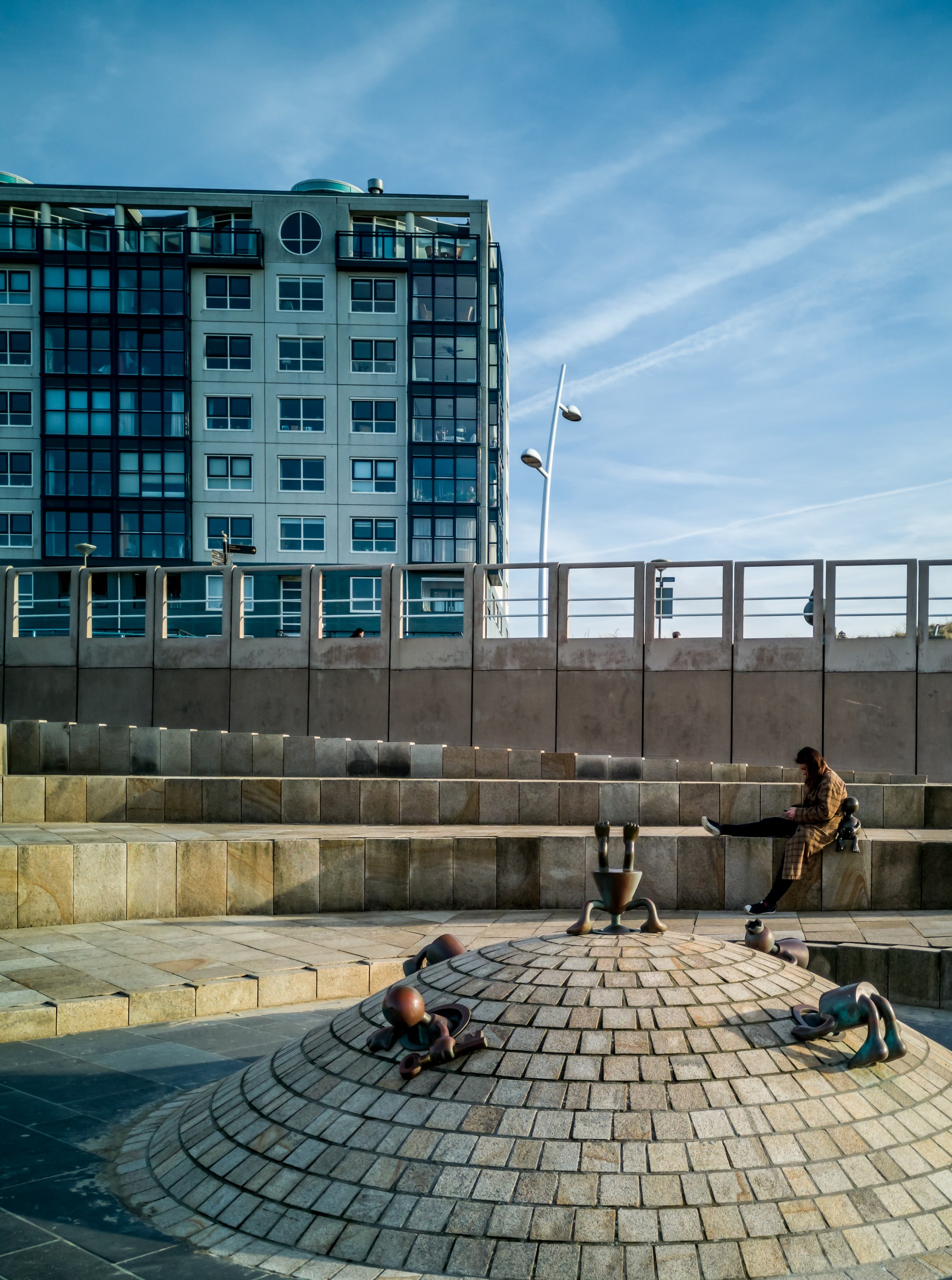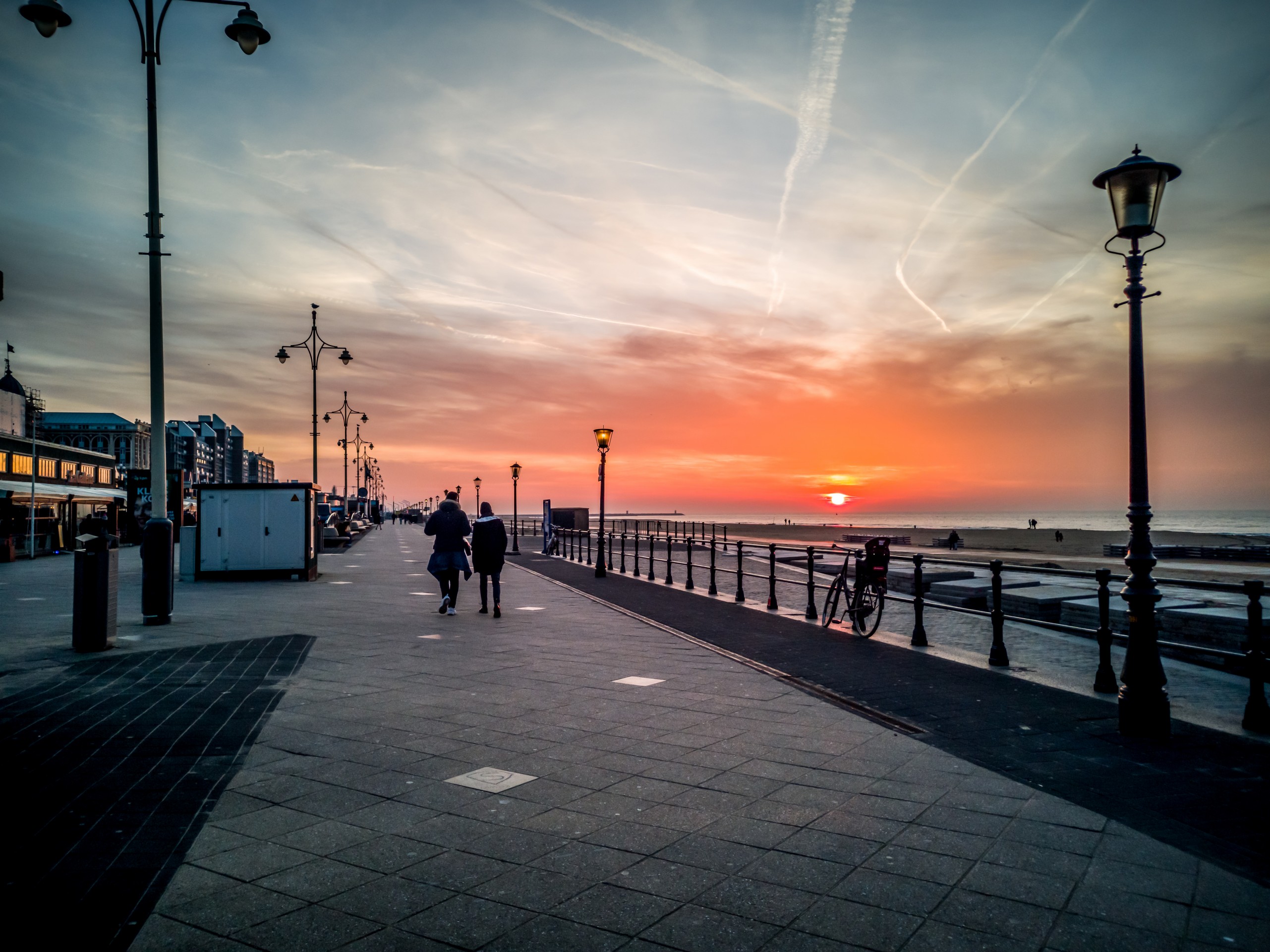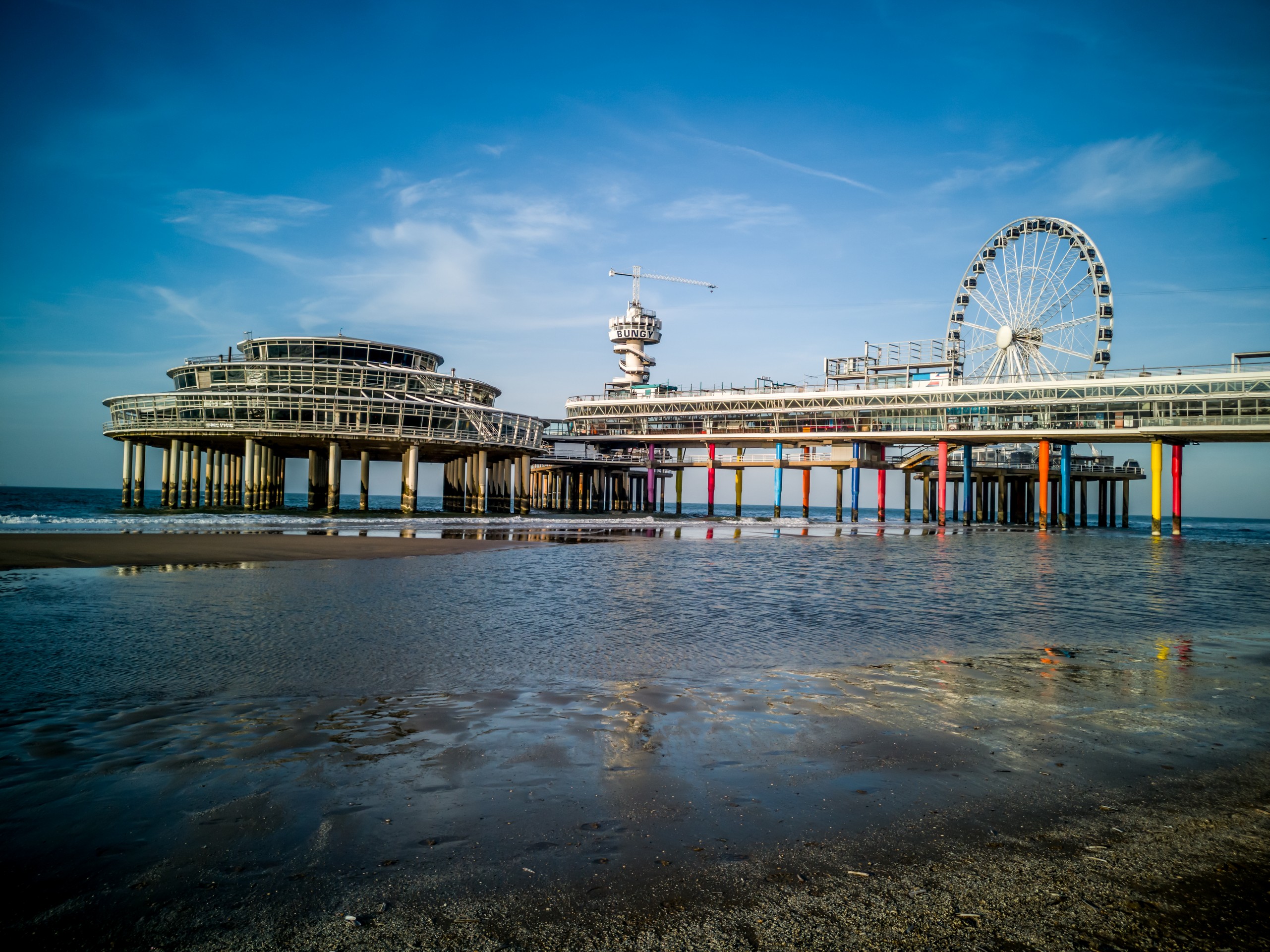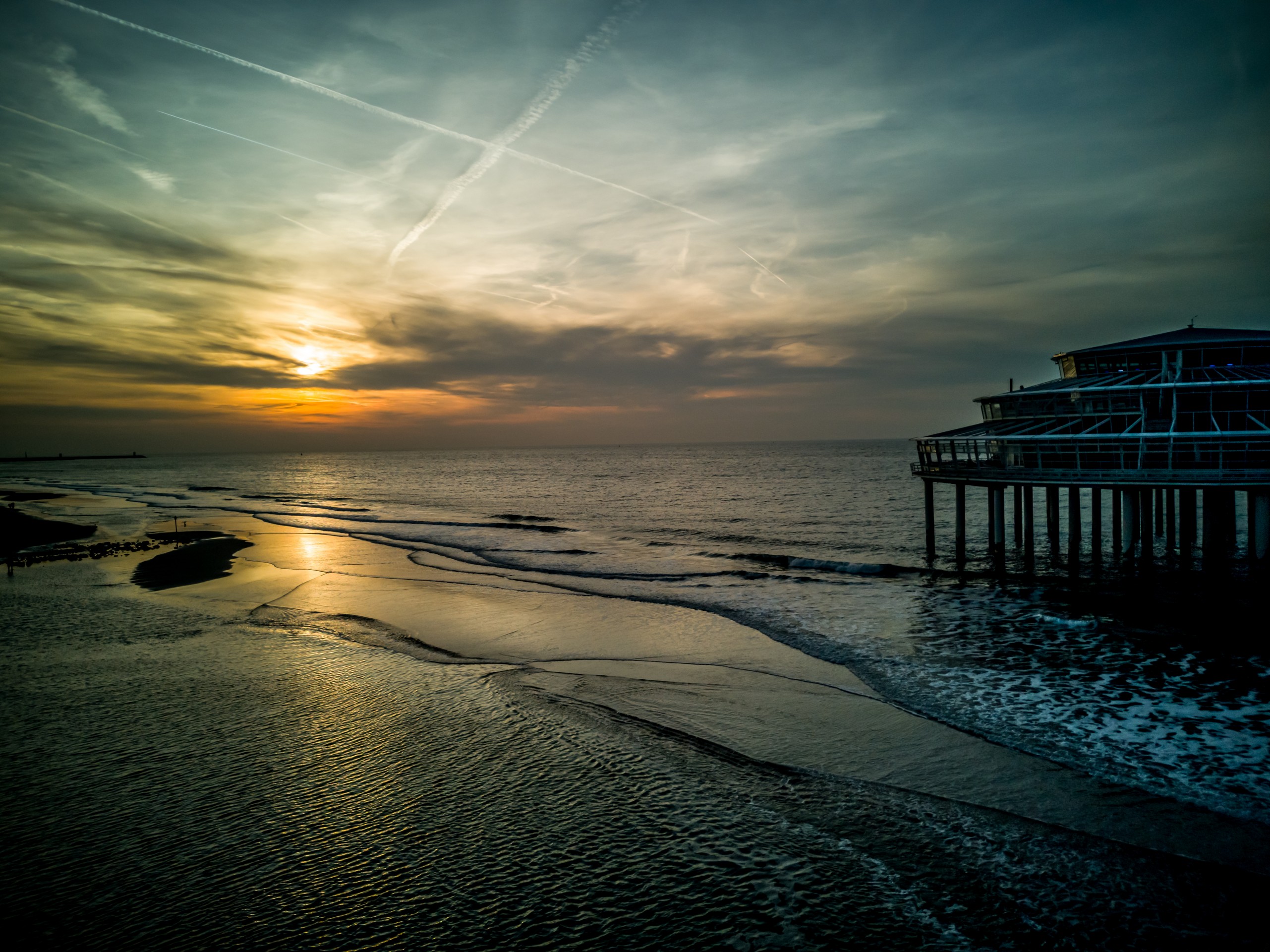Qu’il est loin le temps où Scheveningen était un village de pêcheurs. Un peu moins loin, l’époque des premiers bains de mer, mais il reste les élégantes maisons du XIXème. Le front de mer, lui, a subi les mêmes outrages que les côtes belges. Il y a des moches bâtiments en forme de barre. Alors tournez votre regard vers la mer et admirez l’immense étendue de sable (11 km de plage sur la Mer du Nord). Si vous vous baladez sur la digue, vous croiserez sûrement de nombreuses oeuvres d’art. Ce sont les sculptures du parcours Beelden aan Zee qui égaient la promenade. Par contre, on ne peut pas manquer le plat de résistance de la plage de Scheveningen : sa jetée. La Jetée de Scheveningen s’étire loin, suspendue au-dessus de la mer. Elle est terminée par une rotonde et flanquée d’une grande roue. On peut même sauter à l’élastique ! La jetée en elle-même est un véritable centre de loisir. Premièrement, elle est à deux étages (un étage complètement fermé et l’autre, ouvert) et à l’intérieur du premier, on trouve des boutiques, restaurants et bars, certains avec terrasse. Je ne me le fais pas dire deux fois et après une longue promenade sur la plage, je vais tranquillement m’installer dans un canapé face au soleil couchant, bien au chaud à admirer la vue et les gens qui déambulent sur le sable.