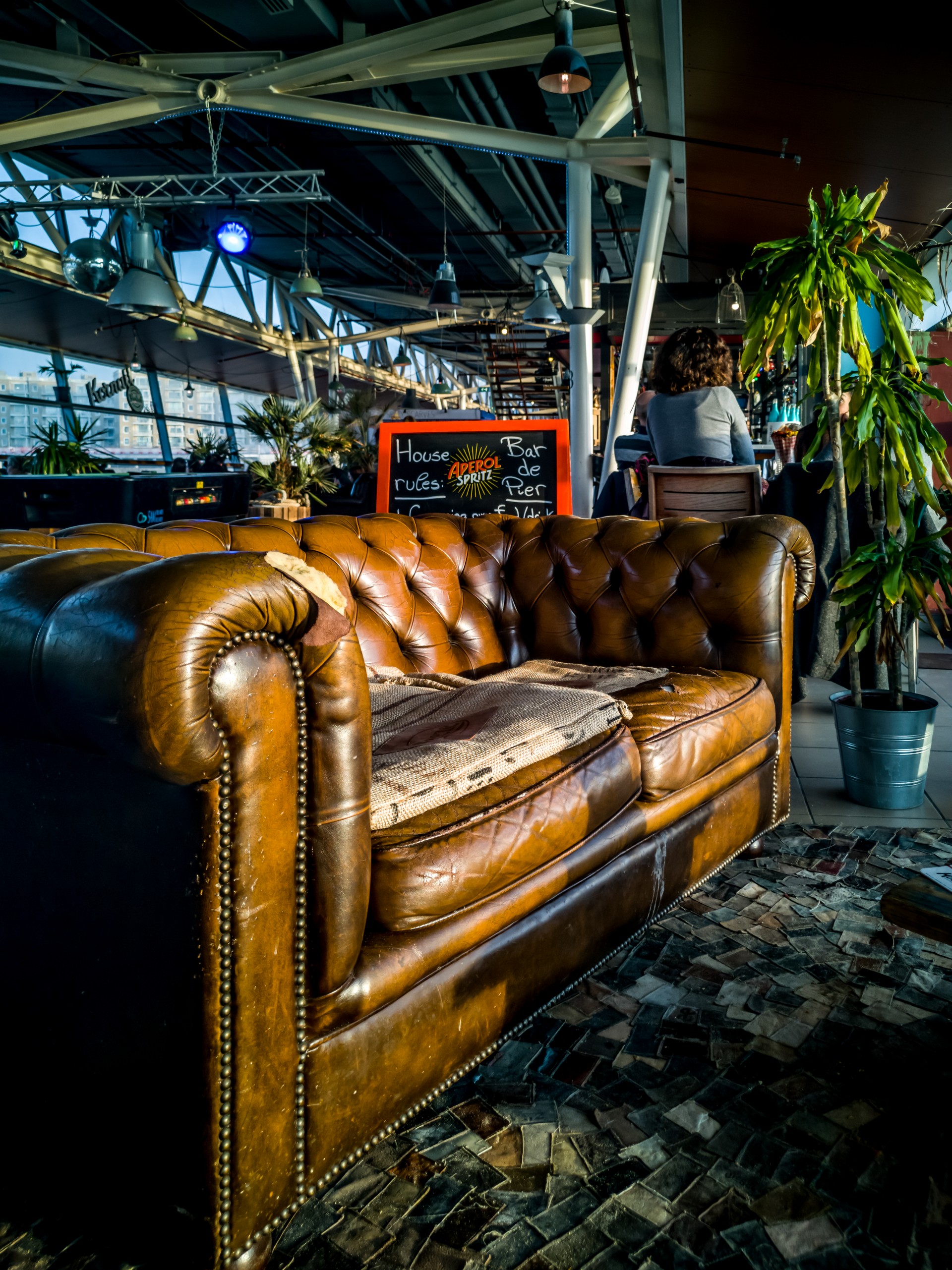La dégustation à la distillerie, m’ayant donné soif, avant de prendre le tram pour Scheveningen, j’ai décidé de m’accorder un petit coca dans un lieu très, très branché : Bleyenberg.