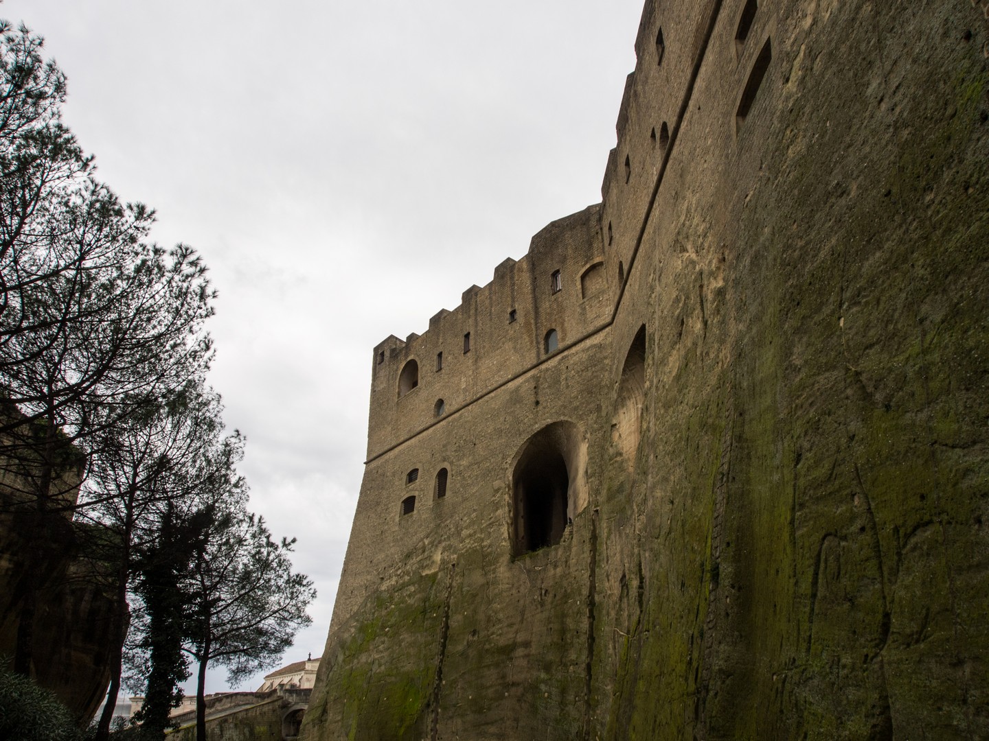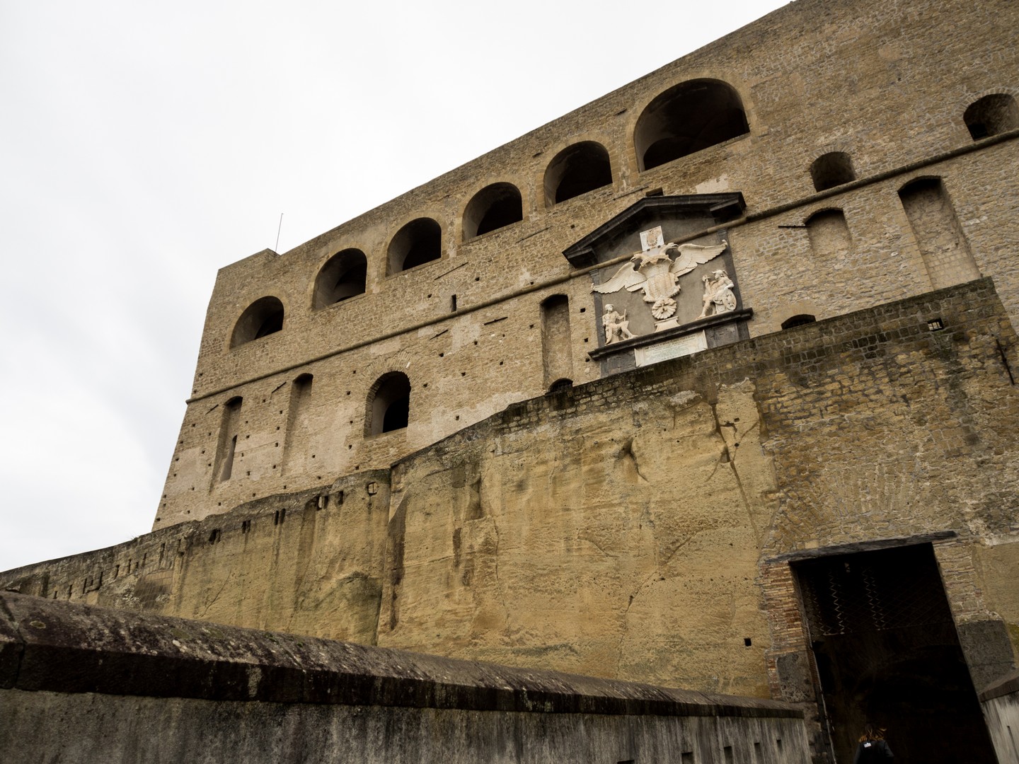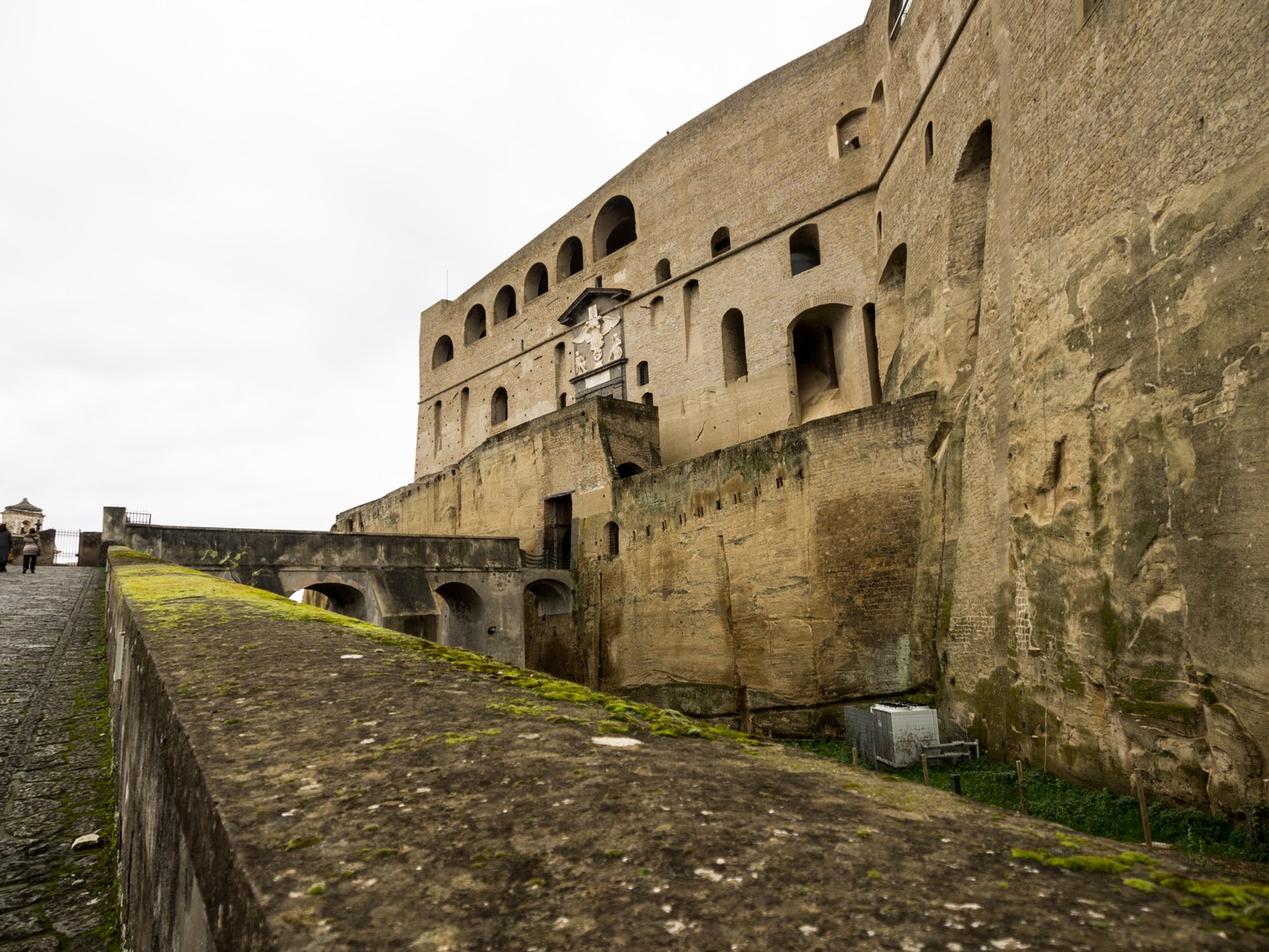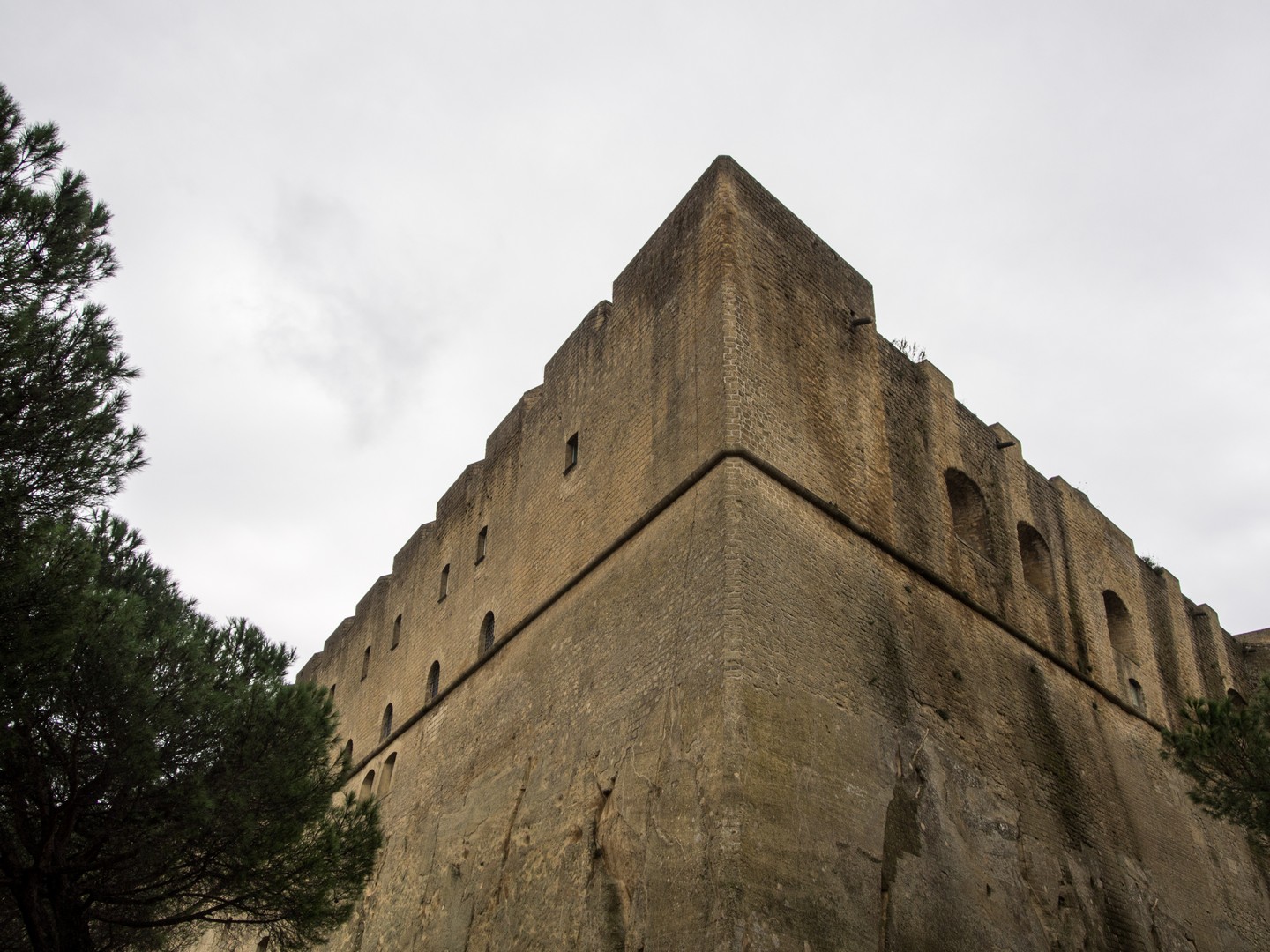 Construits sous les Angevins au départ puis complètement remanié sous la période de règne des Aragons, ce fort en étoile fut un élément de défense indispensable pour Naples. De part sa position, il veille sur toute la ville et la baie mais ce qui impressionne le plus, c’est la taille de ses murs. C’est tout simplement immense ! Sa masse écrasante de pierre de tuf jaune semble vouloir atteindre le ciel. Et ça rend du temps pour arriver à sa grande court intérieure, à travers galeries et arches. Mais une fois monté le chemin de garde du château, quelle vue !!! Sans doute une des plus belles de Naples : on aperçoit le Vésuve, la tête dans les nuages, Spaccanapoli, la longue rue qui coupe Naples comme une balafre, le petit « Manhattan » napolitain qui date des années 80, et bien entendue, Capri, encore elle… où je rêve d’aller lors d’une prochaine visite.