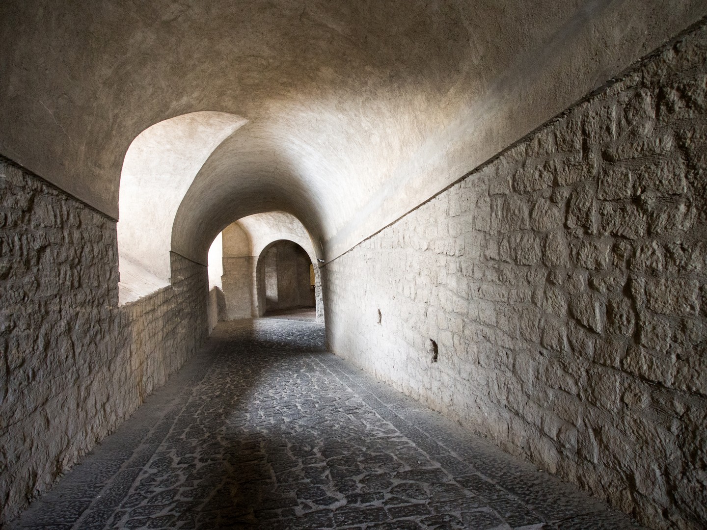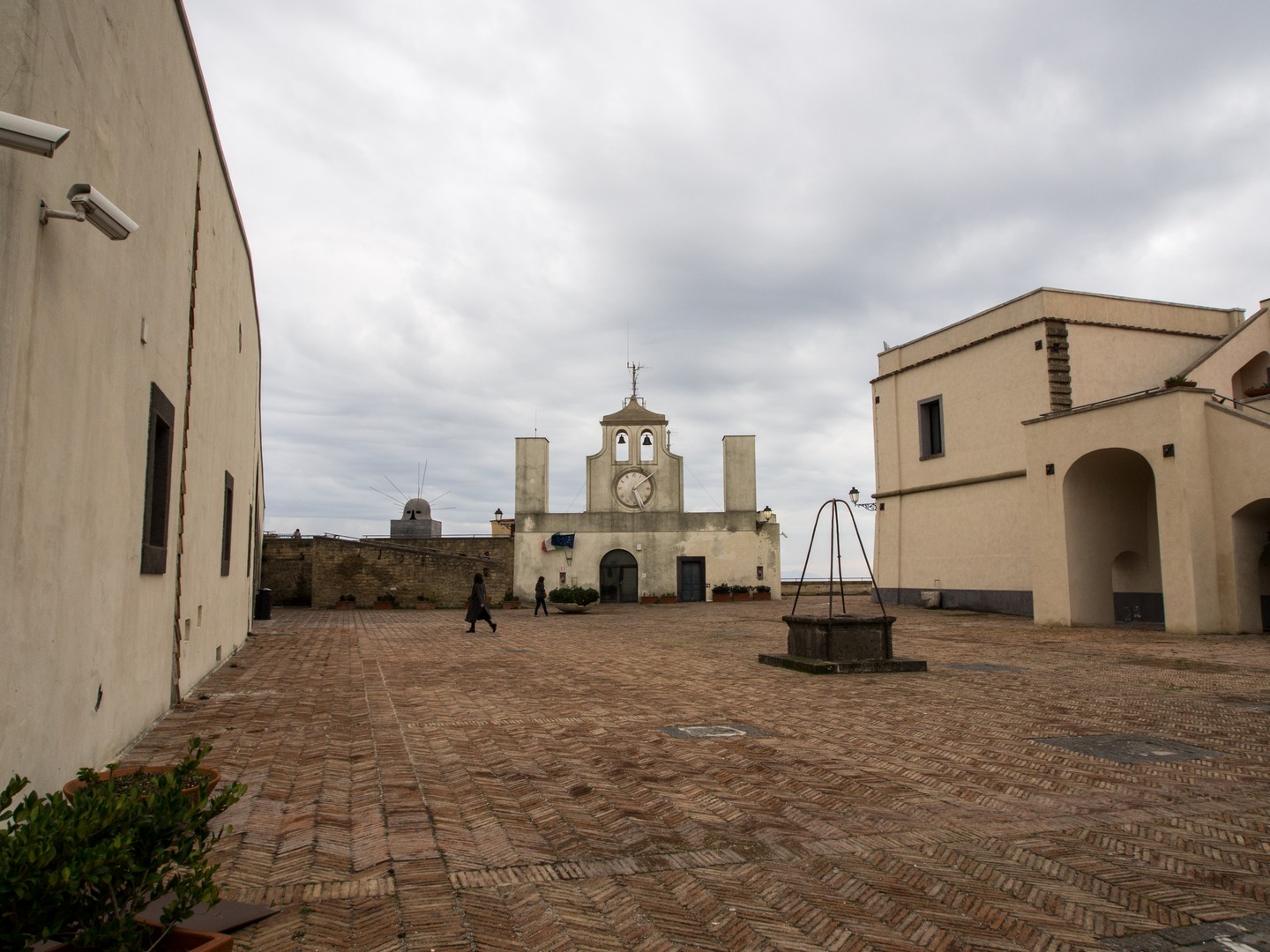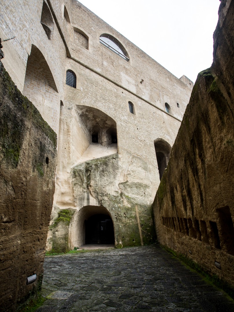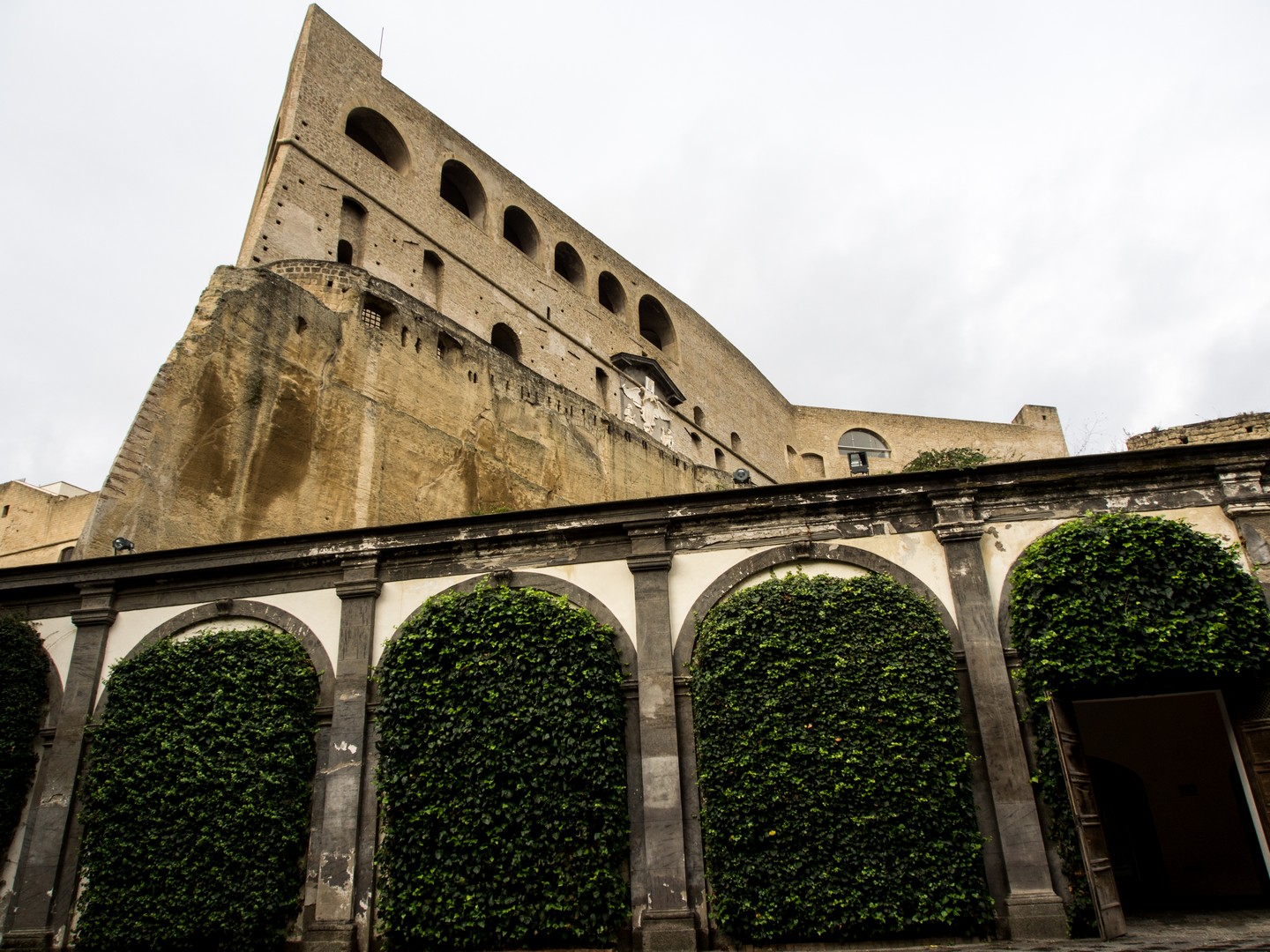 Construits sous les Angevins au départ puis complètement remanié sous la période de règne des Aragons, ce fort en étoile fut un élément de défense indispensable pour Naples. De part sa position, il veille sur toute la ville et la baie mais ce qui impressionne le plus, c’est la taille de ses murs. C’est tout simplement immense ! Sa masse écrasante de pierre de tuf jaune semble vouloir atteindre le ciel. Et ça rend du temps pour arriver à sa grande court intérieure, à travers galeries et arches. Mais une fois monté le chemin de garde du château, quelle vue !!! Sans doute une des plus belles de Naples : on aperçoit le Vésuve, la tête dans les nuages, Spaccanapoli, la longue rue qui coupe Naples comme une balafre, le petit « Manhattan » napolitain qui date des années 80, et bien entendue, Capri, encore elle… où je rêve d’aller lors d’une prochaine visite.