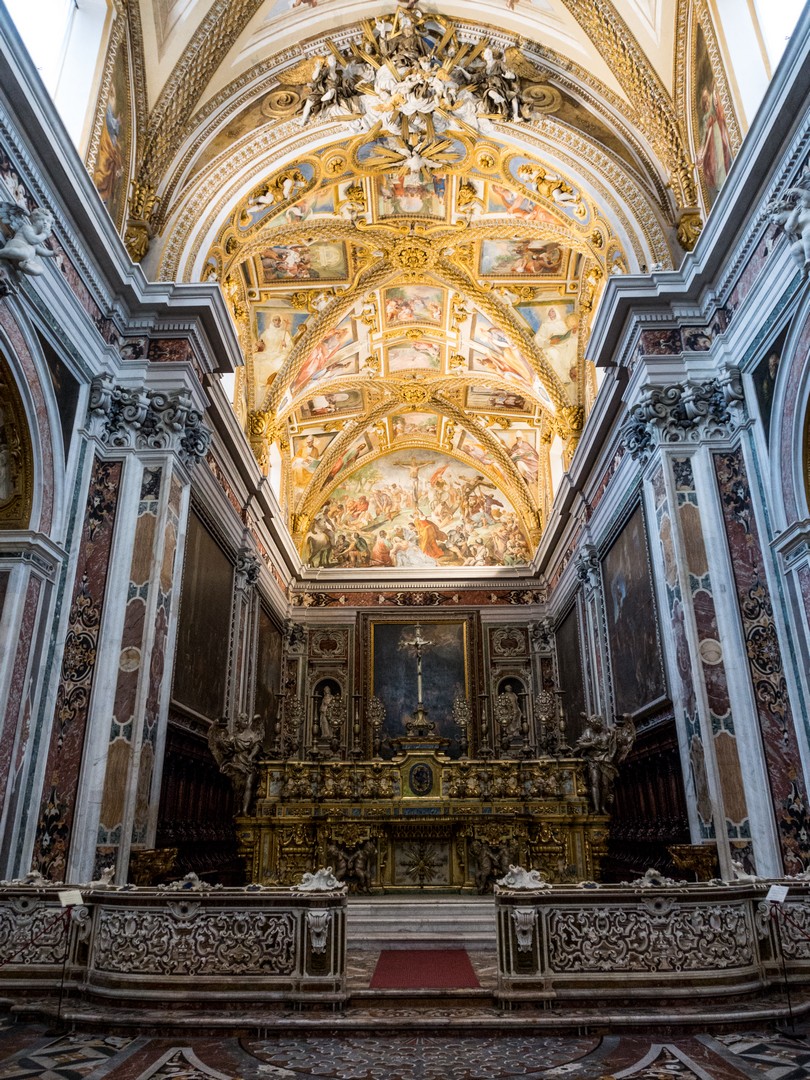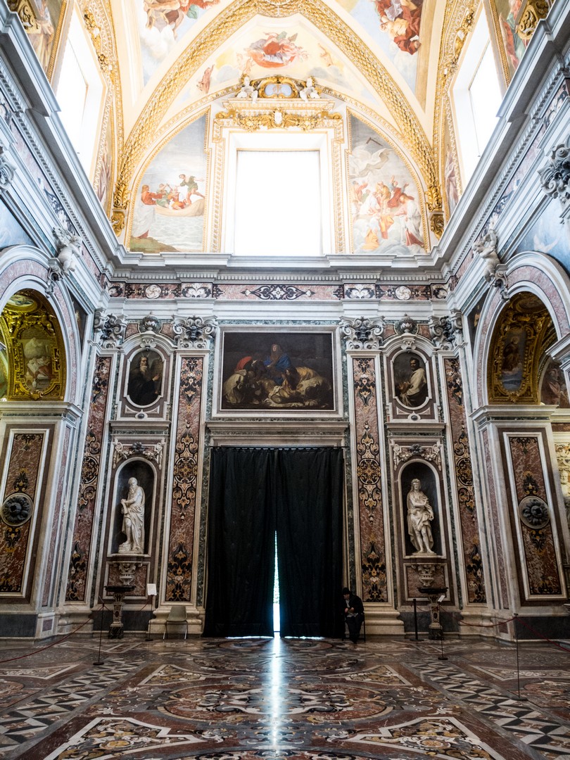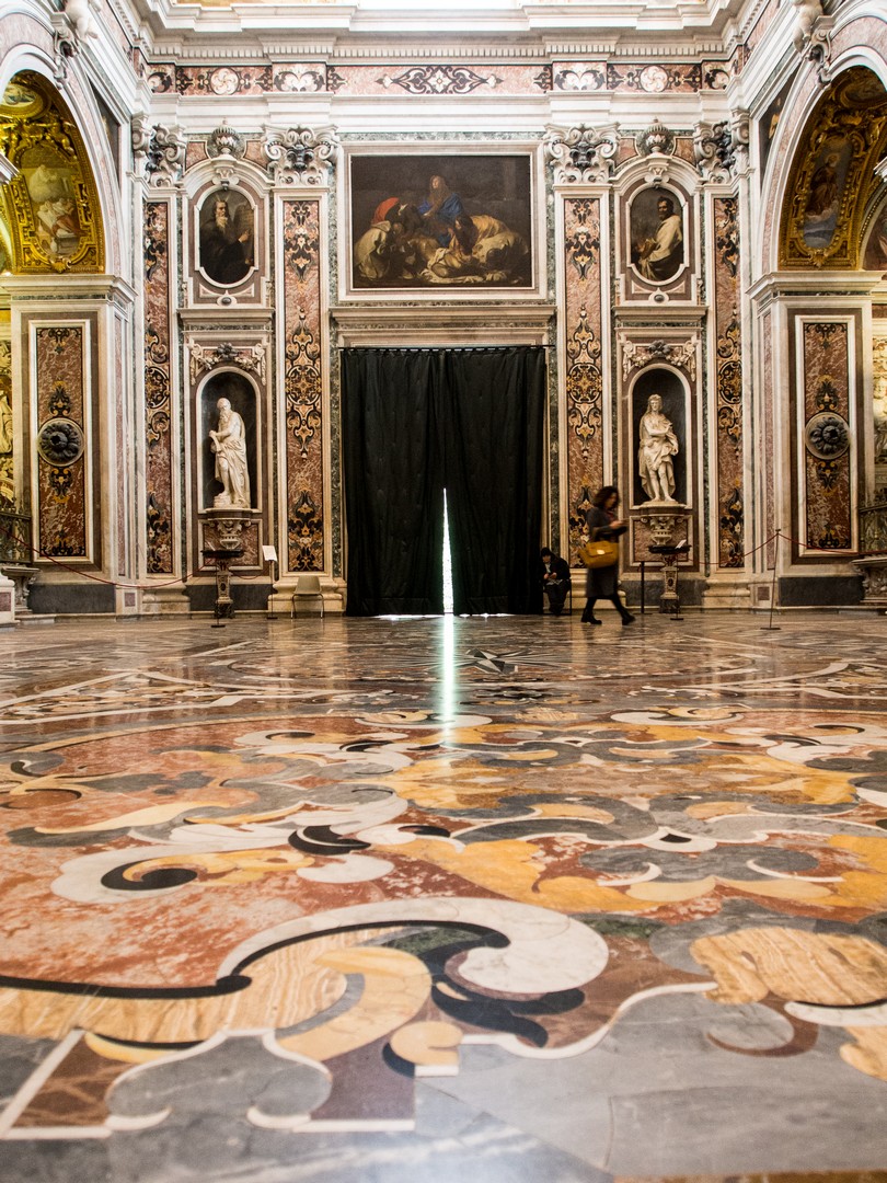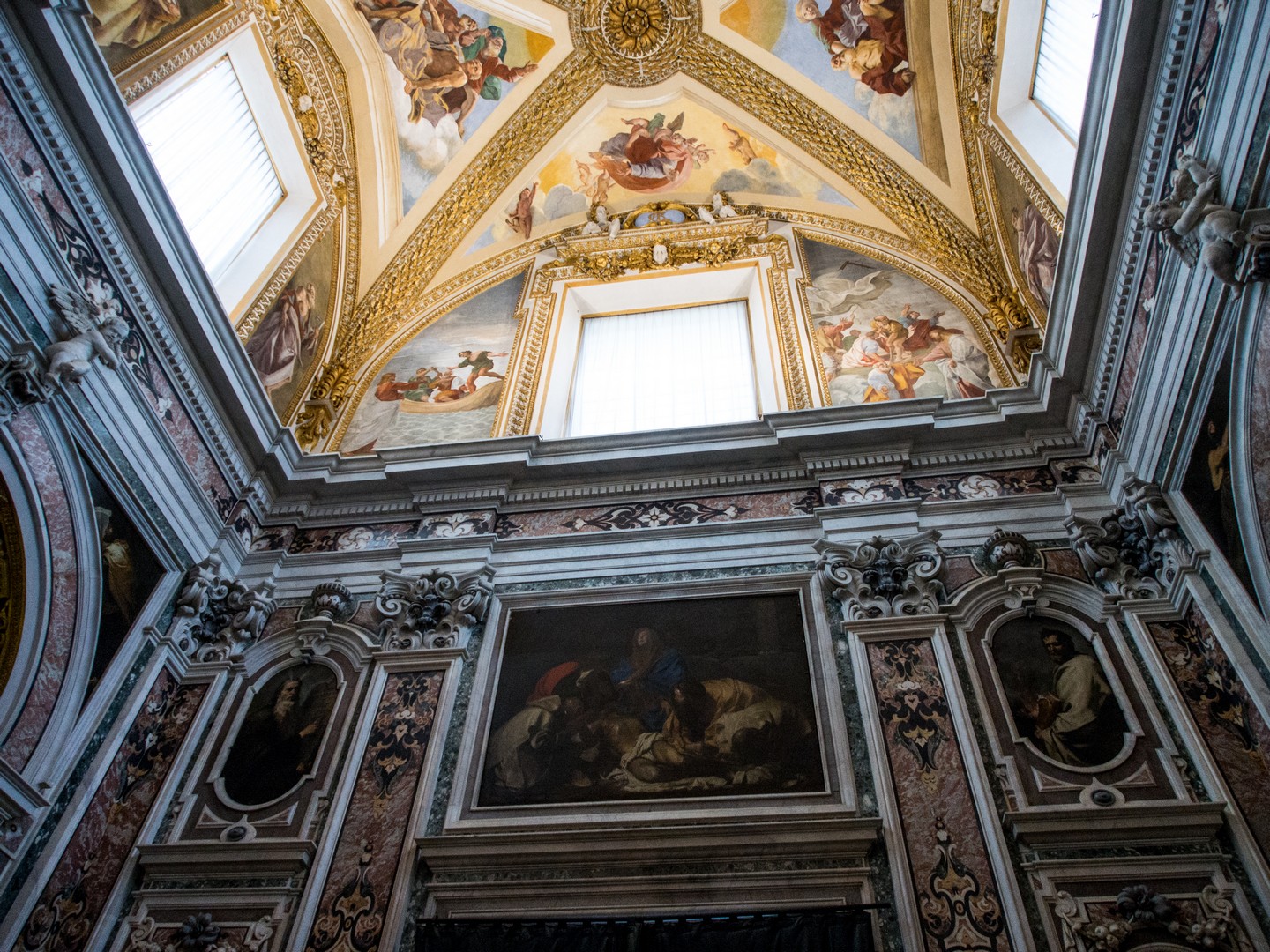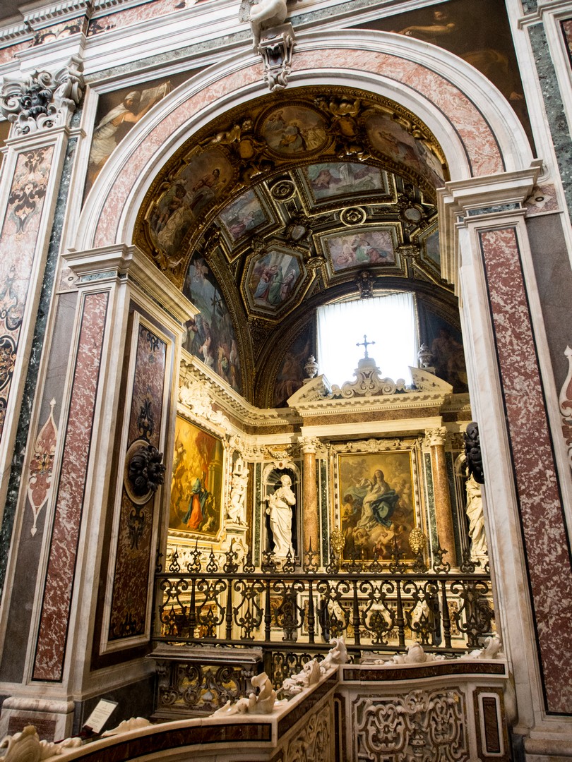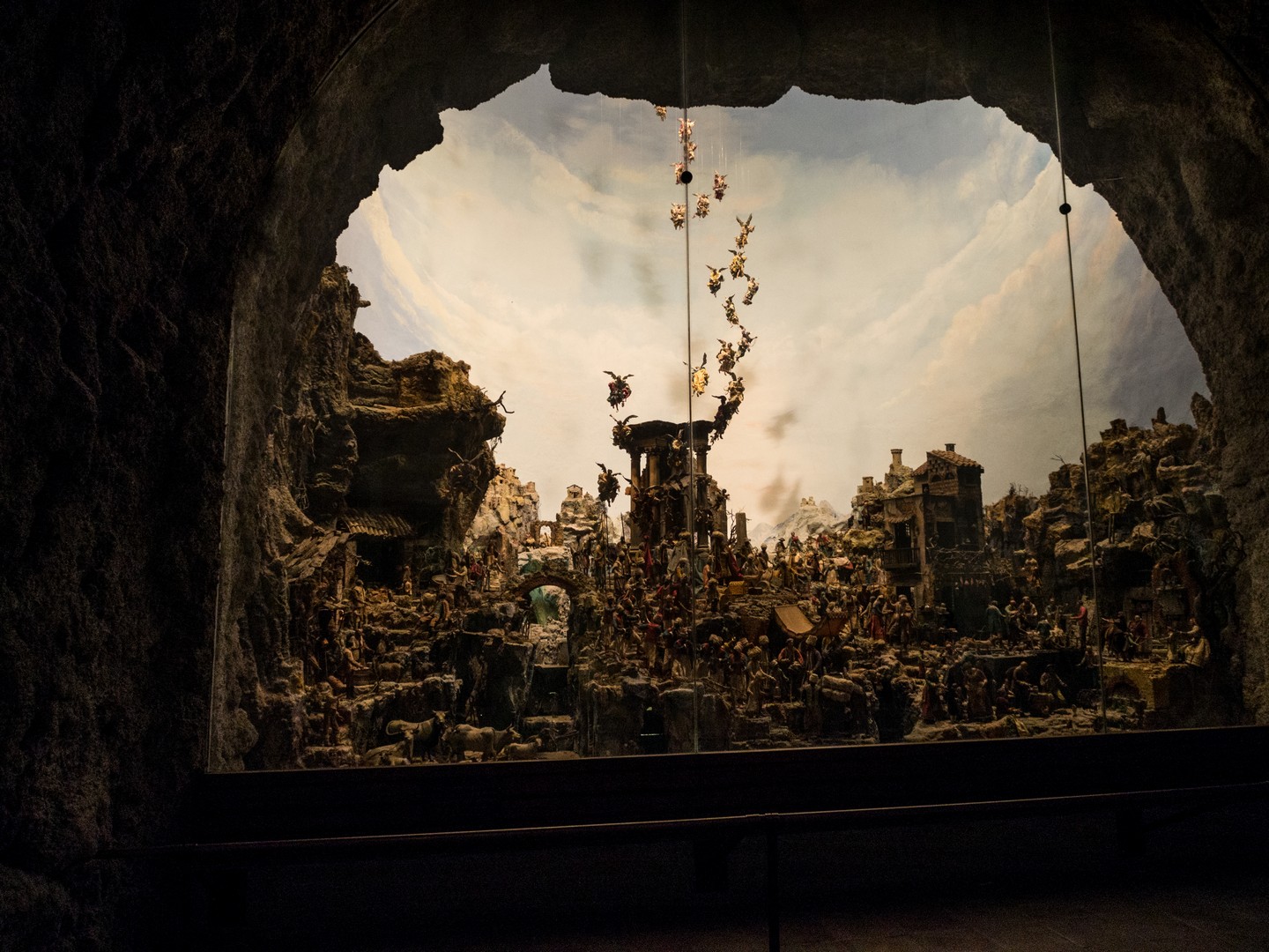 Ne manquez pas également la magnifique crèche, une des plus belles de Naples. Elle est immense et quand on la voit, on dirait un tableau en 3D d’un maître du baroque. La crèche est si richement fournie que l’œil a parfois du mal à s’attacher sur certains éléments. Tellement que j’ai eu beau chercher, je n’ai pas pu trouver le petit Jésus !