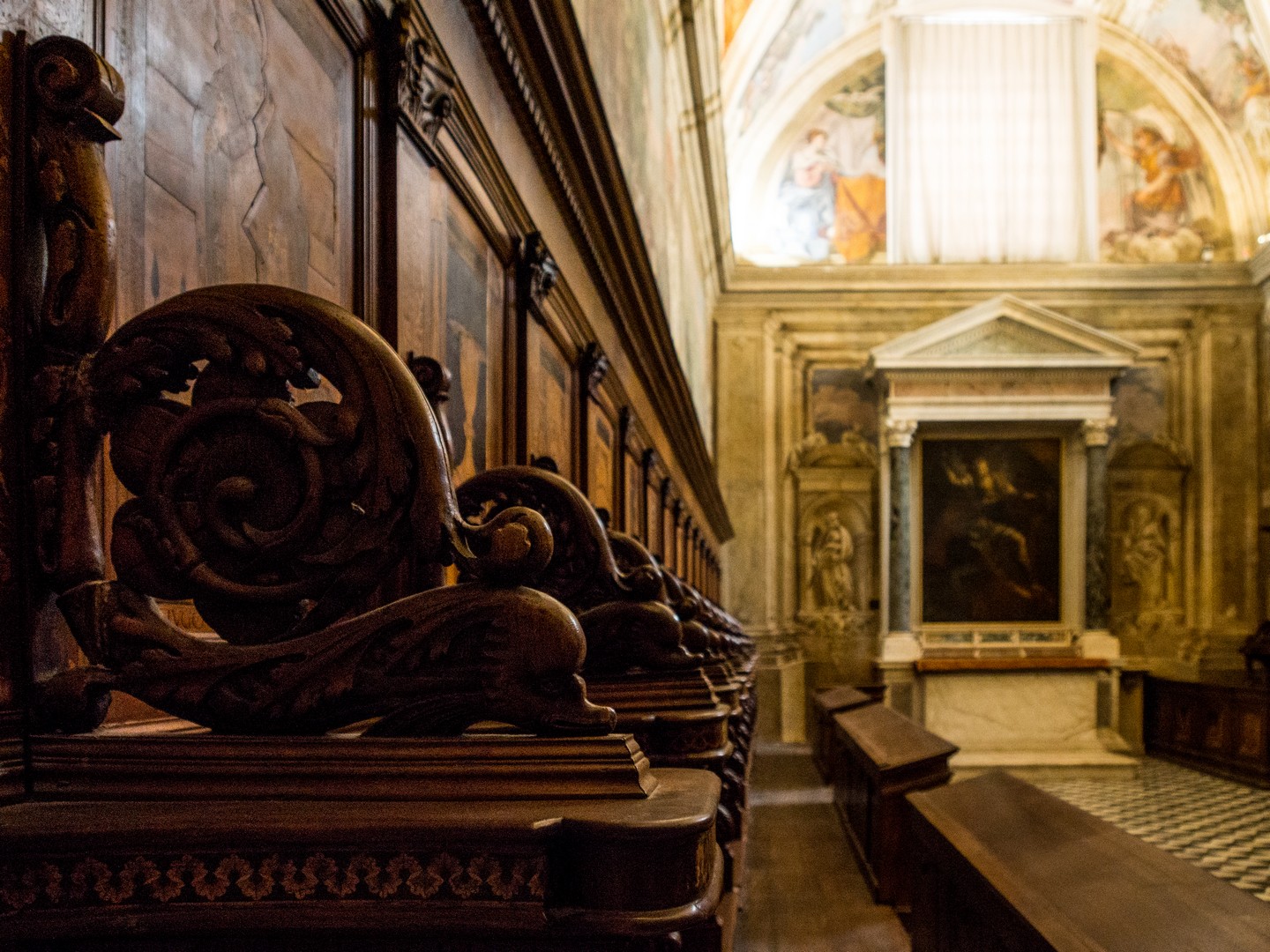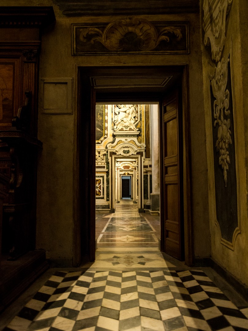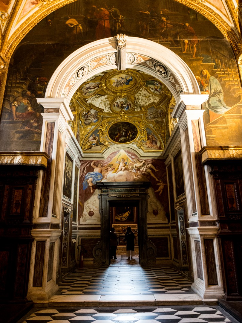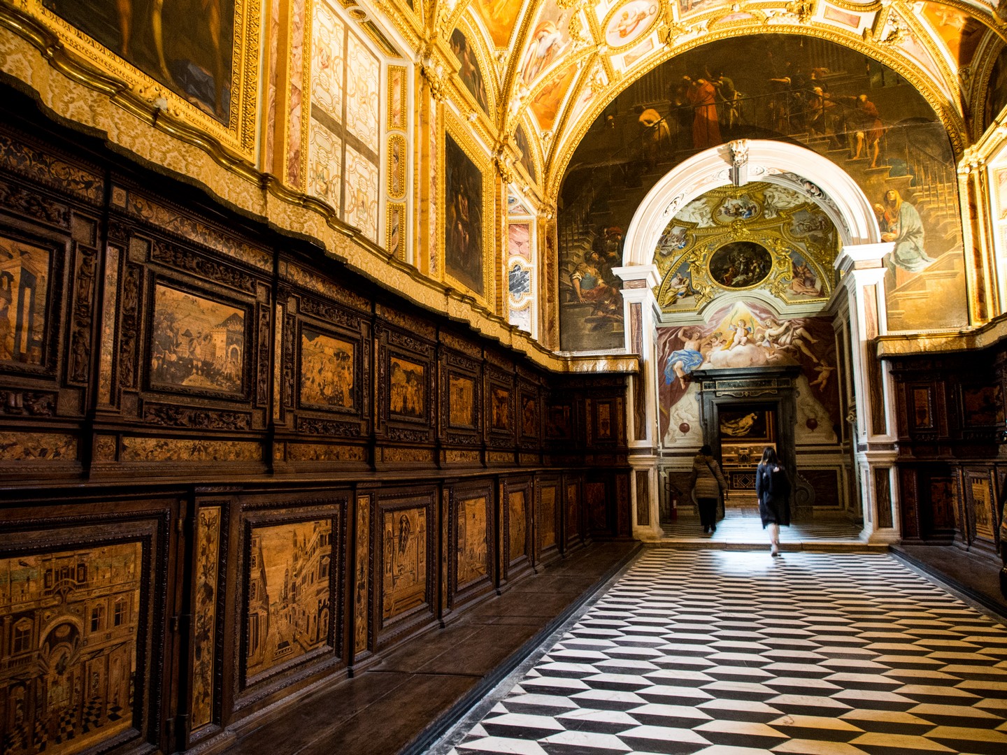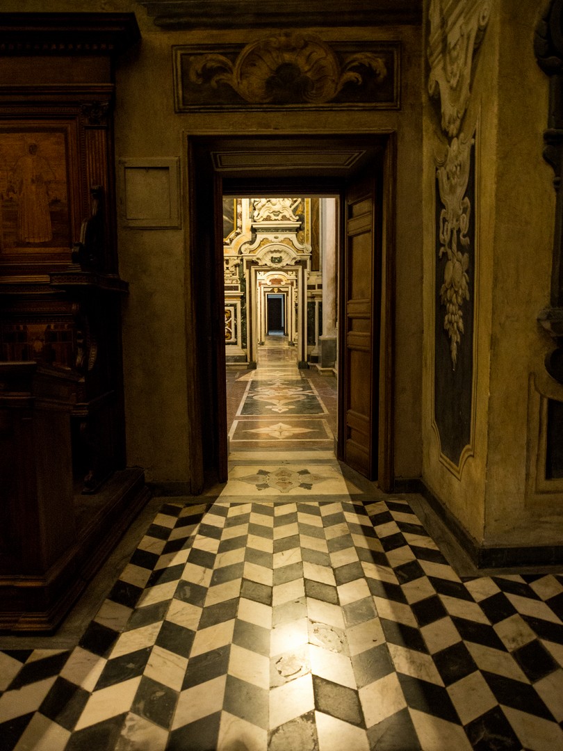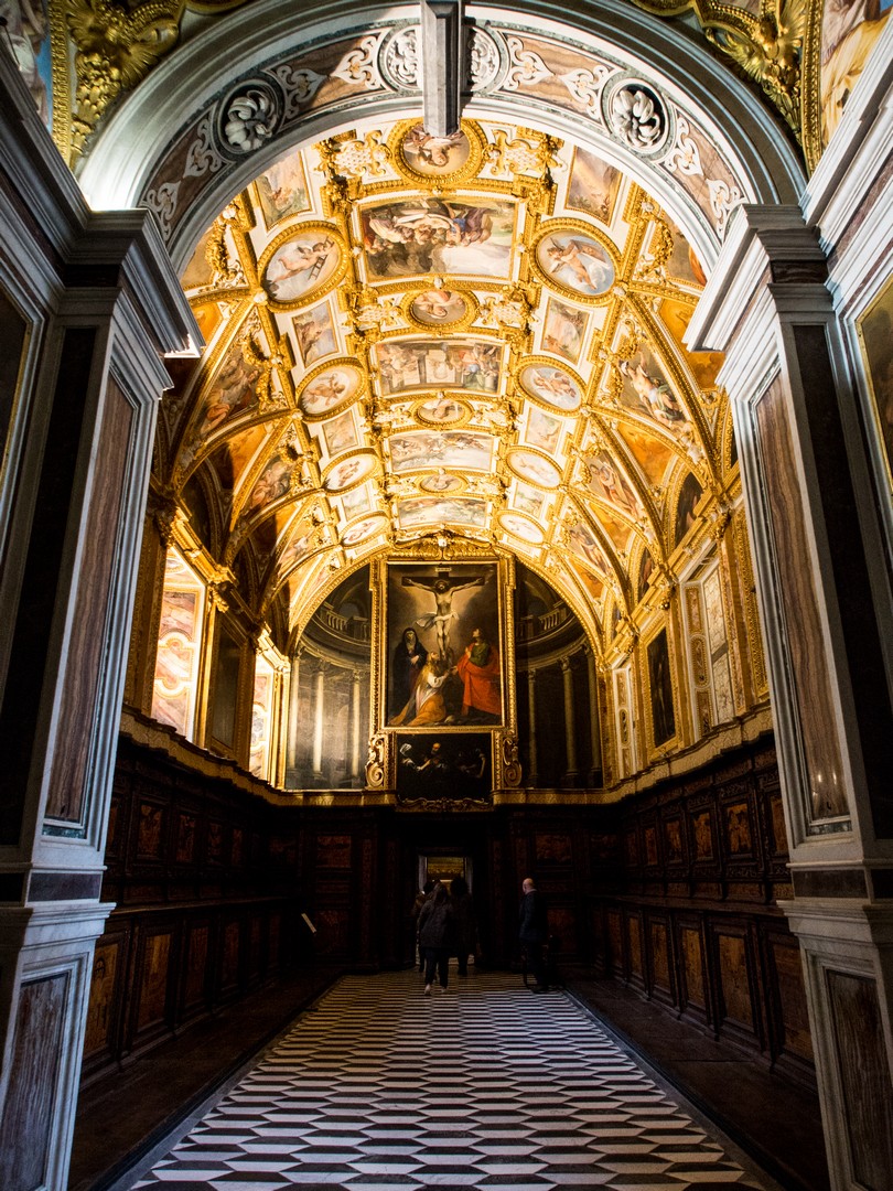 Puis, on se met à déambuler de salles en salles, toutes plus richement décorées les unes que les autres : marqueteries en bois d’une grande finesse dans la sacristie, fresques, sculptures, peintures, carrelage… chaque salle offre un univers complètement différent.