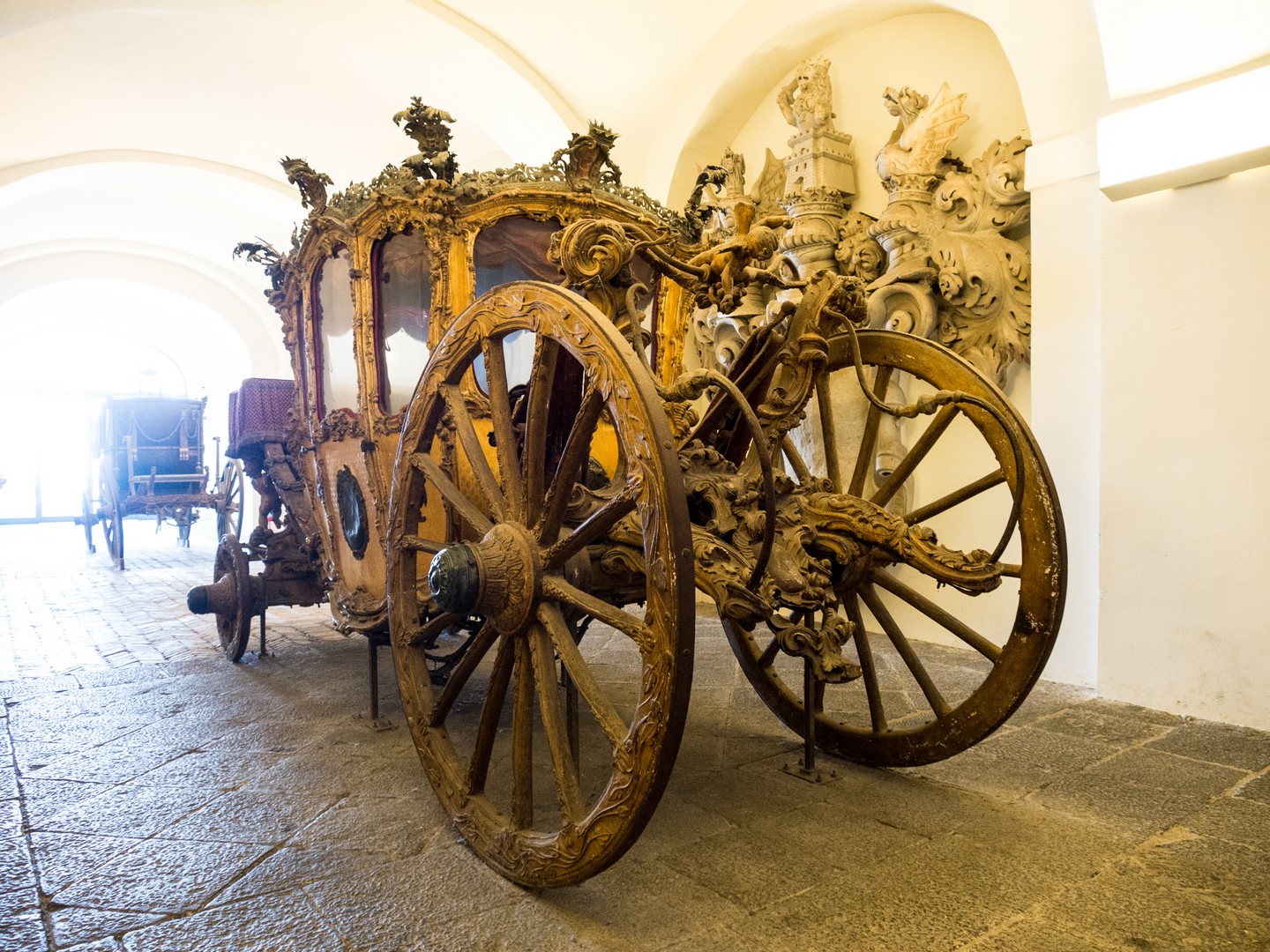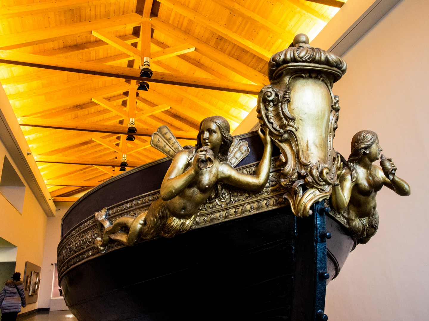 Outre la décoration des salles, il y aussi tout un espace d’exposition. Par exemple, on trouve une salle dédiée aux carrosses du XVII-XVIIIème siècle, dignes du plus beau rêve de Cendrillon, et une autre consacrée aux barques.