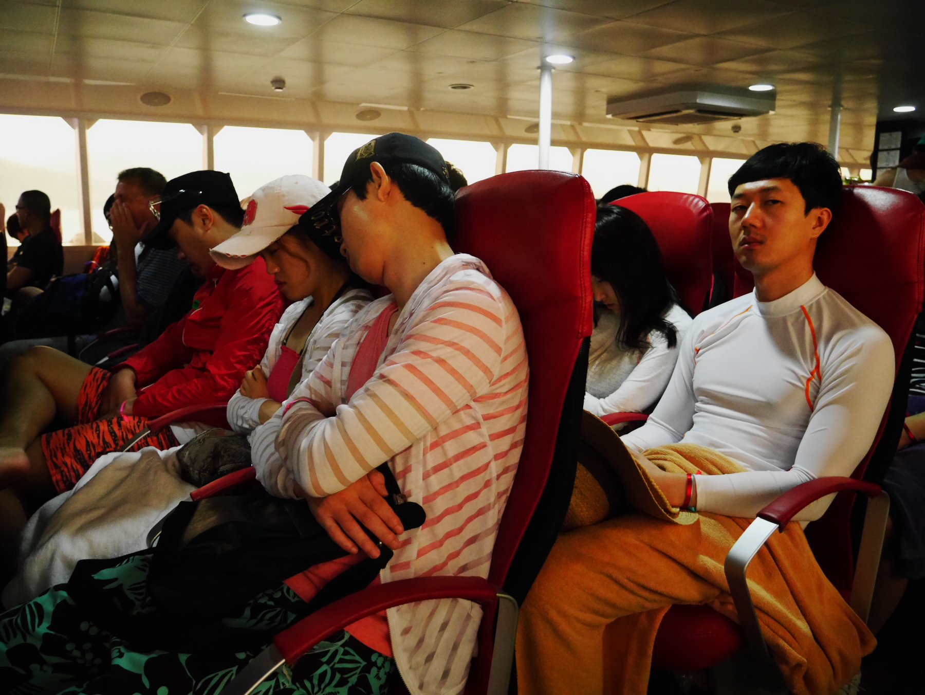 J’ai éteint toutes les lumières de ma chambre pour mieux admirer la vue. Depuis mon 8e étage, le quartier de Pratunam, un des plus populaires de Bangkok, pulse de lumière. Je me sens légèrement déphasée après ces dix jours passés dans les îles. Les images du chemin du retour se disputent dans ma tête. L’énorme groupe de Japonais à moitié endormis dans le bateau venu nous chercher à Koh Phangan, l’escale à Koh Tao et le pincement au cœur, la chaleur étouffante de Chumphon, en attendant le bus pour Bangkok, le bruit et les odeurs du restauroute où il faut se dépêcher alors que la demi-heure d’arrêt suffirait à peine à se décider sur quoi manger tant les petites échoppes sont alléchantes…