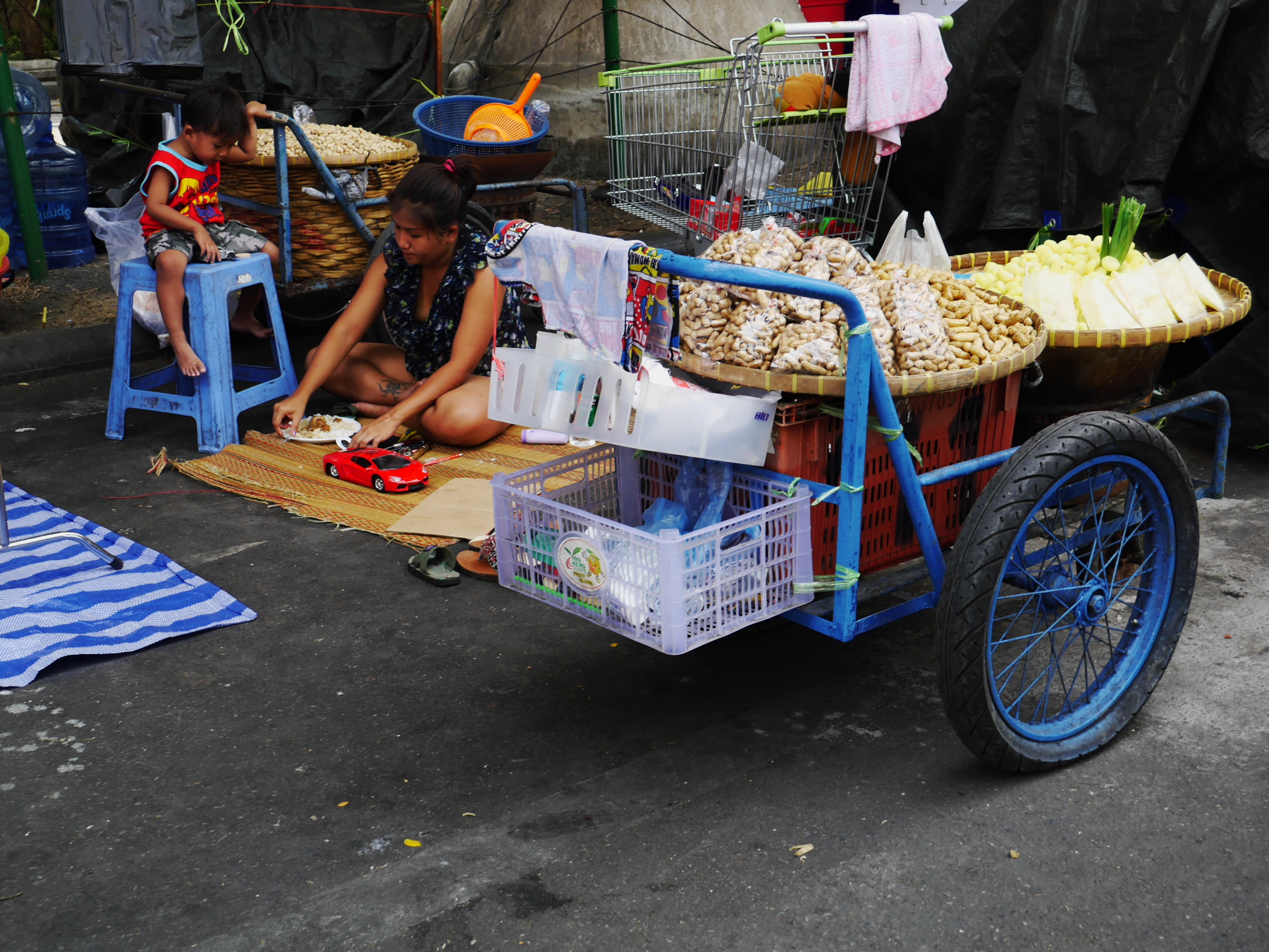 J’essaie d’en savoir plus… mais les protestataires semblent avoir quitté le village pour vaquer à leurs occupations et la plupart des gens à qui je m’adresse ne parle pas anglais. Je trouve finalement une jeune fille qui s’avance vers moi, consciente que je suis curieuse. Elle m’explique : la corruption, la peur du retour du frère, l’ancien premier ministre Thaksin Shinawatra, destitué et pour le moment en exil doré aux Émirats Arabes Unis, les semaines passées ici, l’envie de relayer le message au monde… La conversation est malheureusement courte, mon interlocutrice doit me laisser pour remplir une mission.