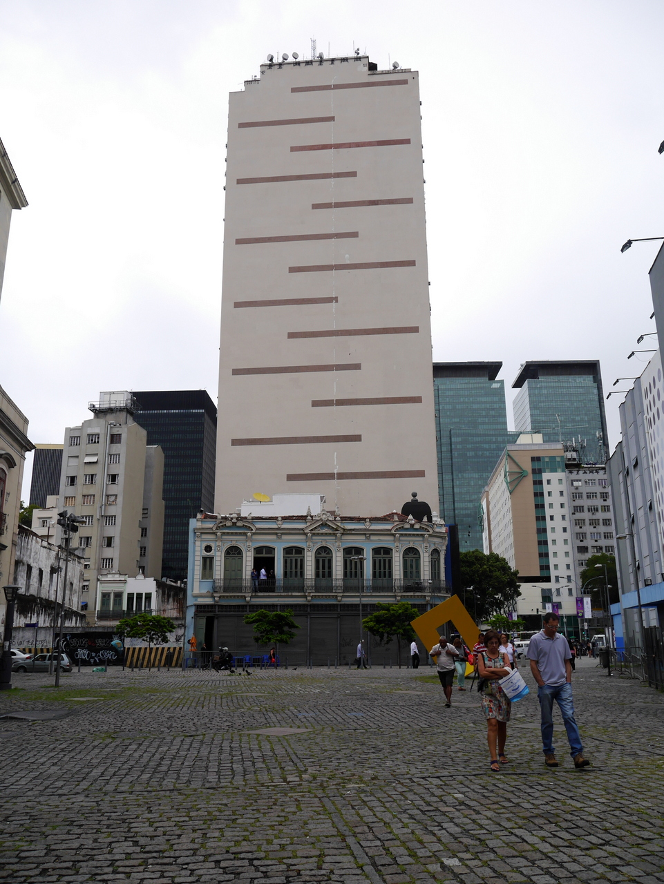 Surplombant la place, se trouve le plus ancien édifice religieux : l’Igreja de São Francisco da Penitência. C’est en fait carrément une espèce de couvent. On peut y accéder par un escalier ou un ascenseur (j’ai choisi la 2e solution). Si vous prenez l’ascenseur, vous pourrez voir dans le couloir des dessins qui représente Rio au fil des âges. Depuis le temps où les Portugais n’étaient pas encore arrivés, jusqu’à aujourd’hui. La transformation est saisissante. On dirait qu’à chaque grande époque, tout ait été rasé pour faire place au neuf. Une espèce de bruxellisation avant la lettre. C’est particulièrement brutal au XIXe siècle, où il semble ne plus rien rester des bâtiments coloniaux, et au XXe siècle où d’horribles bâtiments sans âme, notamment les deux tours Petrobras, ont complètement défiguré l’urbanisme.