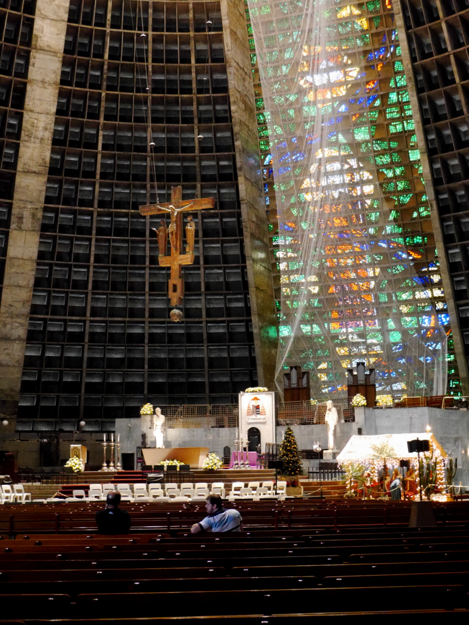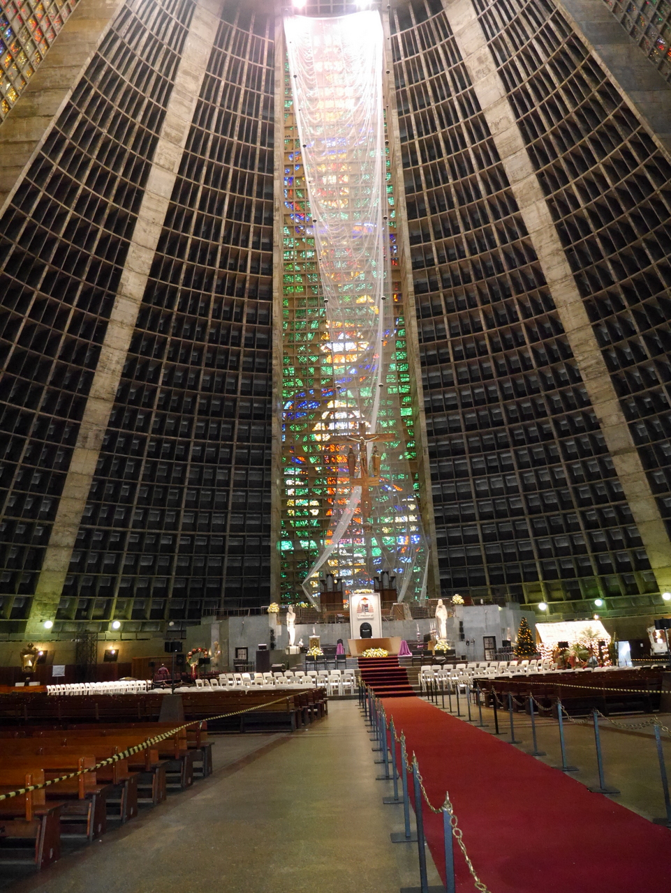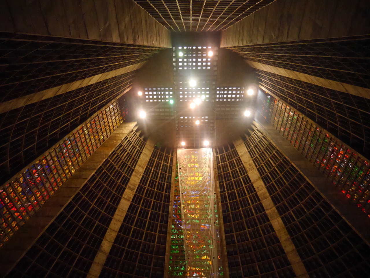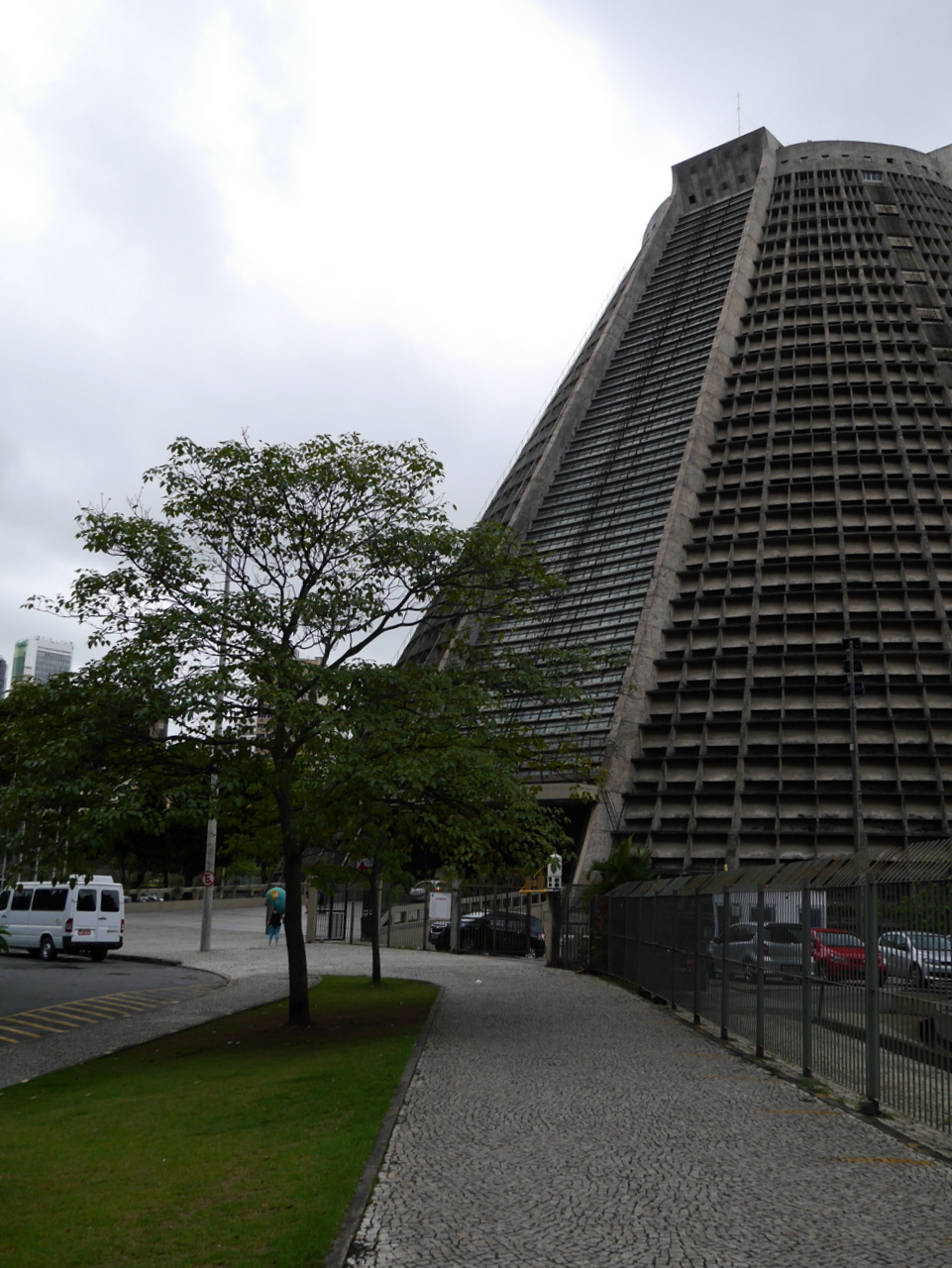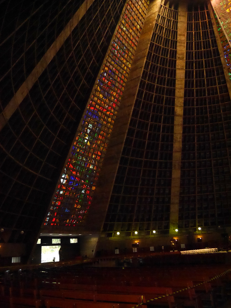 Le plus beau morceau de rue est sans doute la Rua do Lavradio, traditionnellement la rue des antiquaires (ils sont toujours là), on y trouve d’agréables boutiques et des cafés qui incitent à venir un passer un moment de farniente… mais l’heure tourne… car si le Centro est plein de vie pendant la journée, il se vide le soir, après le traditionnel « after-work » et il ne fait pas bon y traîner après 18 heures. Depuis la fin de la Rua do Lavradio, on peut rejoindre la Cathédrale métropolitaine de São Sebastião, un des édifices les plus étrange de Rio. A la fois pyramide inca et vaisseau spatial, on ne peut pas dire que ce gros machin en béton soit vraiment belle à l’extérieur. Elle a même mal vieilli mais les magnifiques vitraux qu’on y trouve à l’intérieur rachètent beaucoup.