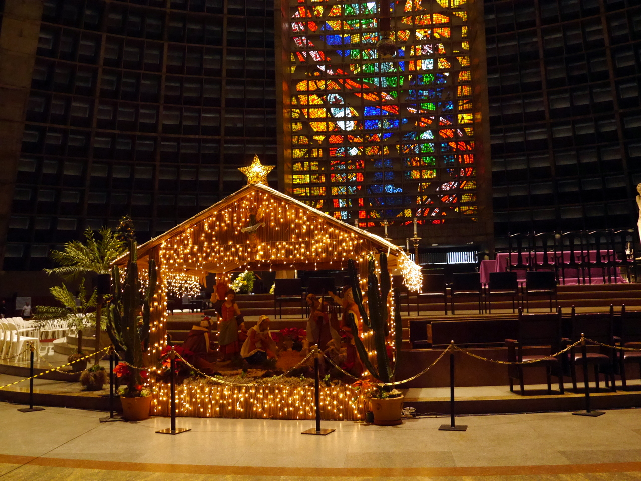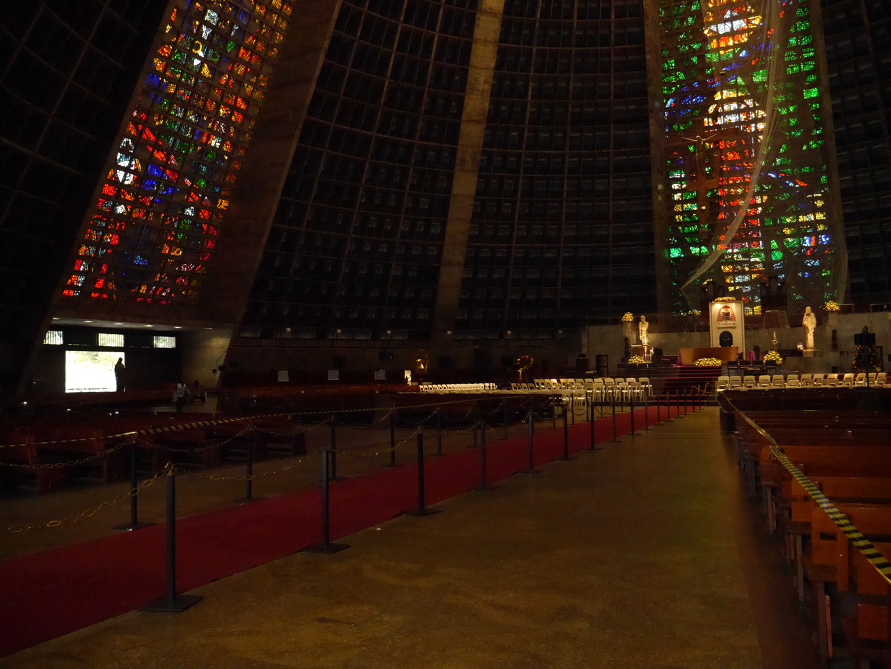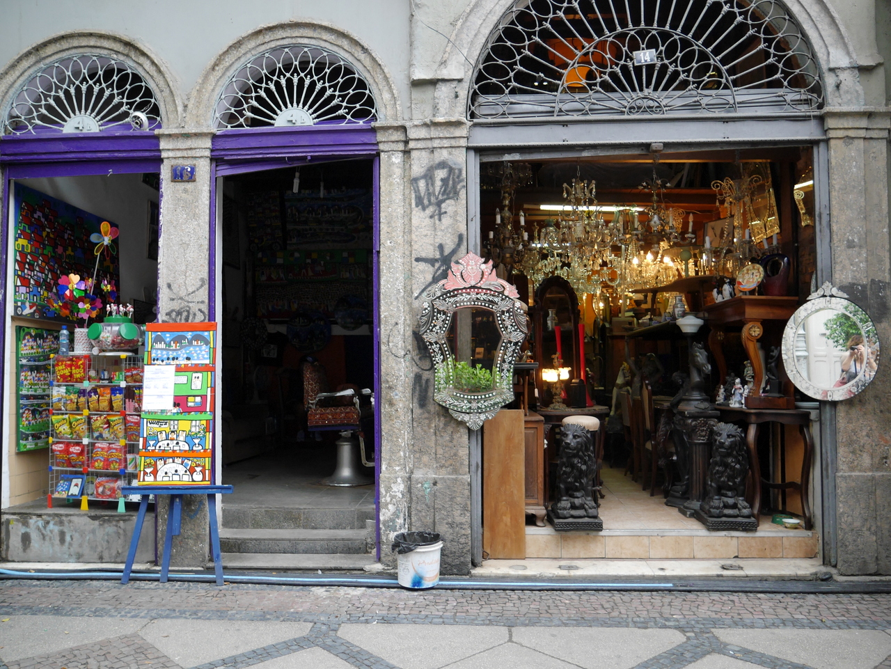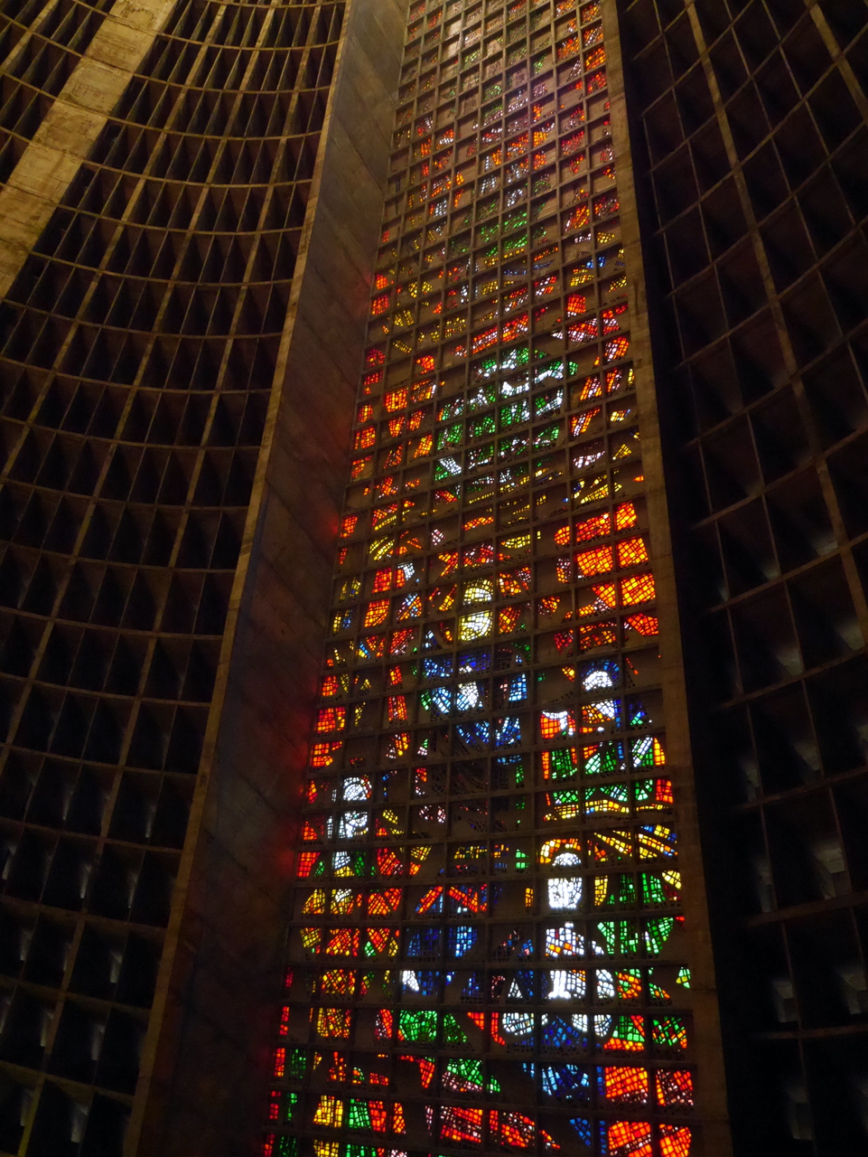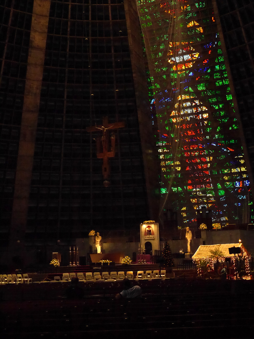 Le plus beau morceau de rue est sans doute la Rua do Lavradio, traditionnellement la rue des antiquaires (ils sont toujours là), on y trouve d’agréables boutiques et des cafés qui incitent à venir un passer un moment de farniente… mais l’heure tourne… car si le Centro est plein de vie pendant la journée, il se vide le soir, après le traditionnel « after-work » et il ne fait pas bon y traîner après 18 heures. Depuis la fin de la Rua do Lavradio, on peut rejoindre la Cathédrale métropolitaine de São Sebastião, un des édifices les plus étrange de Rio. A la fois pyramide inca et vaisseau spatial, on ne peut pas dire que ce gros machin en béton soit vraiment belle à l’extérieur. Elle a même mal vieilli mais les magnifiques vitraux qu’on y trouve à l’intérieur rachètent beaucoup.