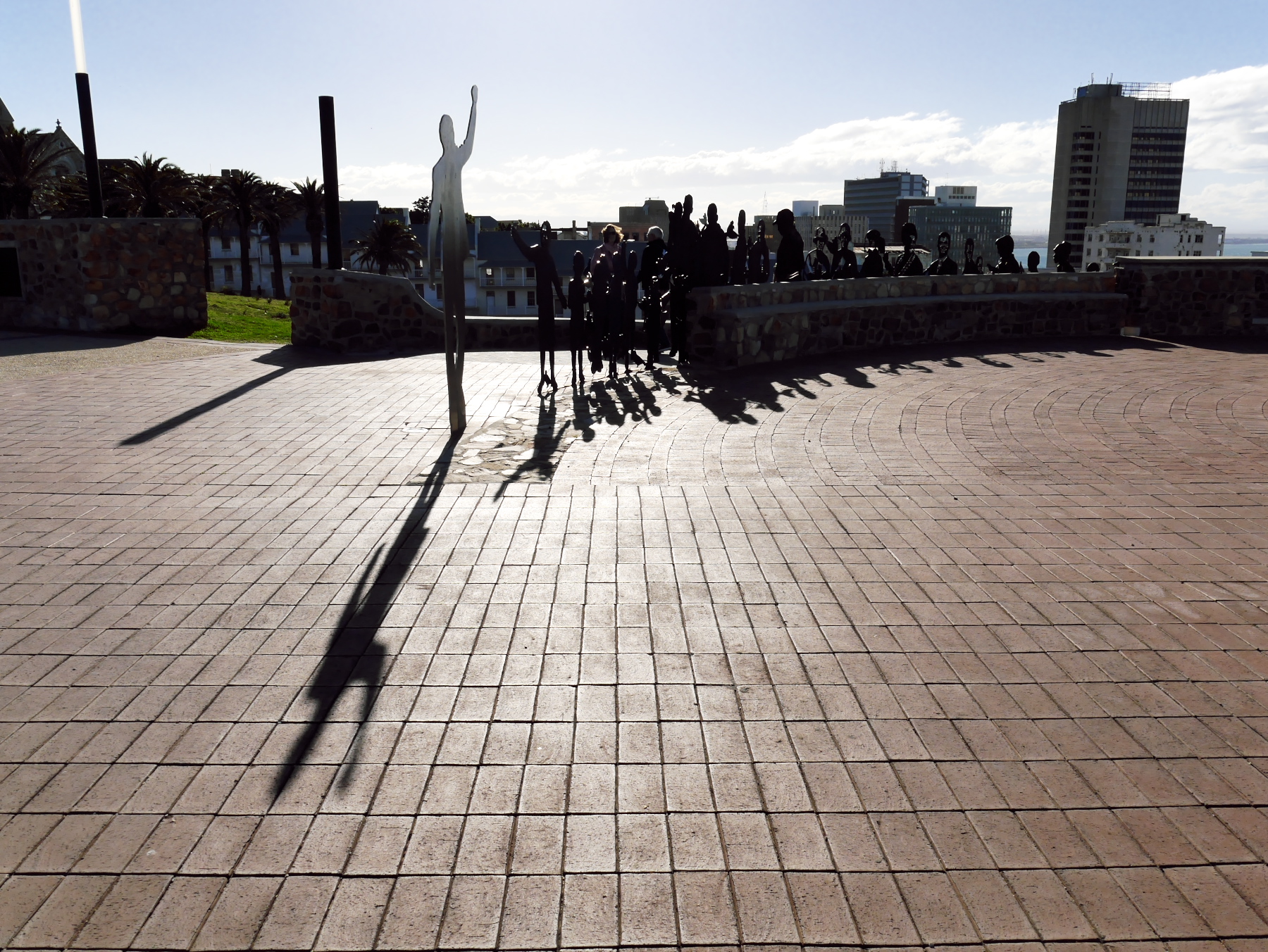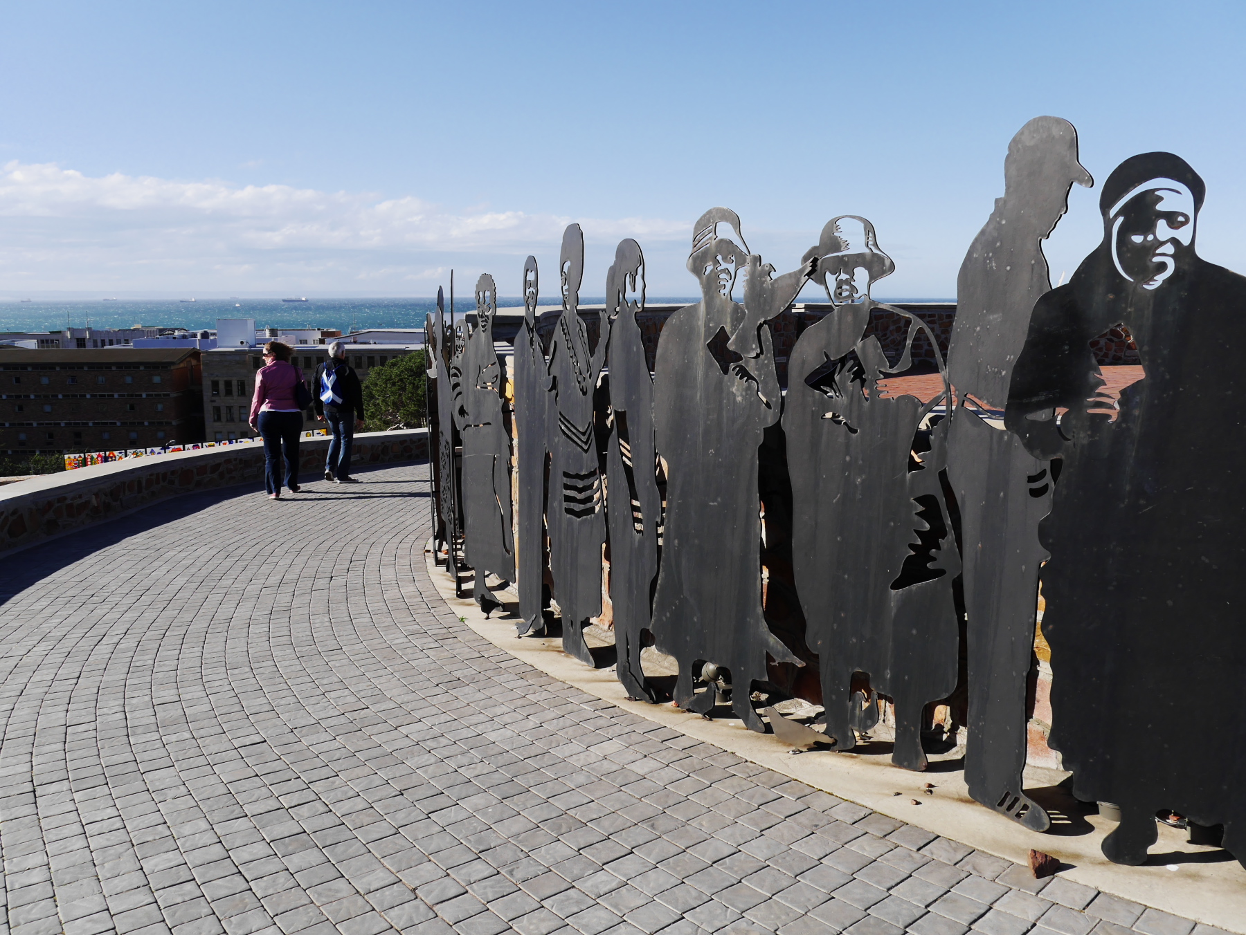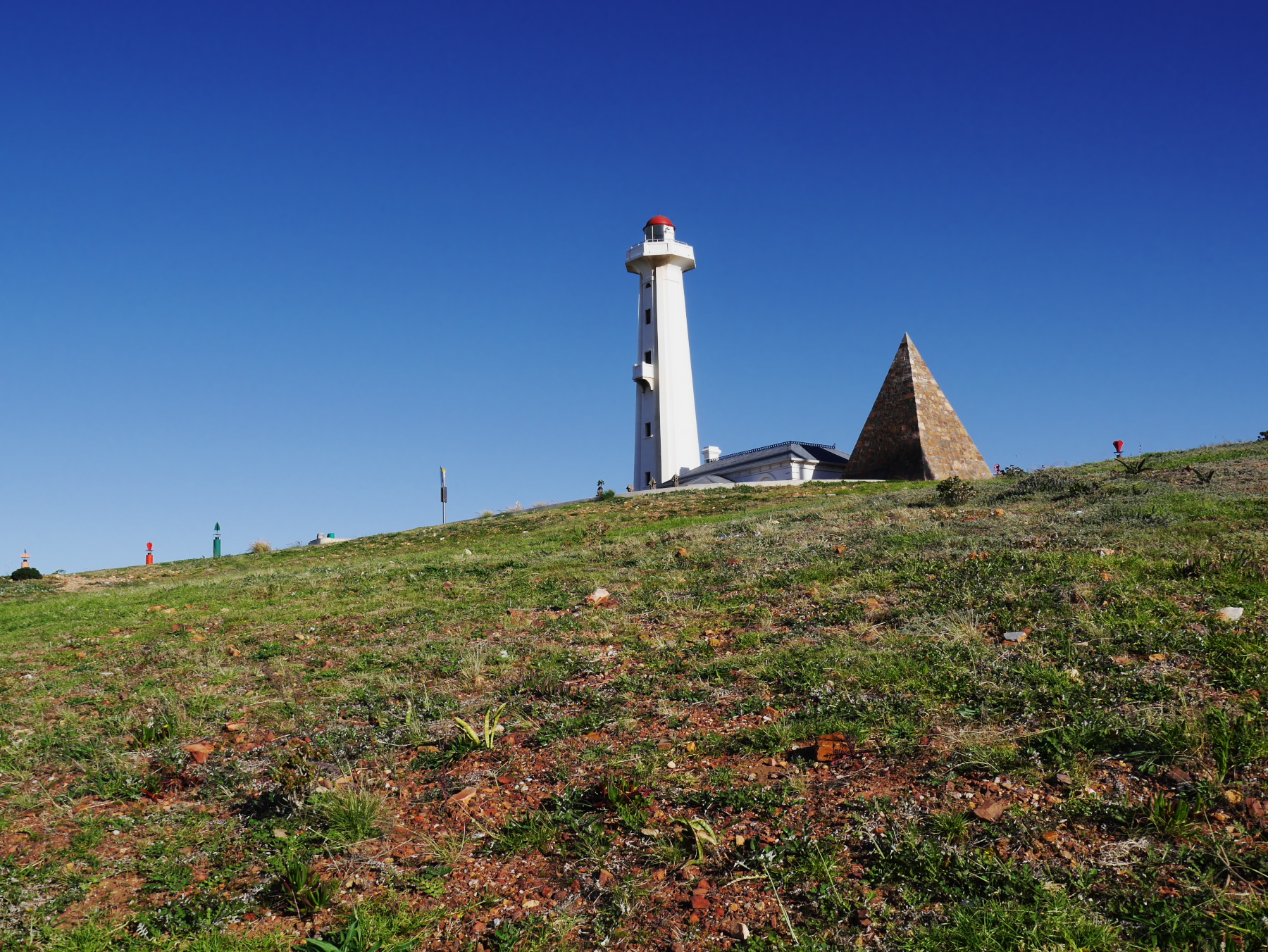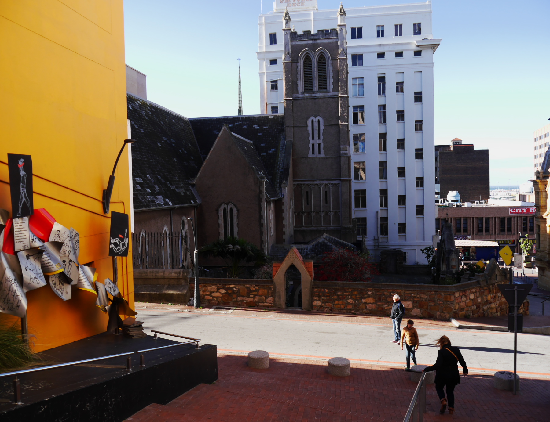 Nous avons donc une partie de l’après-midi pour se balader à Port-Elizabeth. Nous nous engouffrons donc dans un taxi et demandons à être déposés au Donkin Preserve, en haut de la ville. La pyramide et le phare y servent de point de repère et d’orientation. Ce n’est pas une surprise si l’Office du Tourisme s’y trouve (avec un petit café)! Regardez bien sur le pyramide et vous trouverez une plaque érigée par Rufane Donkin,gouverneur du Cap,  en mémoire de sa femme Elisabeth, la même qui donna son nom à la ville. A partir de là, vous pouvez soit suivre le Donkin Trail qui vous mènera à travers les lieux les plus historiques de la ville ou prendre la Route 67, une véritable galerie d’art contemporain à ciel ouvert. 67 œuvres marquant les 67 années d’effort de Nelson Mandela pour une Afrique du sud démocratique. A travers la ville, c’est toute une série d’œuvres colorées qui descendent en cascade jusqu’au Campanile, l’autre « pont de repère » de Port Elizabeth, vers le front de mer.