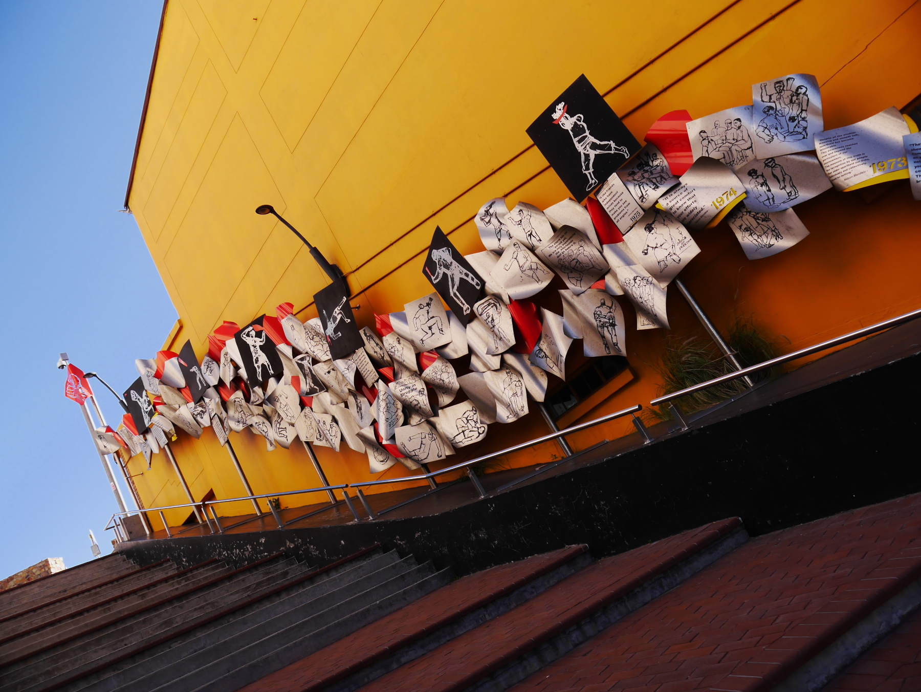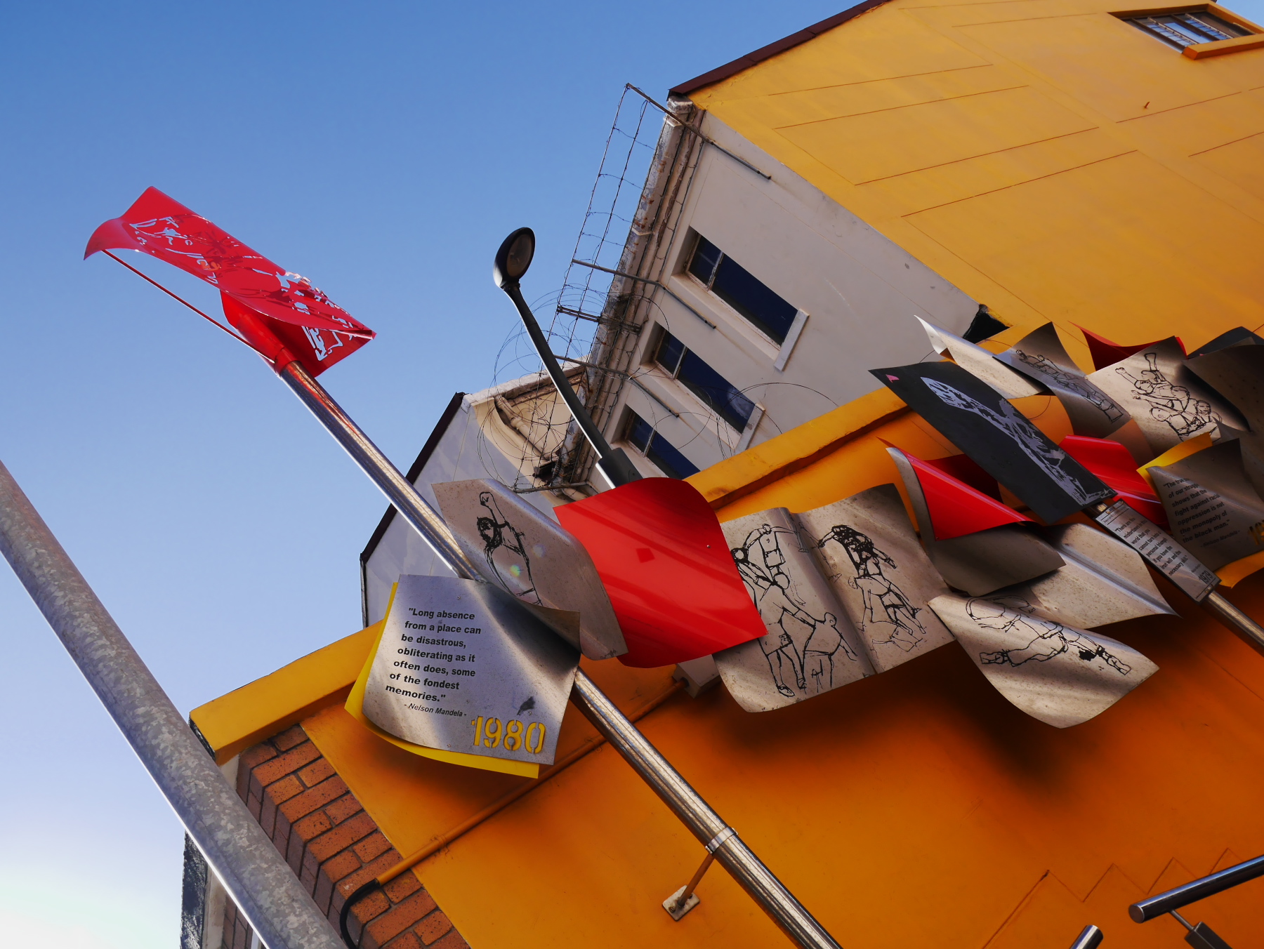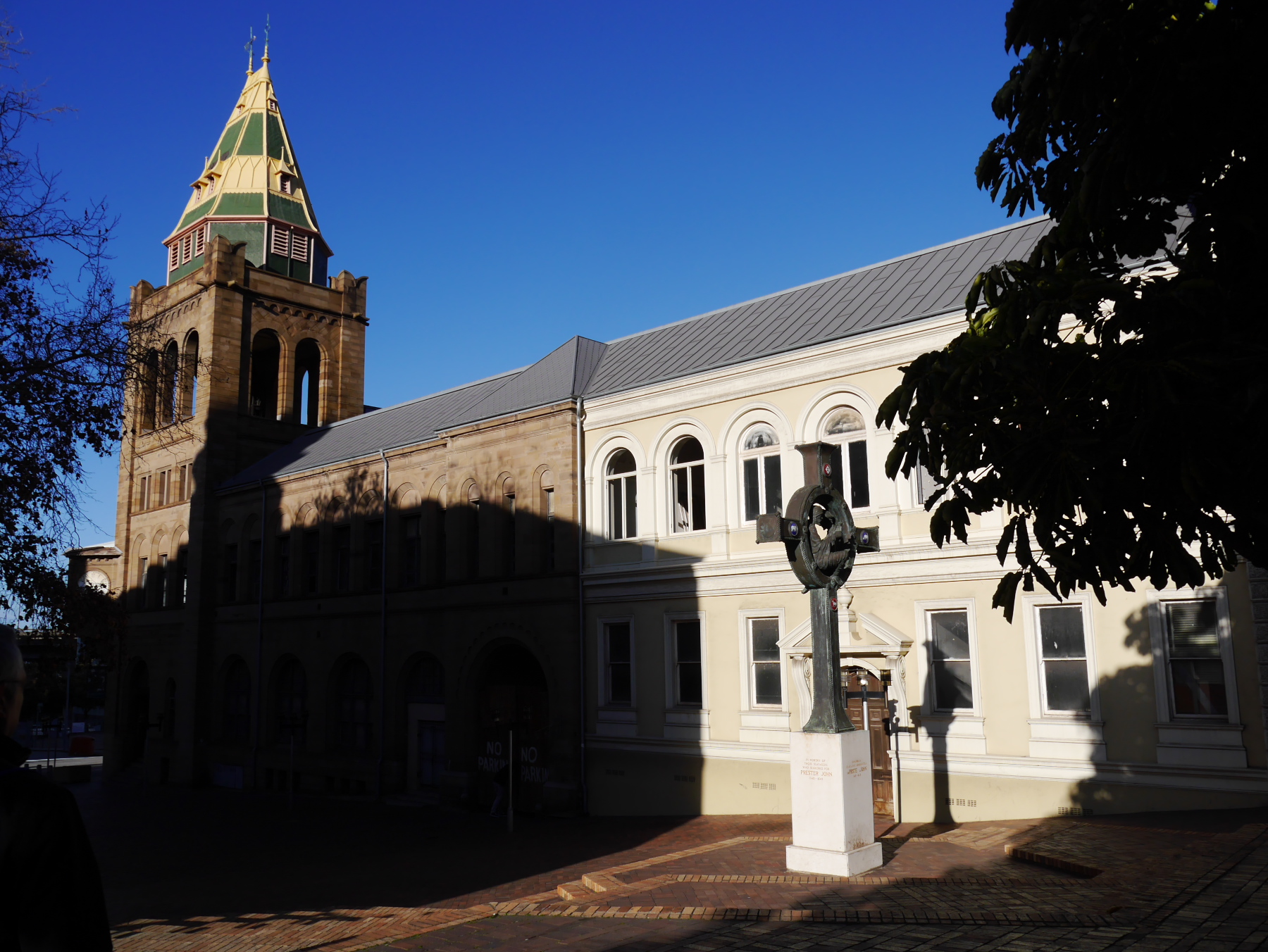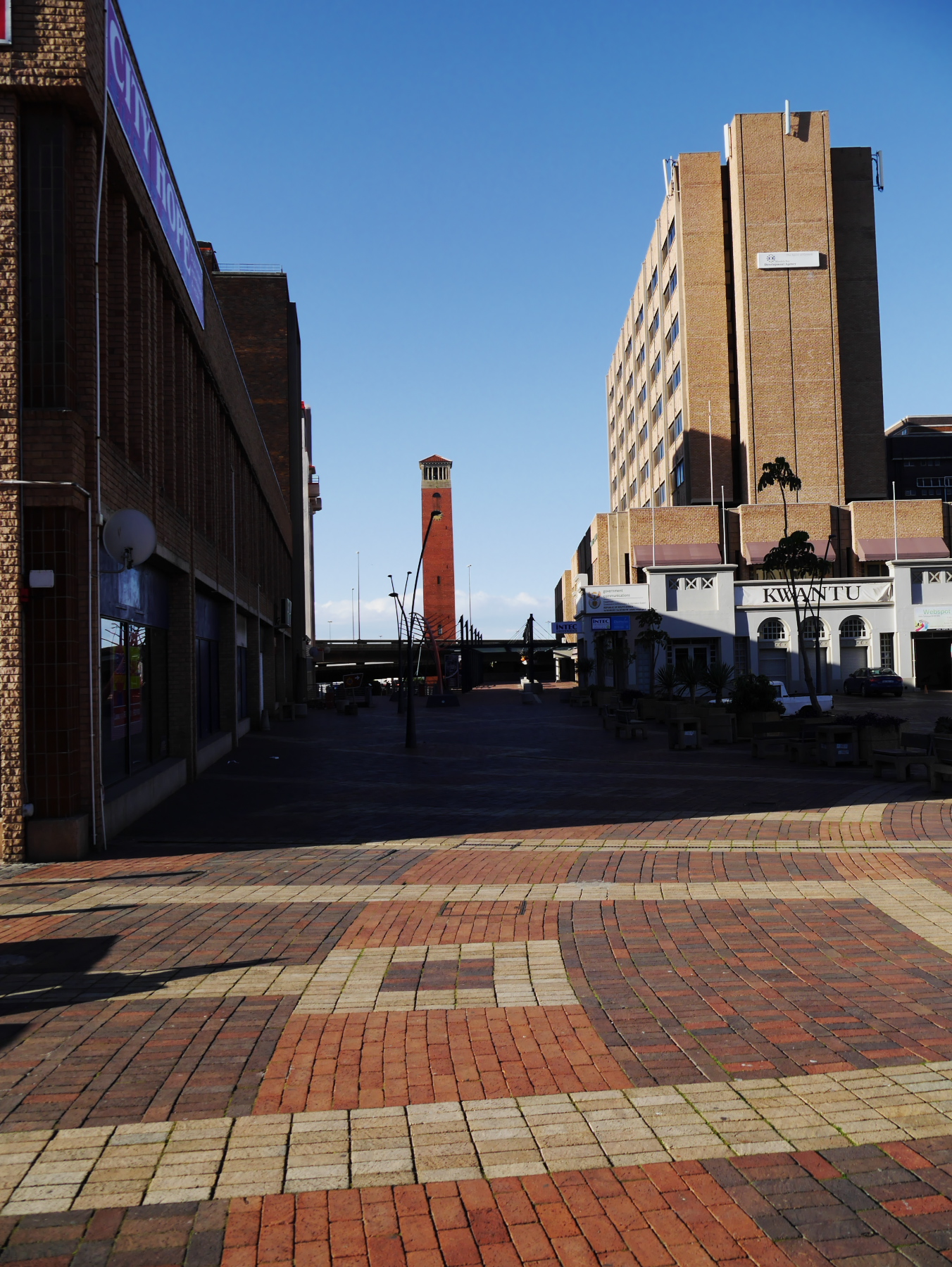 Nous avons donc une partie de l’après-midi pour se balader à Port-Elizabeth. Nous nous engouffrons donc dans un taxi et demandons à être déposés au Donkin Preserve, en haut de la ville. La pyramide et le phare y servent de point de repère et d’orientation. Ce n’est pas une surprise si l’Office du Tourisme s’y trouve (avec un petit café)! Regardez bien sur le pyramide et vous trouverez une plaque érigée par Rufane Donkin,gouverneur du Cap,  en mémoire de sa femme Elisabeth, la même qui donna son nom à la ville. A partir de là, vous pouvez soit suivre le Donkin Trail qui vous mènera à travers les lieux les plus historiques de la ville ou prendre la Route 67, une véritable galerie d’art contemporain à ciel ouvert. 67 œuvres marquant les 67 années d’effort de Nelson Mandela pour une Afrique du sud démocratique. A travers la ville, c’est toute une série d’œuvres colorées qui descendent en cascade jusqu’au Campanile, l’autre « pont de repère » de Port Elizabeth, vers le front de mer.