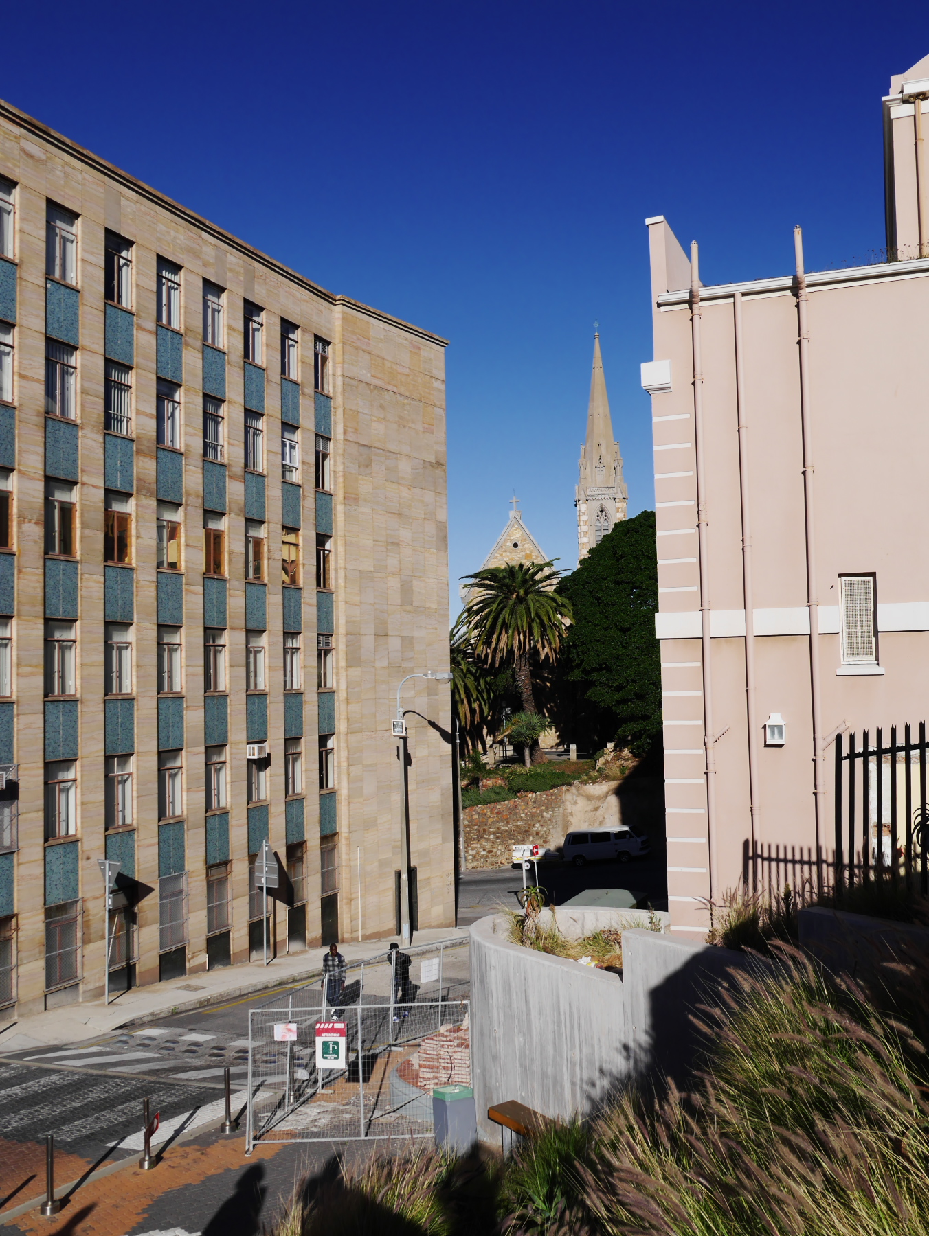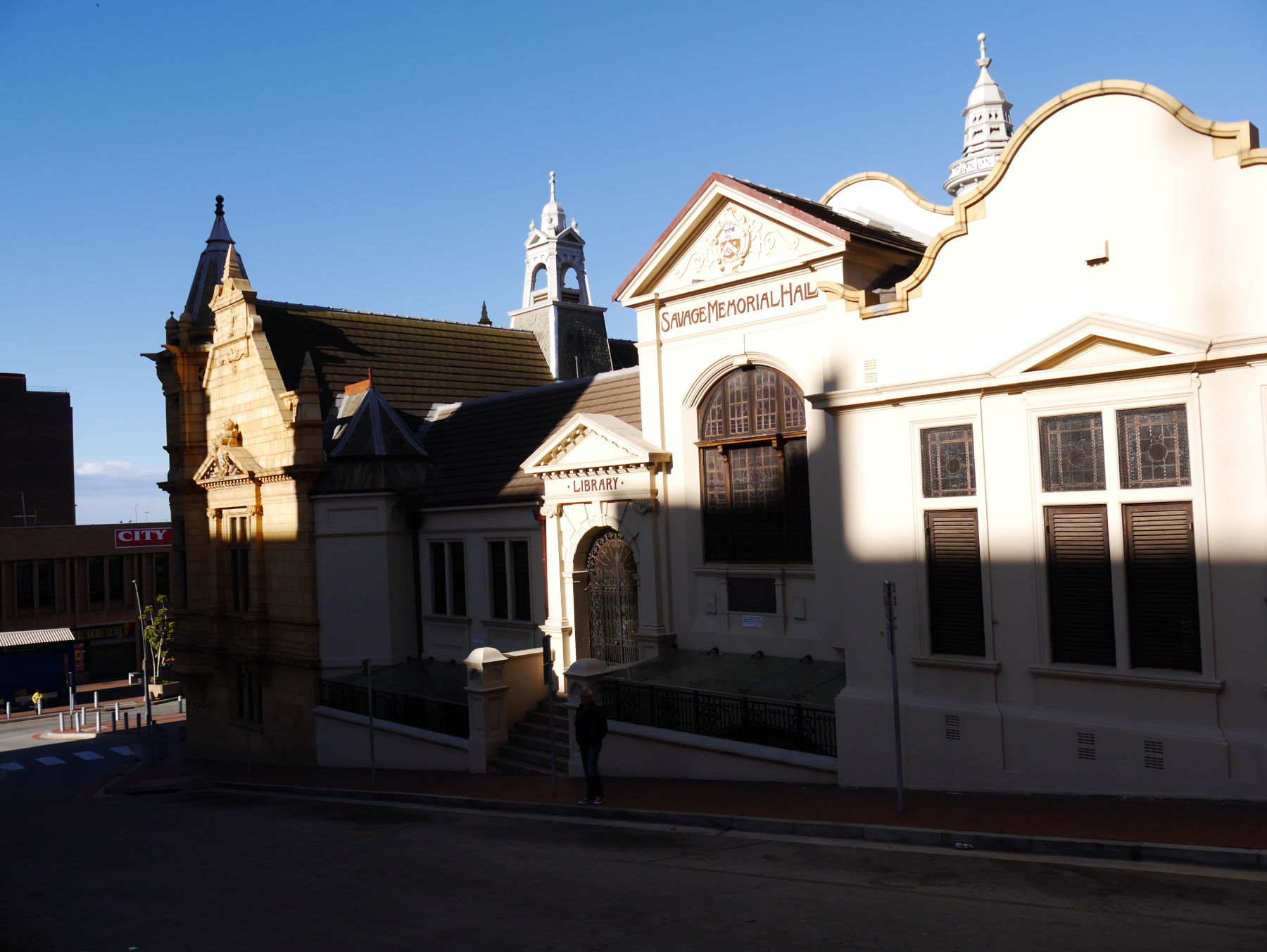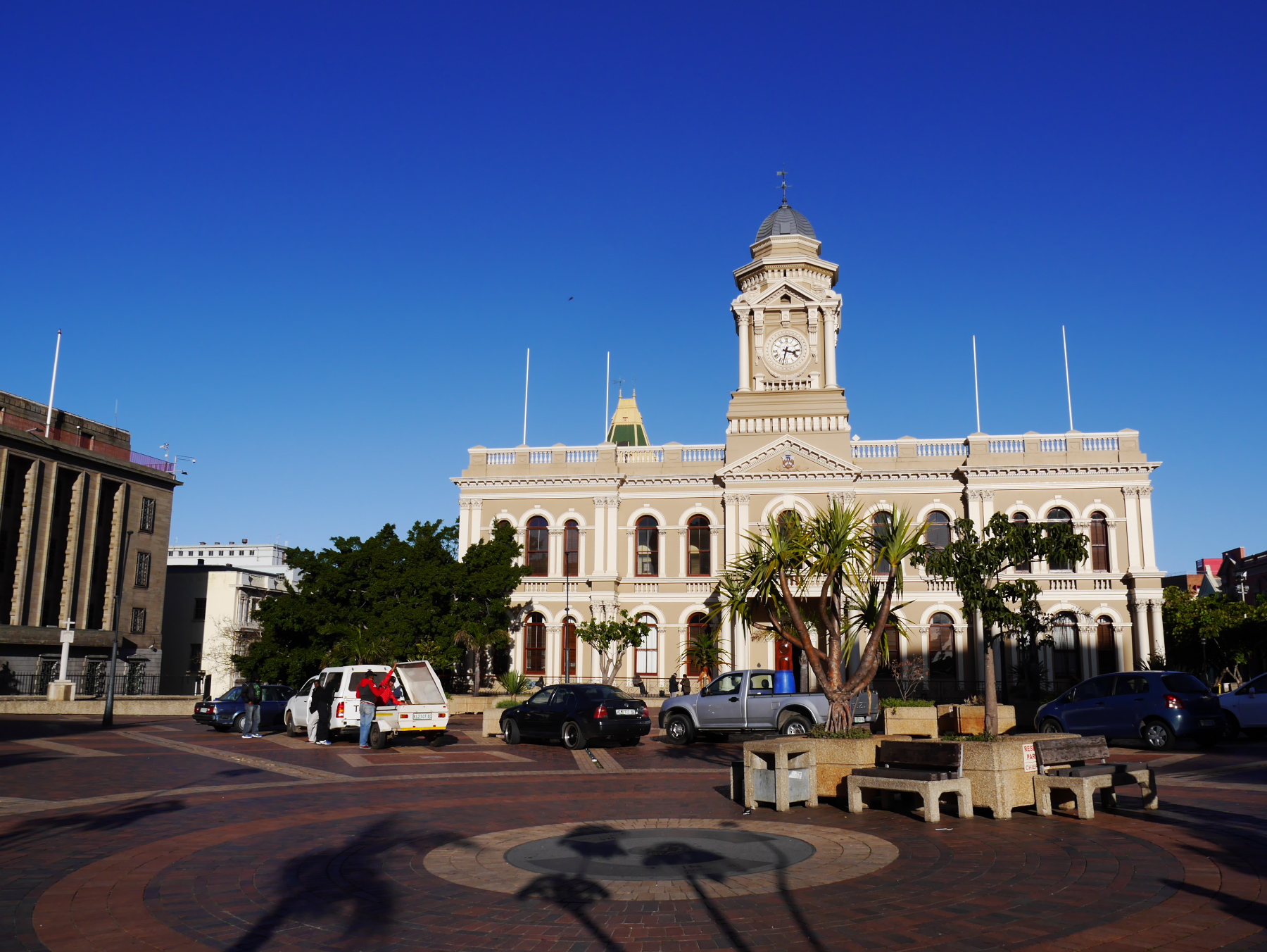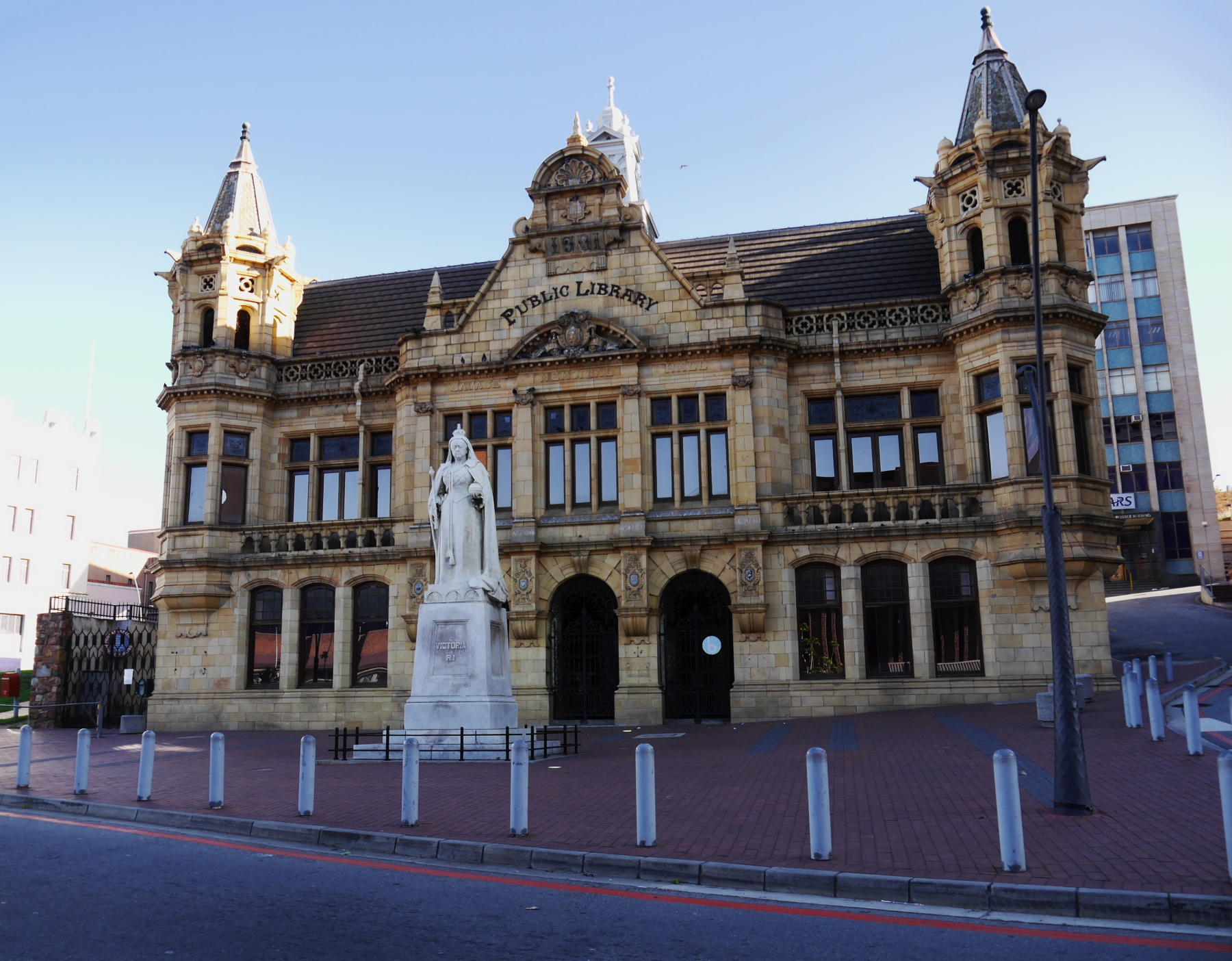 Et pourtant, malgré ces efforts, le centre semble désert. Il n’est pas encore 16 heures, nous sommes samedi, et à part un groupe croisé à l’office du tourisme, nous sommes seuls. Sur les collines vides de Port Elizabeth, nous entendons nos pas et nos voix résonner. Il ne manquerait plus qu’un air d’harmonica et des « tumbleweeds », des virevolants qui traverseraient la route, poussés par le vent. Pourtant, Port Elizabeth ne manque pas tout à fait d’atouts. Certes, tout semble avoir été un peu mélangé: à côté de demeure de style « Dutch Cape », on trouve des église qui ne feraient pas tâches dans la campagne anglaise. A côté de bâtiments art déco, d’autres sont de style victorien, comme la Bibliothèque principale de la ville, devant laquelle trône… la Reine Victoria. Et malgré çà, on ne peut pas se défaire d’un sentiment d’abandon. Telle une ville américaine après les heures de bureau, Port Elizabeth se vide de son sang, chacun rentre dans son quartier… mais beaucoup plus tôt. Arrivés sur Govan Mbeki, l’artère commerciale du centre, tous les snacks sont en train de fermer. Il nous faudra être très insistants pour pouvoir acheter un simple sandwich.