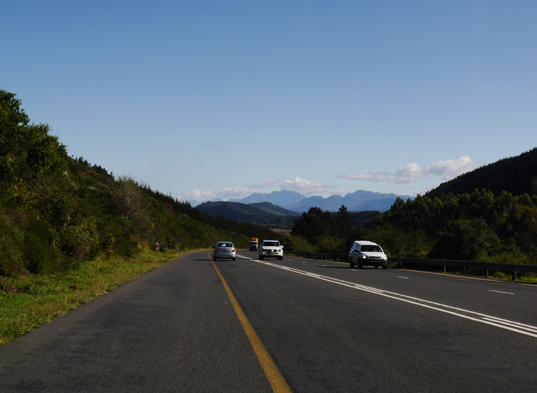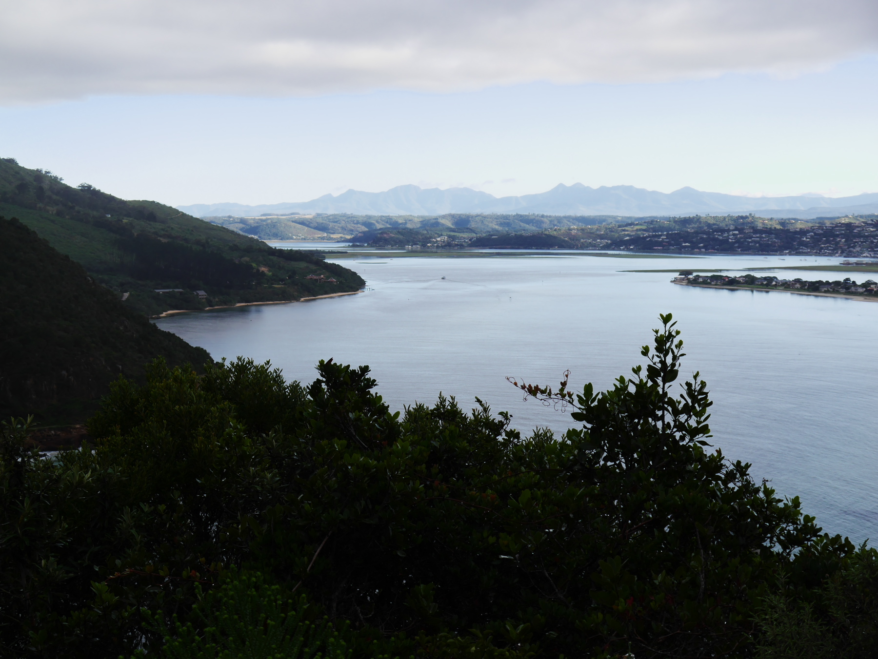 Une petite aube embrumée se lève sur Knysna et sa lagune. Je descends prendre mon petit déjeuner. Jeune Loup, mon compagnon de voyage et chauffeur attitré, n’est pas encore là. Pendant que j’arrache un morceau de toast, je me demande si Monsieur est du matin ou pas. On se côtoie depuis plus d’un an et demi, mais il y a encore des détails dans le genre que j’ignore. Quant à moi, je dois avoir une espèce de sourire béat à la pensée de reprendre la route. Je fais partie de cette espèce qui, même si elle râle un peu sur son alarme, est de bonne humeur au lever. Finalement, le voilà qui arrive, sourire un peu moqueur au coin des lèvres, comme s’il s’attendait à ce que le charrie, mais non ! J’ai plutôt envie de discuter des plans pour la journée. Du moins de la première étape.