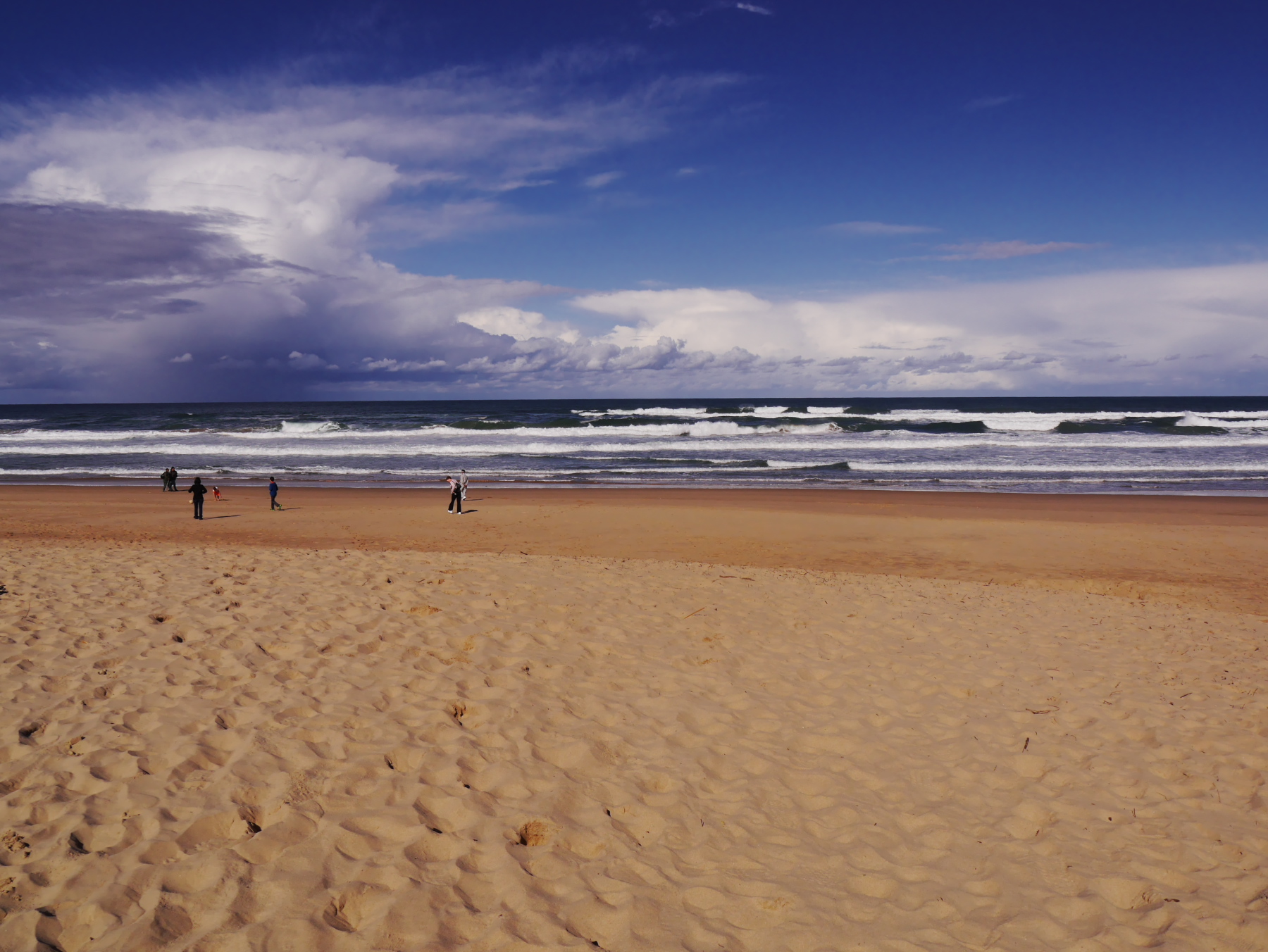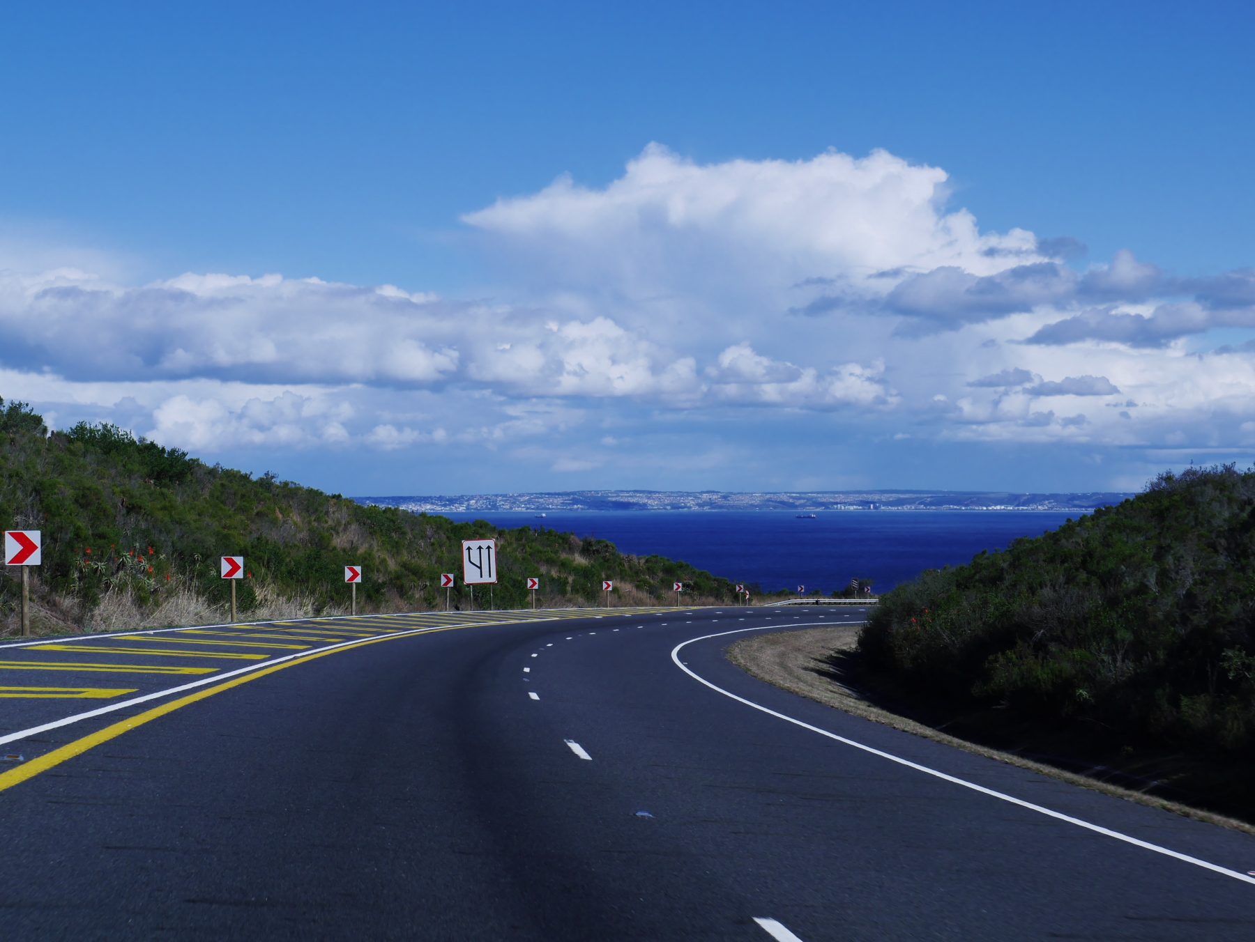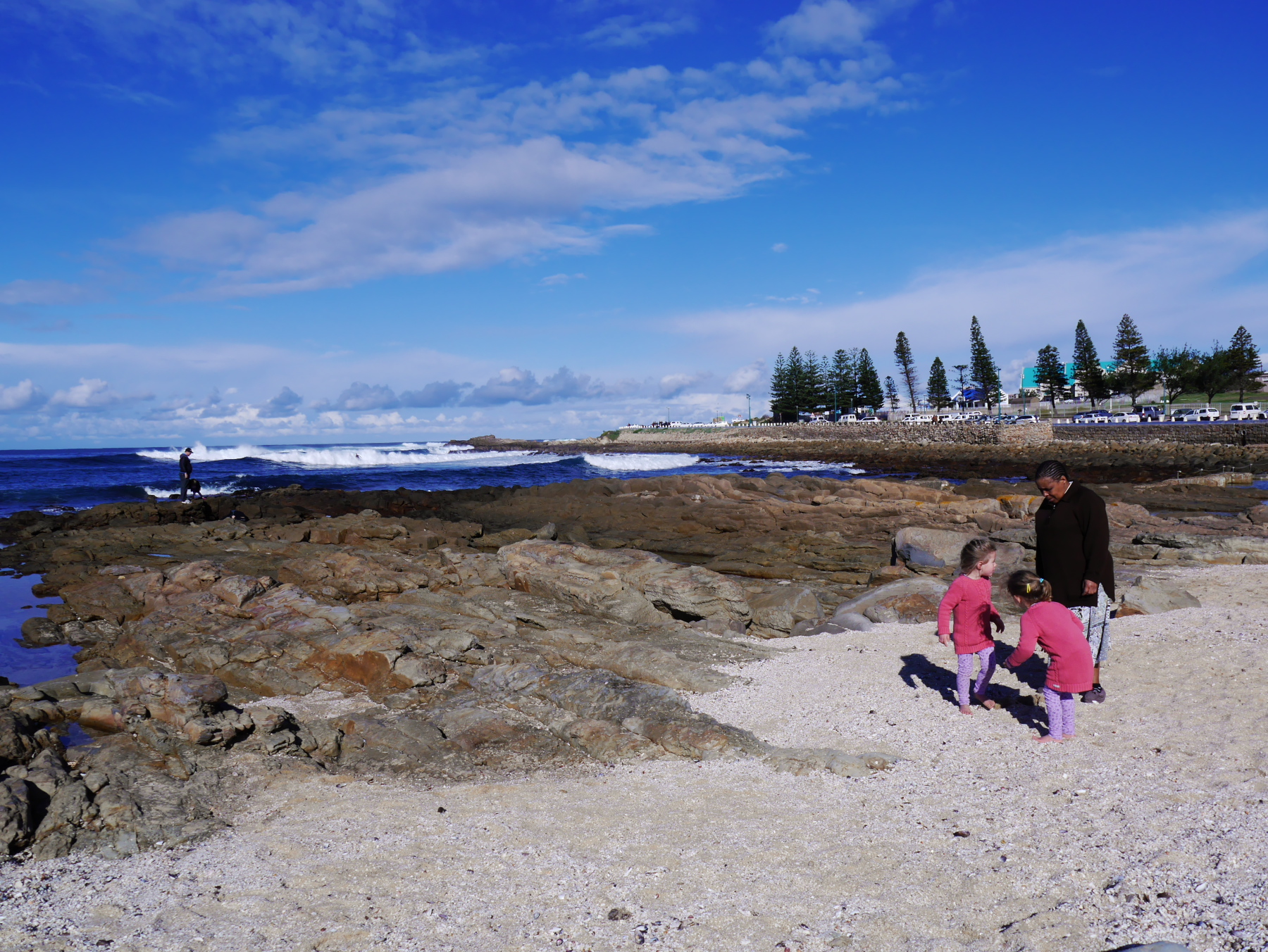 Avec cette jolie image dans la tête, Jeune Loup et moi prenons la route et en filant vers l’ouest, nous laissons derrière nous les nuages, au fur-et-mesure. La route monte doucement, nus traversons forêts et collines sous un ciel de plus en plus beau. Avec ça et là, des touches de fleurs rouges sur le côté de la route. Ça a beau être l’hiver, mais la « Route des jardins » ne s’appelle pas comme çà pour rien. A la sortie d’un virage, nous voilà sur une route qui surplombe l’océan… devant nous, une magnifique plage semble nous appeler. Nous ne résistons pas et prenons la première sortie pour la petite ville de Wilderness.