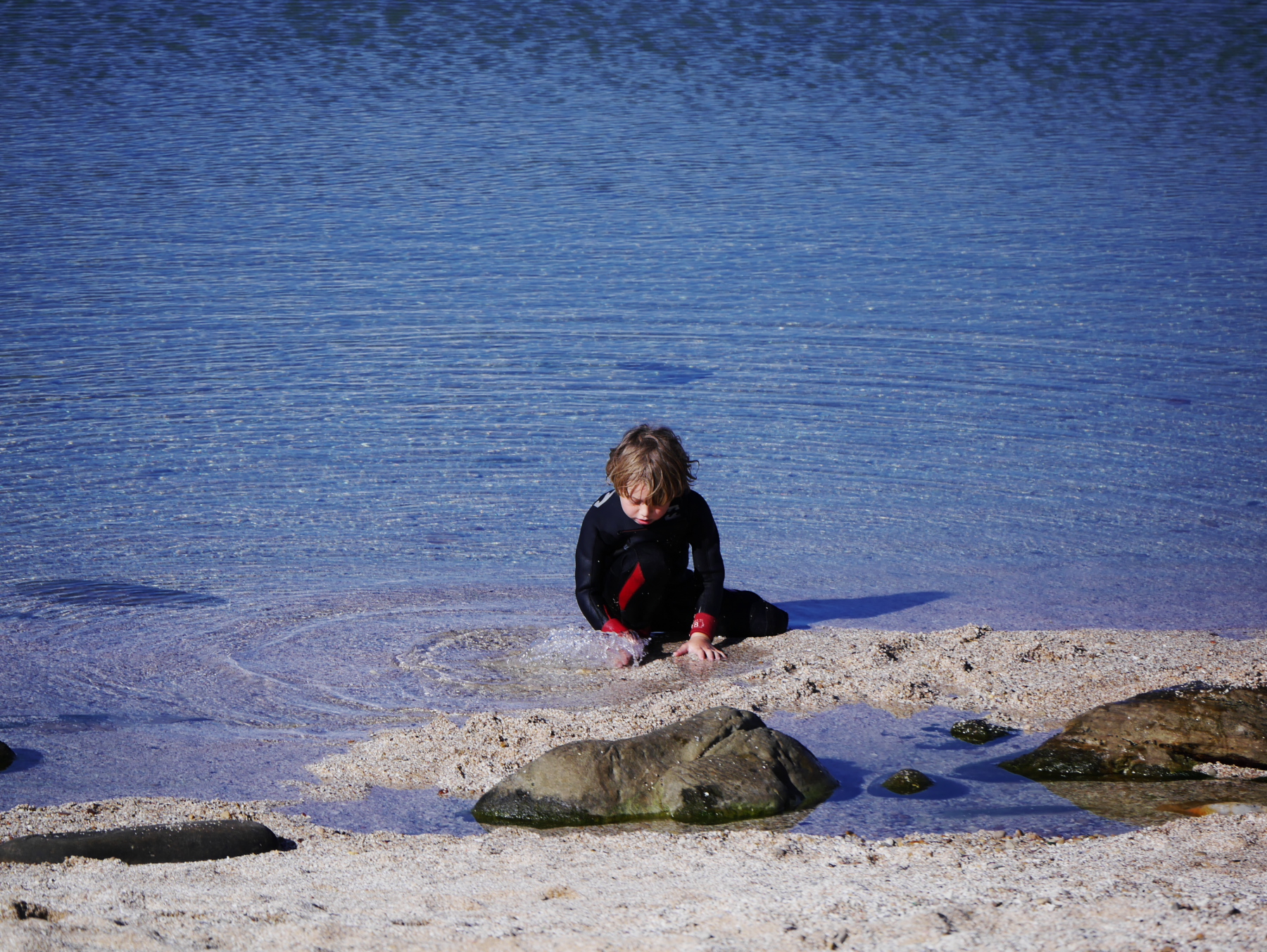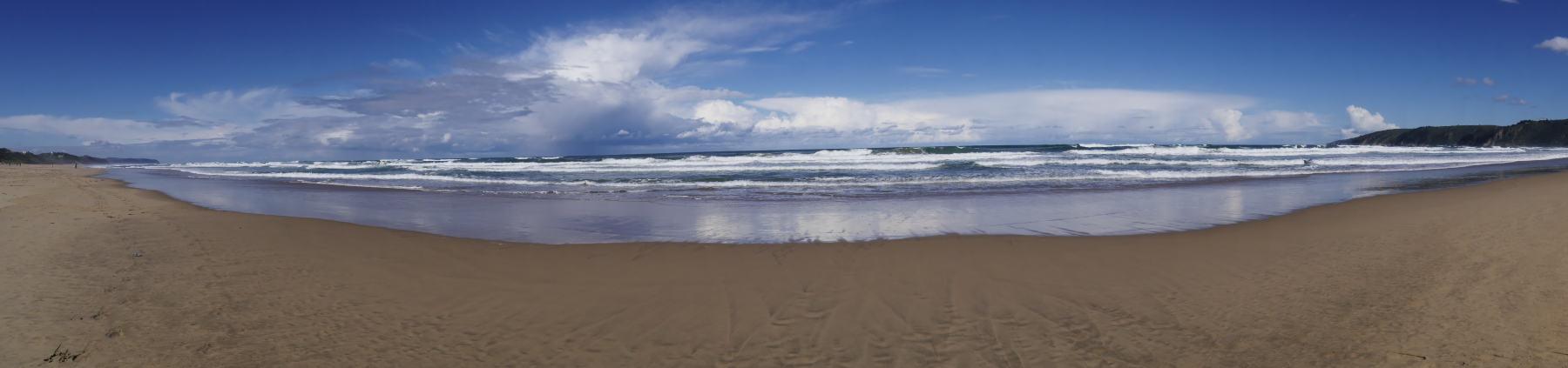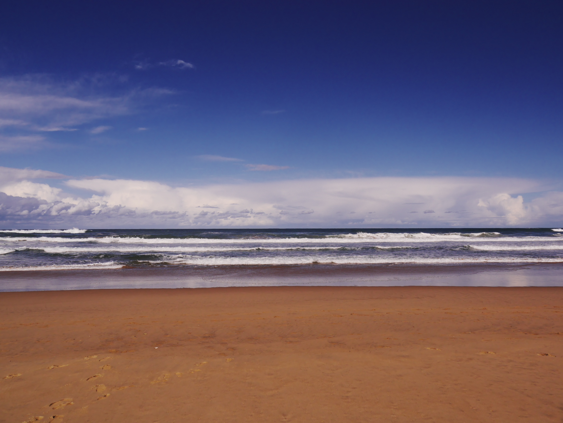Avec cette jolie image dans la tête, Jeune Loup et moi prenons la route et en filant vers l’ouest, nous laissons derrière nous les nuages, au fur-et-mesure. La route monte doucement, nus traversons forêts et collines sous un ciel de plus en plus beau. Avec ça et là, des touches de fleurs rouges sur le côté de la route. Ça a beau être l’hiver, mais la « Route des jardins » ne s’appelle pas comme çà pour rien. A la sortie d’un virage, nous voilà sur une route qui surplombe l’océan… devant nous, une magnifique plage semble nous appeler. Nous ne résistons pas et prenons la première sortie pour la petite ville de Wilderness.