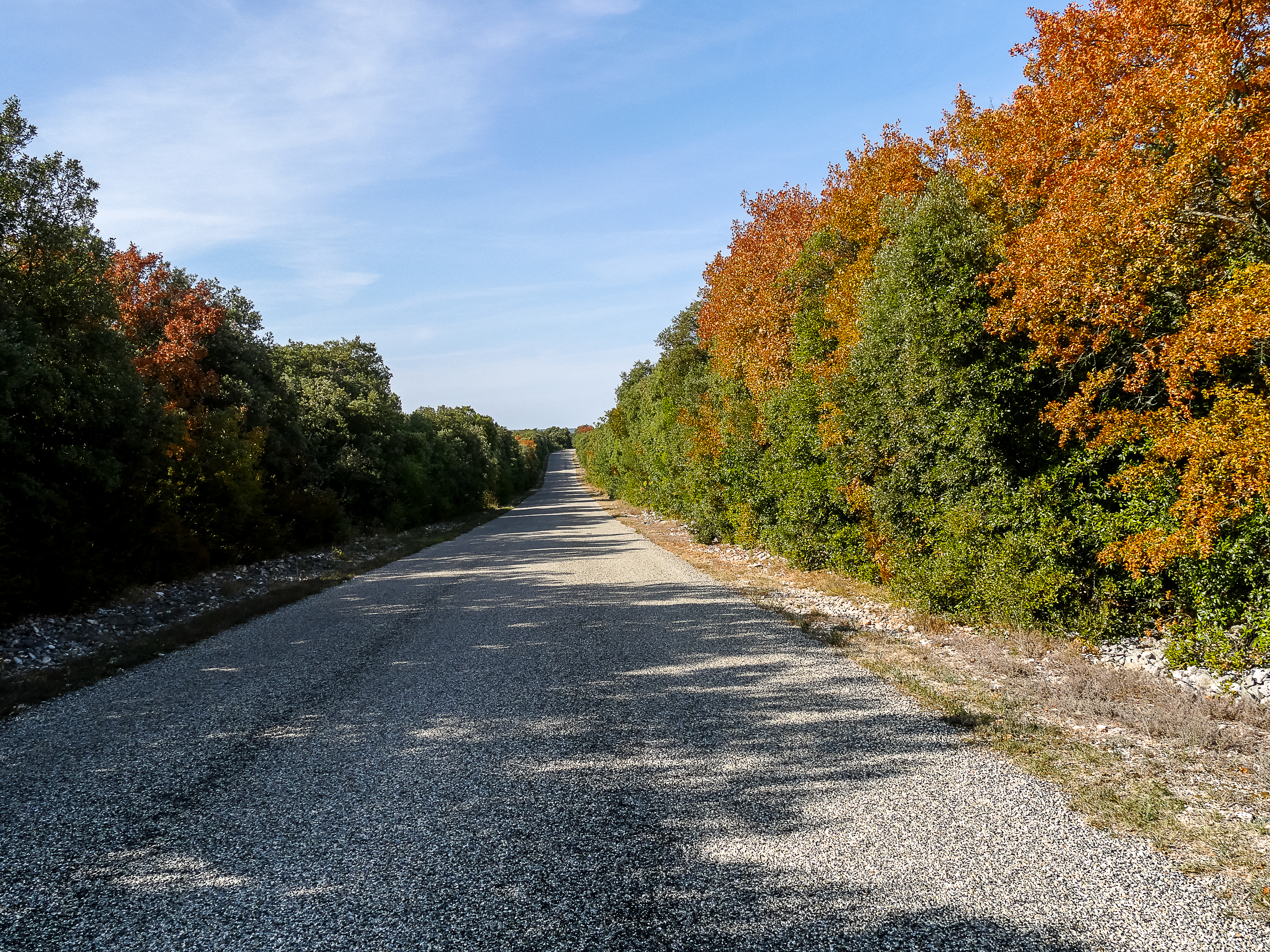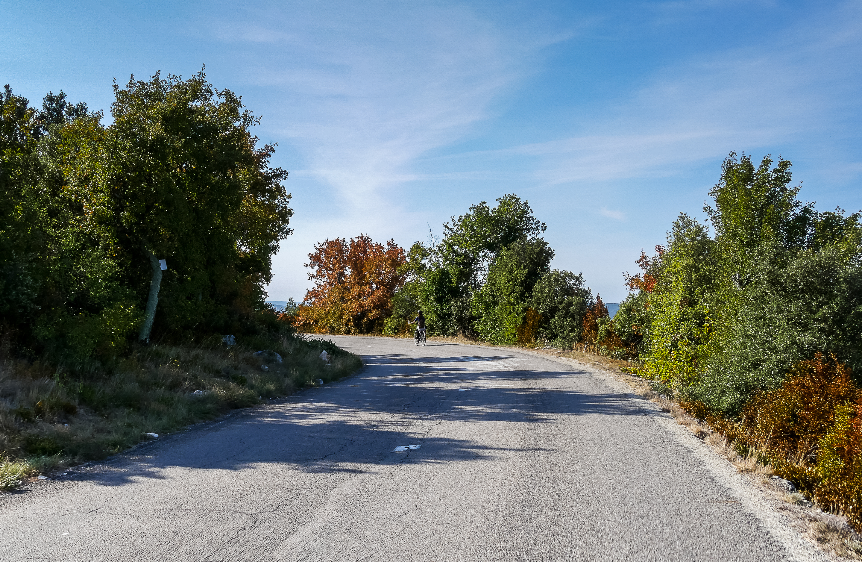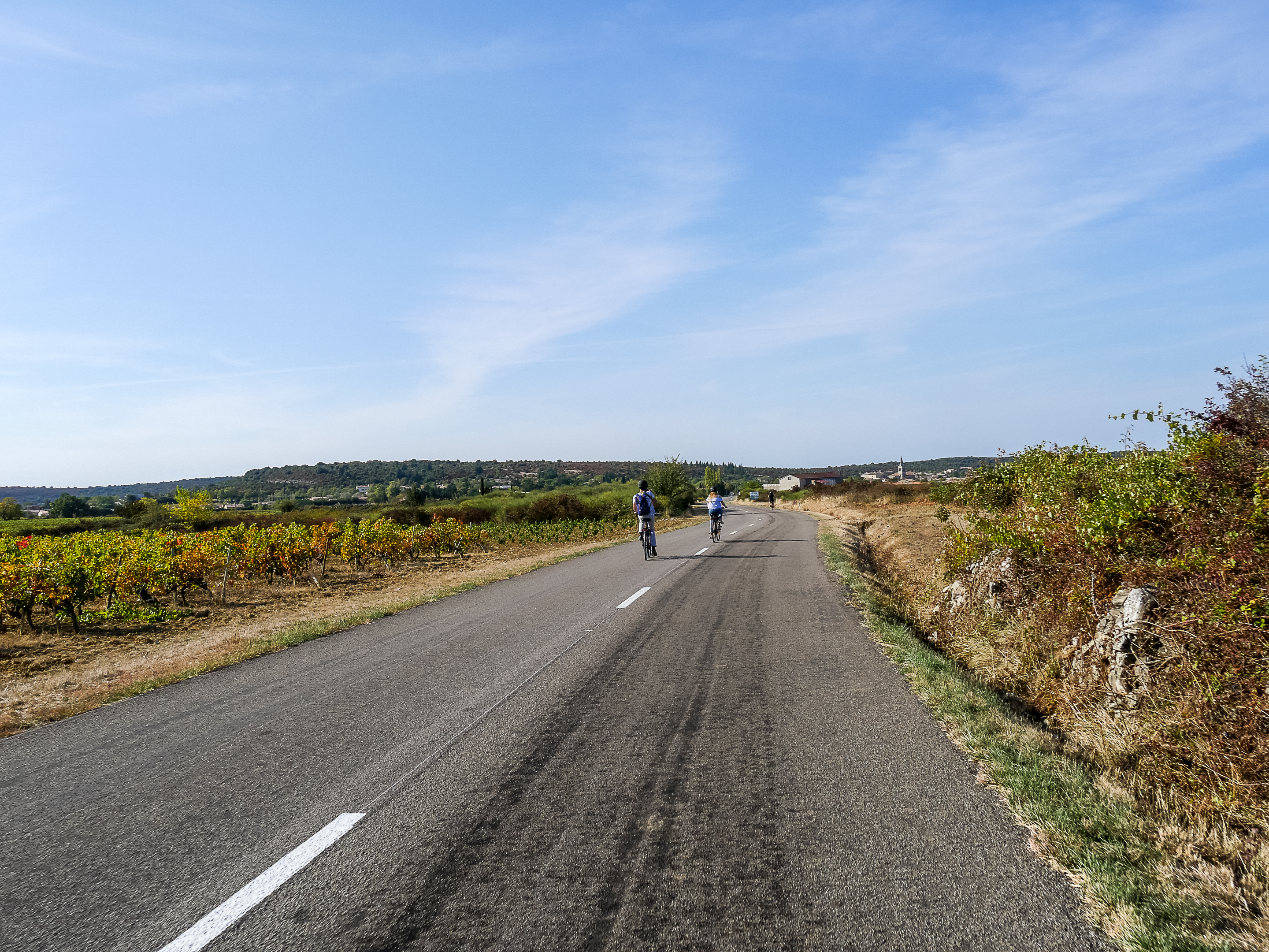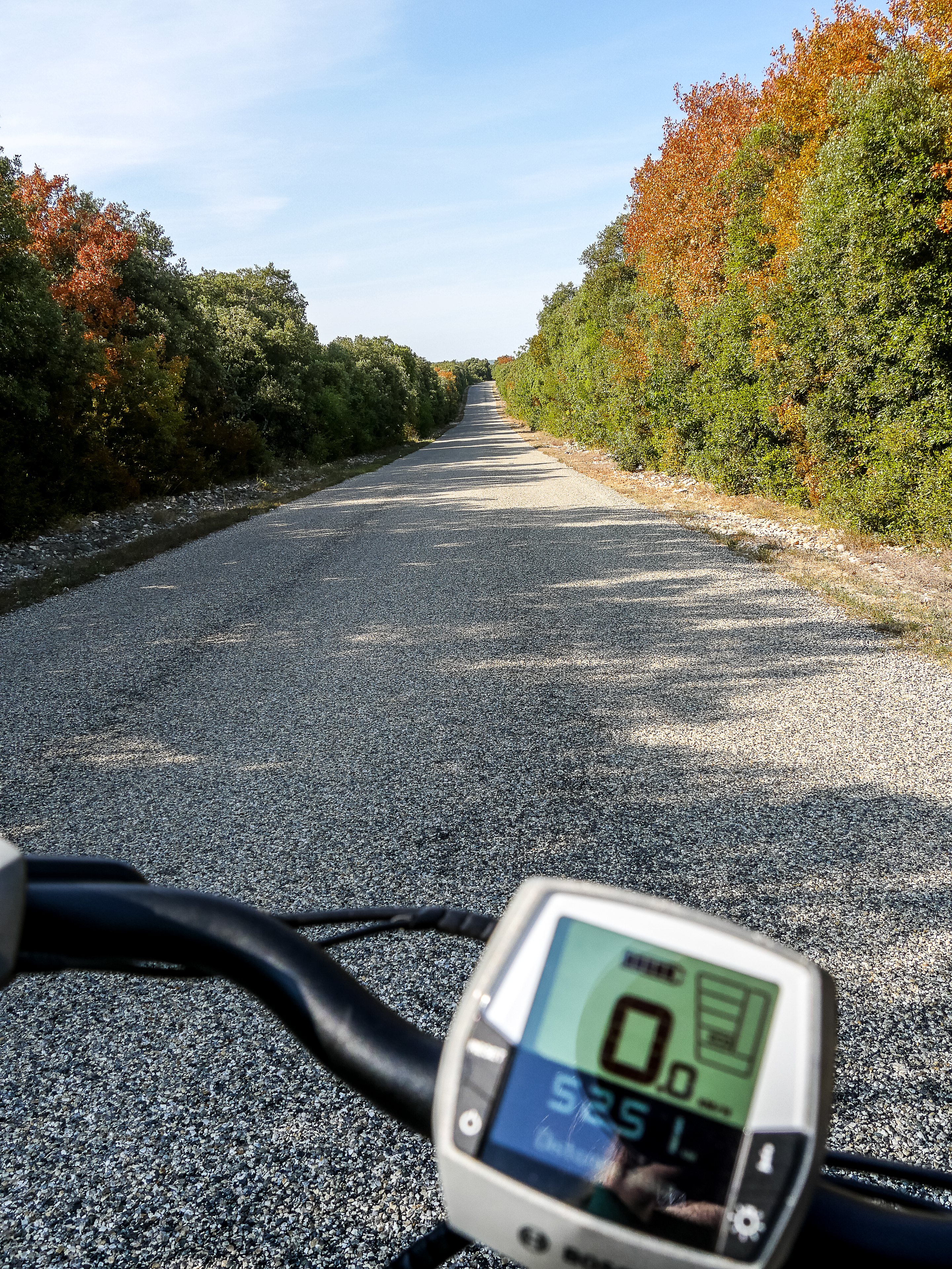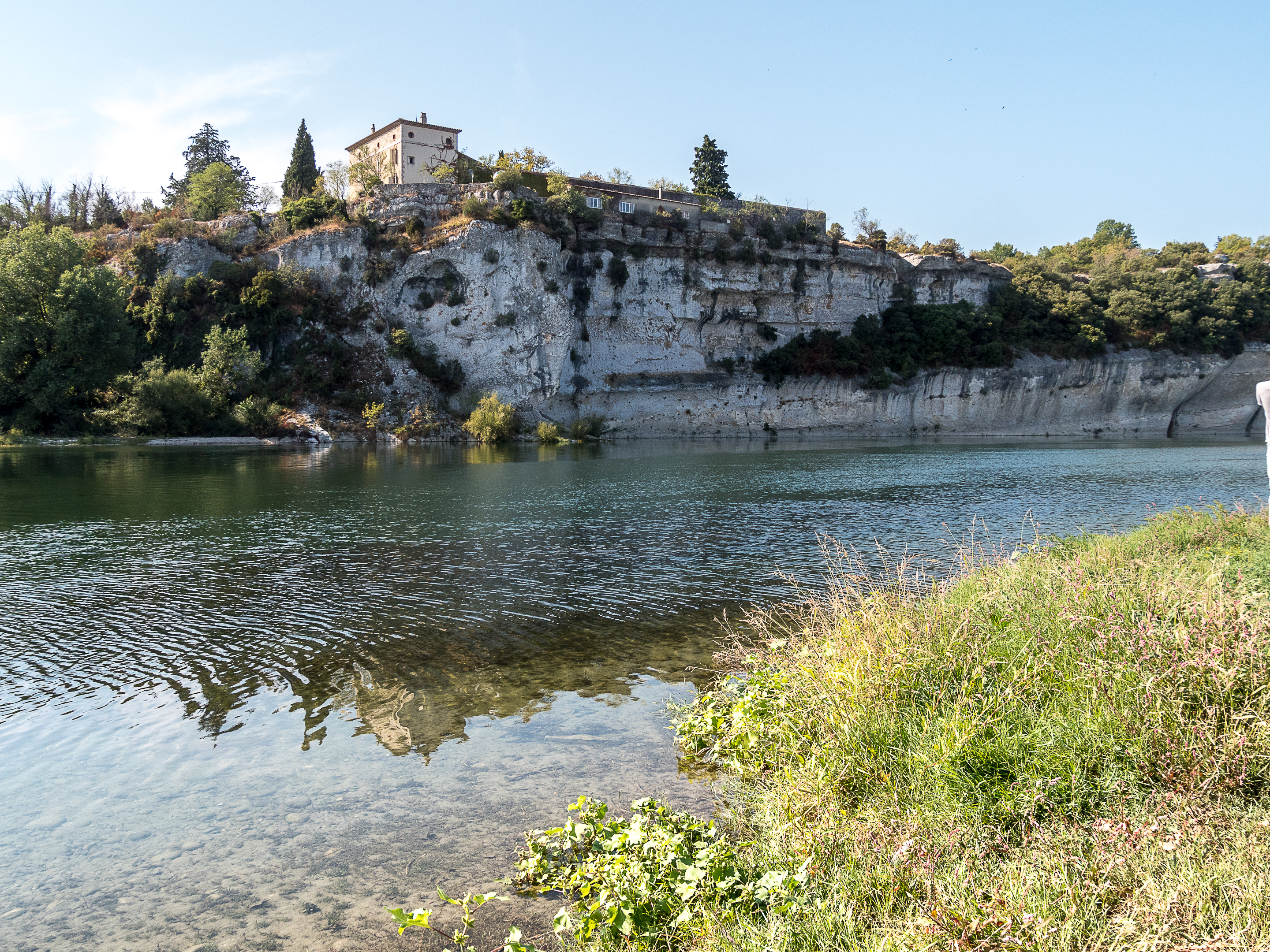 Le vélo électrique, j’y avais déjà essayé pendant mon séjour sur le ViaRhôna et une fois qu’on y a goûté, difficile de s’en passer, chaque coup de pédale vous propulsant littéralement ! Nous voilà donc partis, en ordre dispersé, pour rejoindre la Grotte de Saint-Marcel, via la Grotte de la Madeleine. Et le chemin est plutôt sympathique sur une route à travers les bois, il aurait fallu encore attendre 3 semaines avant d’avoir les jolies couleurs de l’automne mais elles s’annoncent doucement. Je profite, en tout cas, de ce goût de liberté qu’apporte le vélo : le vent sur mon visage, le jeu d’ombre et de lumière des feuilles d’arbres sur mes yeux, le sentiment de vitesse… mais de vitesse juste ce qu’il faut pour bien profiter du paysage.