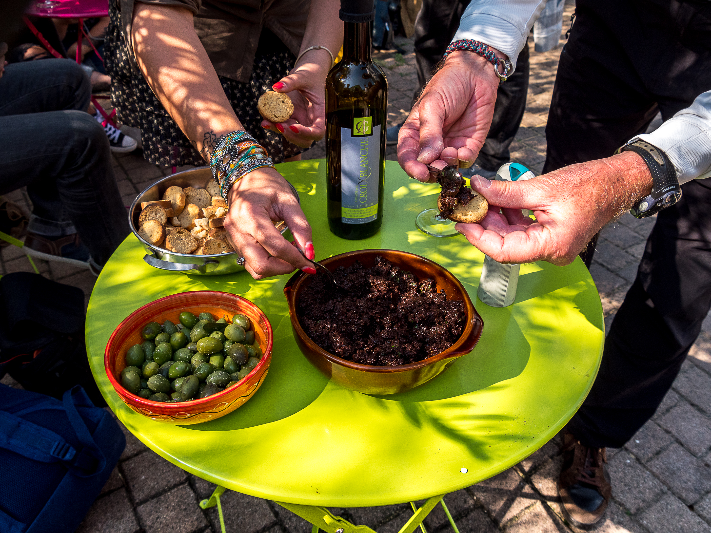 Et comme ce séjour avait commencé, il se termine en festin et dégustation à l’Escarbille. Sur la terrasse du restaurant, pendant que l’on déguste les vins de Daniel et Rose-Marie, j’ai un pincement au cœur, similaire à celui du dernier jour des colonies de vacances, quand il faut rentrer chez soi, dire adieu aux amis qu’on a peine eu le temps de se faire et retrouver son quotidien.