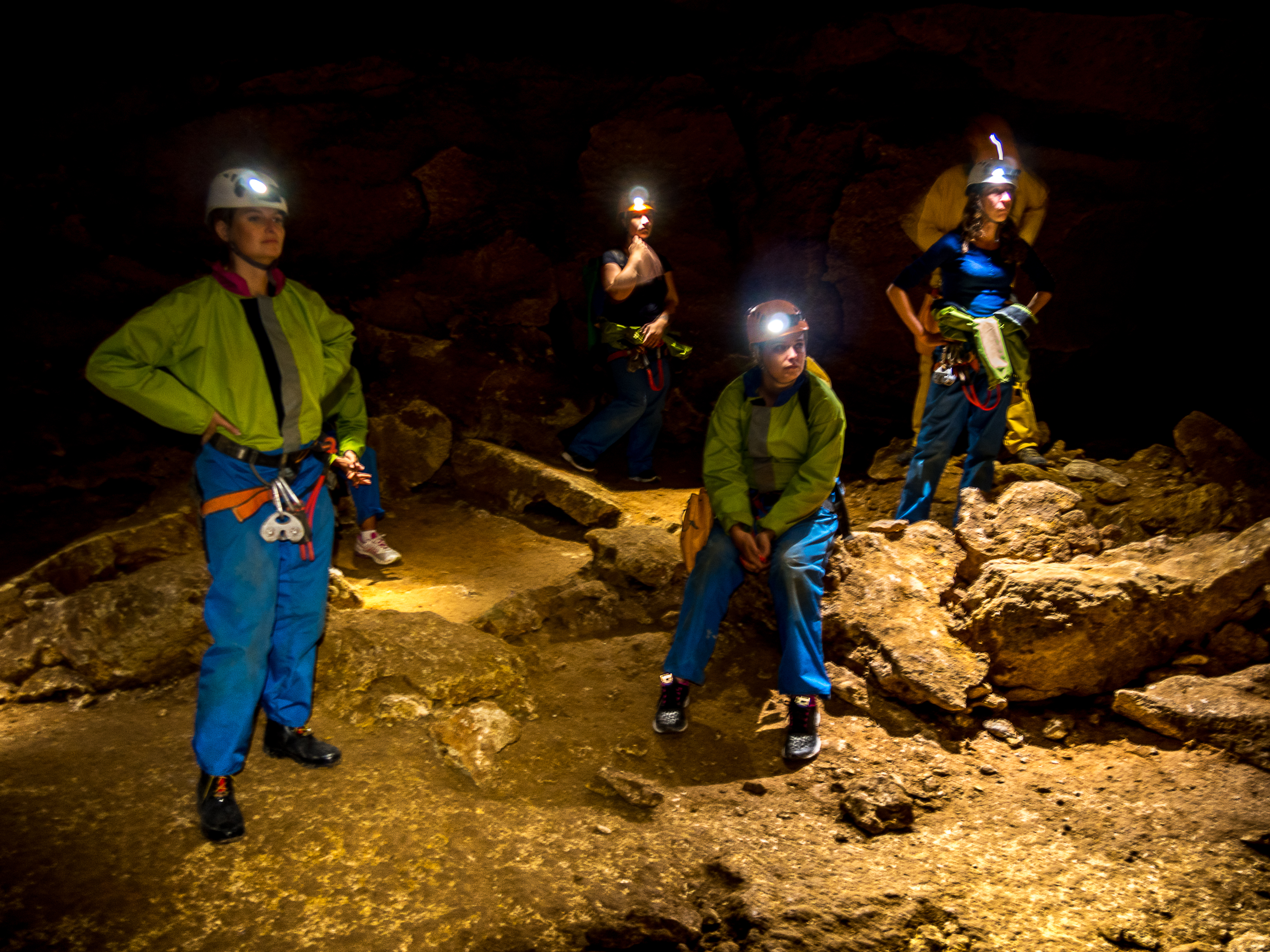 La Grotte (on devrait plutôt dire LES grottes) de Saint-Marcel est un complexe de plusieurs kilomètres. Certaines parties sont emménagées pour les visites, d’autres sont accessibles aux spéléologues d’un jour comme nous ou réservées pour les pros et enfin, il existe des grottes qui sont encore inexplorées. La particularité de Saint-Marcel est qu’on y élève du vin de grotte ! Un vin qui mûrit plus doucement qu’à la surface grâce à la température fraîche qui y règne en permanence et qu’on peut venir goûter sous terre : de la spéléoenologie ! Revêtus de tout l’attirail du parfait spéléologue (combinaison, casque, lampe et une dose de courage), nous nous enfonçons dans les profondeurs de la terre.