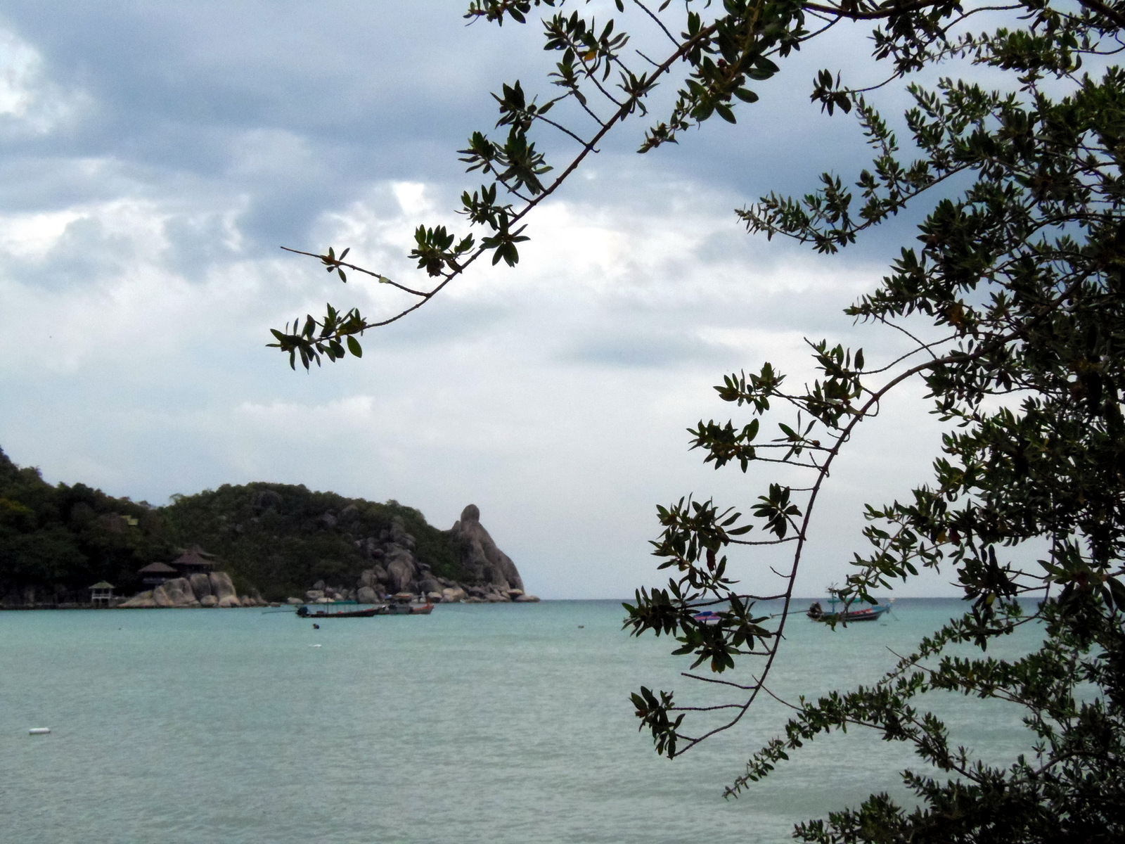 Ce n’est ni à Mae Haad, ni à Sairee Beach (la plus longue plage de l’île) que je vais loger mais à Chalok Ban Kao, une jolie baie tranquille avec quelques commerces. Sur les recommandations de Charlie, un jeune expat français qui gère les sites de Samui Passion et de KohTaoZone, que j’ai posé mes valises au Tropicana Resort. Un complexe pour budget serré qui mélange construction hôtelière et bungalow. C’est dans la structure « hôtel » que je me retrouve. Pour une vingtaine d’Euros, j’ai droit à une grande chambre et un balcon immense qui donne sur la rue mais tout est si calme, je ne souffrirai pas du bruit! Il y a même une télé! Pas de chaîne disponibles mais un lecteur de DVD et l’hôtel prête gratuitement des films! Je remarque vite que dans une rue un peu cachée, il y a d’autres magasins, j’irai les voir plus tard! La première chose que je fais, c’est d’aller voir la baie. Pas de grandes étendues de sable blanc… que du contraire. La petite « plage » de l’hôtel une surface bétonnée couverte de sable mais la baie est charmante et au bout, un rocher s’élève et en le regardant bien, elle a la forme d’un Bouddha qui fait face à la mer!