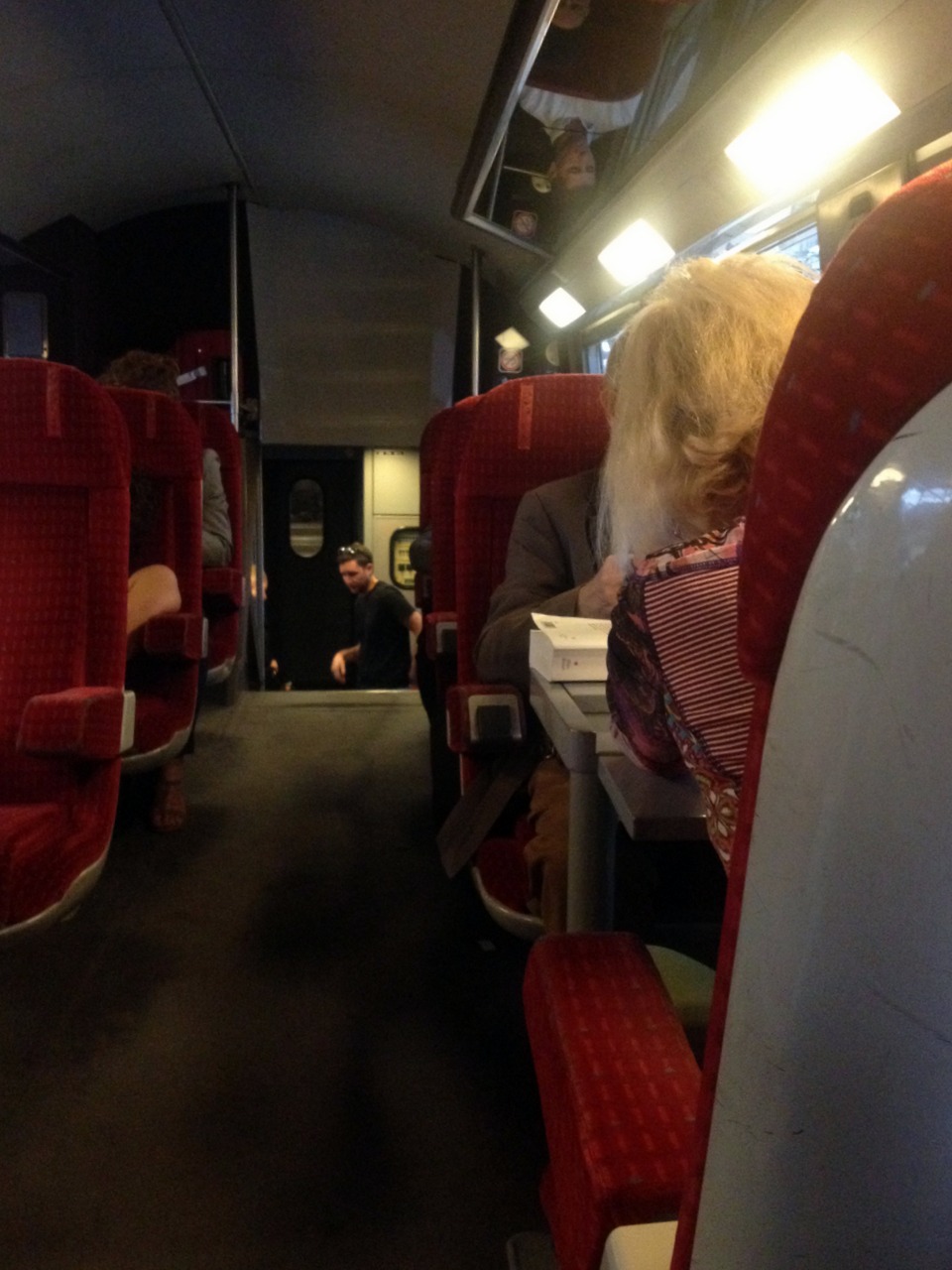 C’était assez impressionant! J’ai vu pire en Italie, un vendredi soir entre Bologne et Florence. Du genre où il n’y avait même plus de place pour faire monter des passagers. On avait trouvé la parade: aller manger une tarte au wagon restaurant (car il y en avait un). OUF! 😉