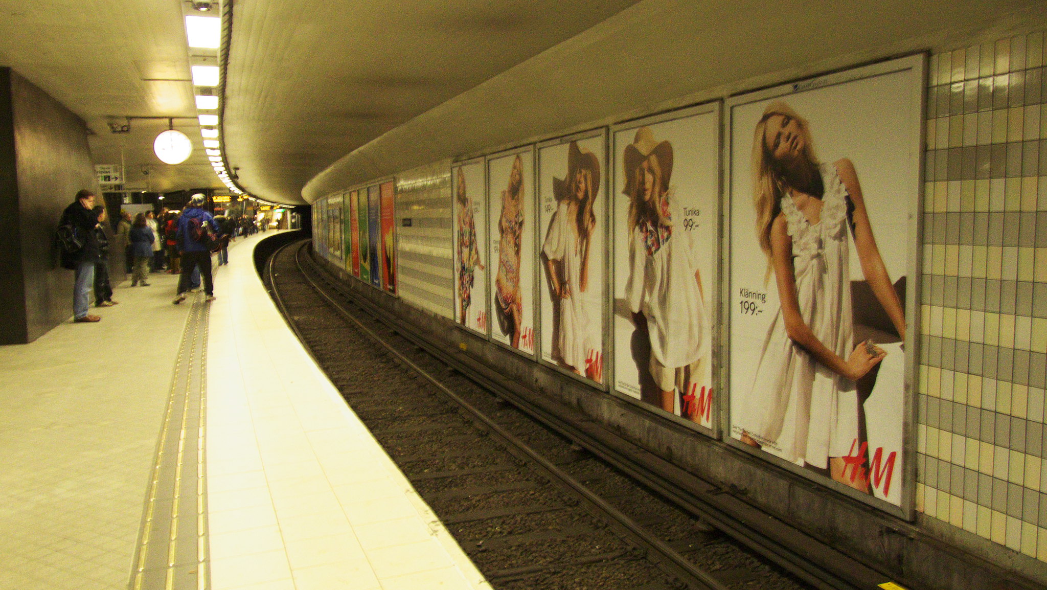Le petit déjeuner avalé, je refais mes valises et migre vers mon nouvel hôtel. Stockholm sourit sous le soleil… Je parcours le hall central de la Gare avant de m’engouffrer dans le T-Bana, le métro local. Il n’y a pas de doute… je suis au pays de H&M! Pas un centimètre carré d’espace publicitaire qui ne soit pas rempli par la marque. C’est une vision aussi familière que McDonald’s! Le métro est calme, propre… et quand il démarre, étrangement silencieux. A peine un “woooosh” au moment du départ. Je m’amuse à écouter les annonces et à comparer la prononciation avec ce qui passe sur les écrans… Je perçois une langue saccadée, musicale dont la compréhension à la lecture n’est pas bien compliquée mais pouvoir la rendre dans une bouche romane, c’est autre chose. Je suis littéralement fascinée. Au quatrième arrêt, me voilà arrivée à destination: Skanstull, dans le quartier branchouille de Södemalm.