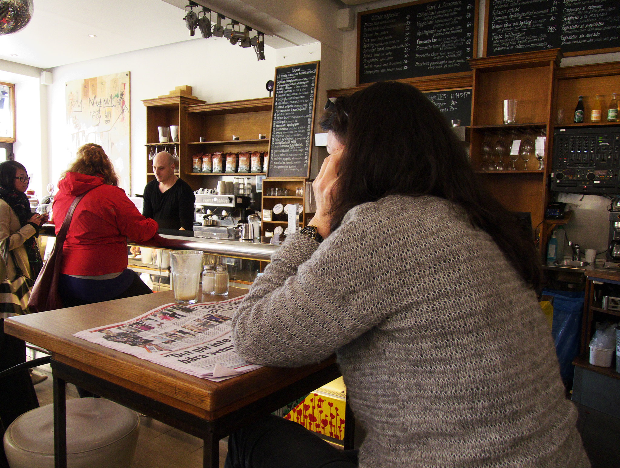 Je traverse le pont et entre dans Gamla Stan, la vieille ville, pour l’observer de plus près. Je me retrouve enrobée d’orange, de rouge, d’ocre et de touristes dont la majorité sont Espagnols ou Italiens. Je me dis que la nation d’exotisme est toute relative. Sous le soleil, les Suédois, aux, semblent hypnotisés, en transe, semblant à peine regarder les pavés, les visages tournés vers l’astre du jour comme des tournesols. Une marchande de Västerlånggatan me signale que “C’est le premier jour de vrai printemps alors, nous sommes heureux”. Tellement heureux que malgré les 6 degrés ambiants, je vois défiler quelques disciples du Dieu Soleil en shorts et T-shirts pendant que je me réchauffe d’une soupe, les genoux enveloppés d’un plaid à la terrasse d’un café de Stortorget.