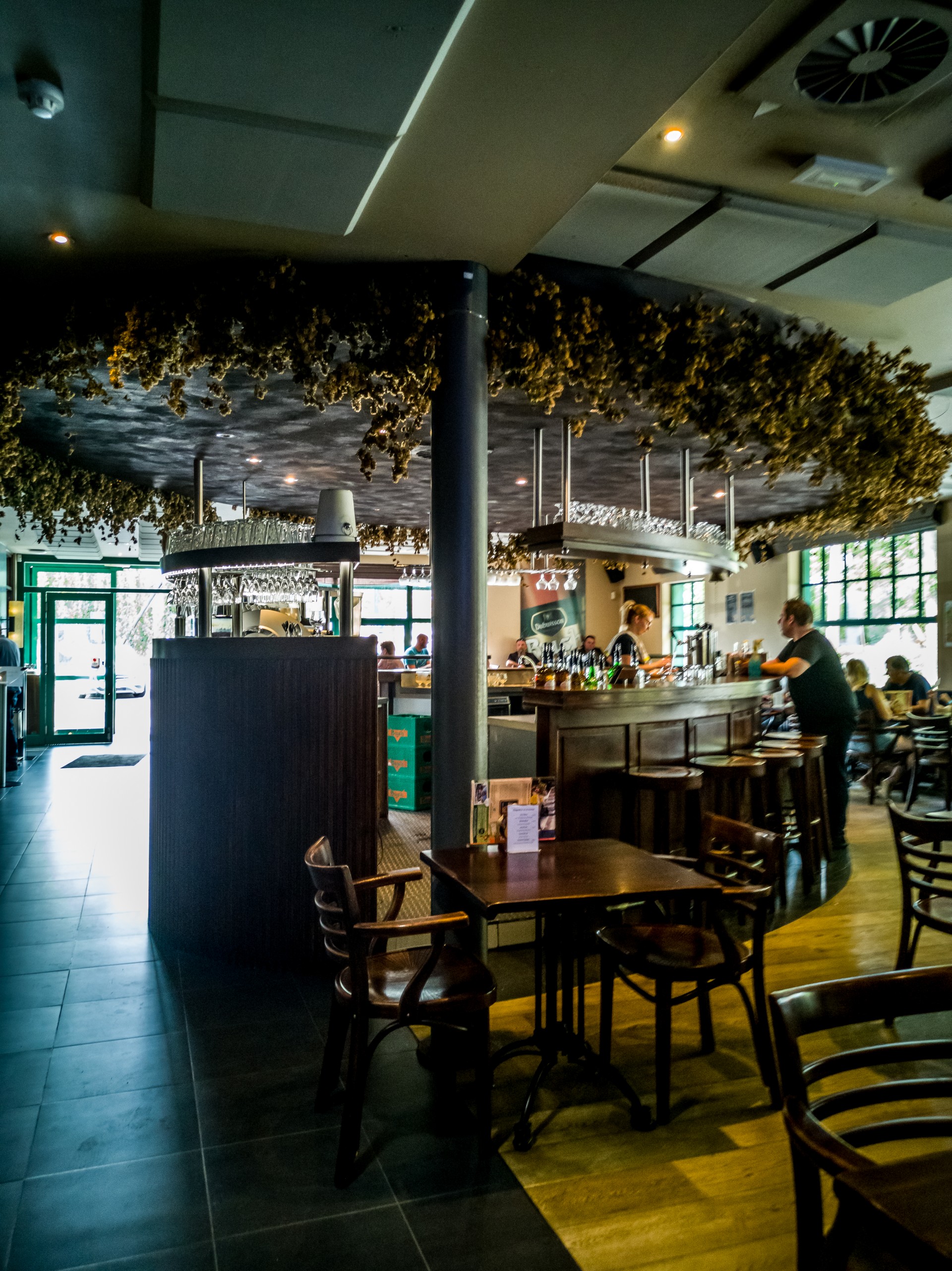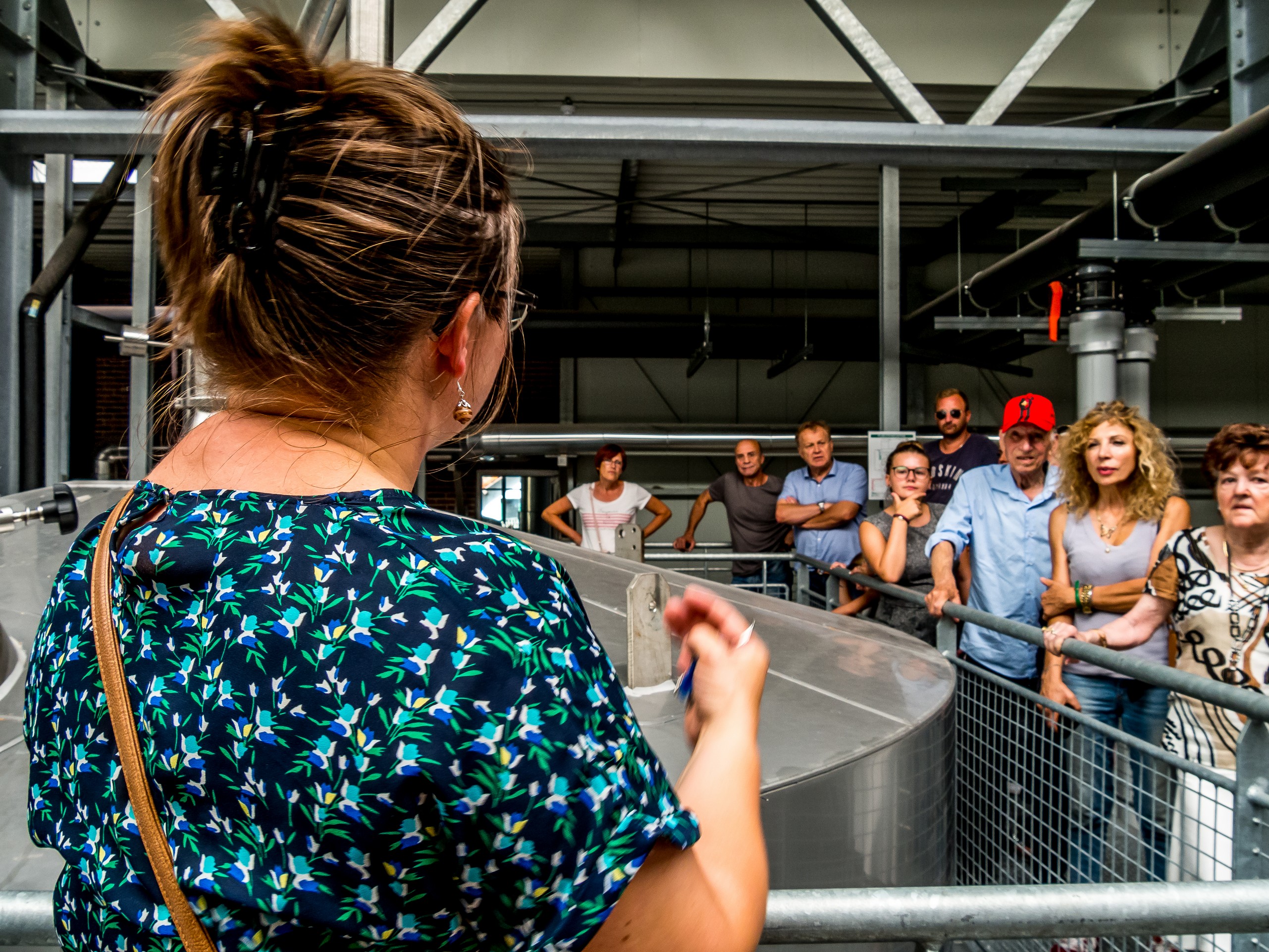 C’est ici que vient mon premier accroc. J’arrive bien à l’avance au restaurant de la Brasserie (parfait si vous avez une fringale après votre balade en vélo qui dure quand même bien deux heures et demie sans trainer) et achète mon billet pour la visite (7 Euros) mais quand je demande s’il y a un endroit où je peux charger mon vélo, on m’oppose un refus net. Rien n’est prévu pour ça alors que la brasserie est le but de l’expérience « Bike & Beer ». Il n’y a pas non plus d’endroit sécurisé dédié aux vélos, juste un parking pour voiture. Ça fait un double problème : la batterie du vélo est déjà quasi épuisée et mon vélo est exposé à la vue de tous ! J’ai beau tourner autour et chercher une éventuelle prise qui trainerait à l’extérieur, rien ! Par contre, j’arrive à trouver un endroit un peu isolé pour garer le vélo en relative sécurité, du côté des cuisines. C’est donc un peu frustrée que j’aborde cette visite guidée. Pour tout vous dire, j’en ai parlé avec la guide à la fin du tour, puisque notre avis nous était demandé avec un questionnaire, et peut-être que les choses changeront très vite.