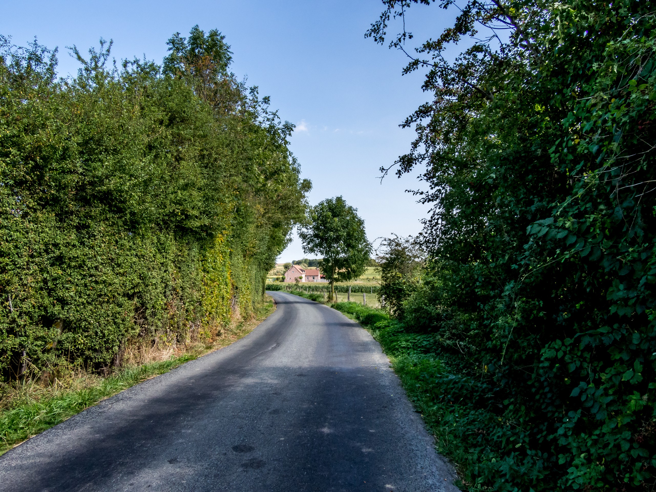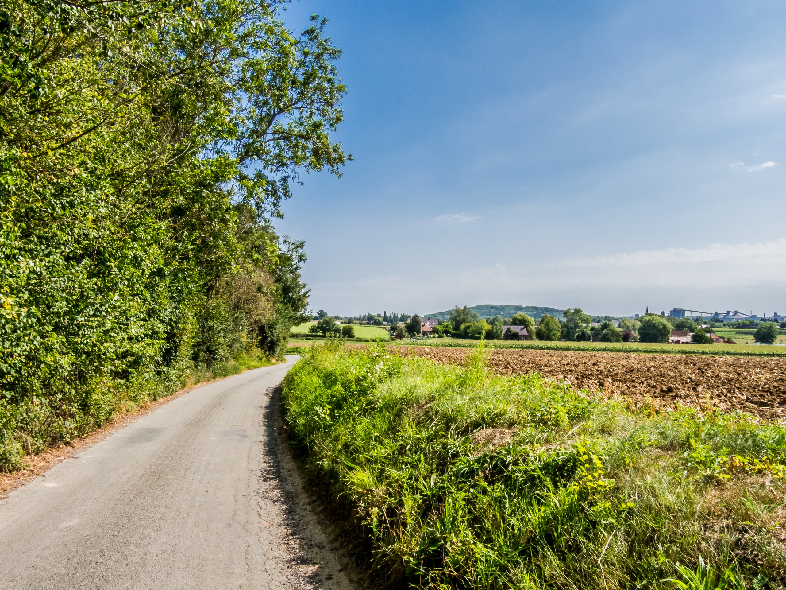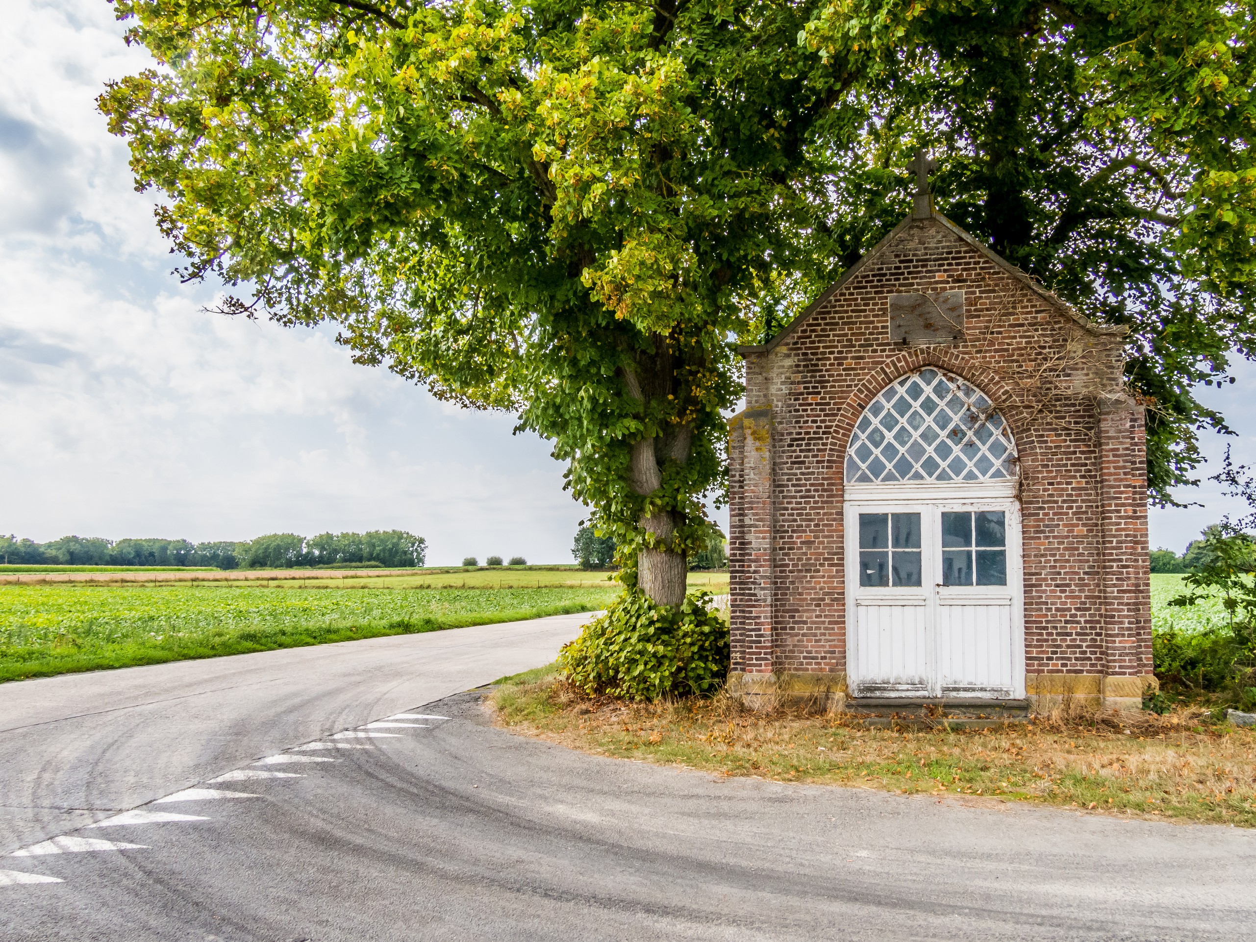 D’abord, il faut sortir d’une Tournai en travaux. Pour coller au plus près de l’expérience, je me rends à la piscine de l’Orient et prends un peu de temps pour décider de l’itinéraire. Il existe trois routes pour Bike & Beer : une longue, une moyenne et une courte. Le choix sera vite fait : ce sera la route moyenne qui traverse la campagne à l’aller et la courte au retour, qui se passe au fil de l’eau. Quelques minutes plus tard, j’ai quitté la grand route et me voilà pédalant au soleil à travers les doux paysages du tournaisis. Ici, les routes ne sont plus qu’à une voie, les voitures sont rares et on profite avec joie des prairies, des champs et des bocages : plaisirs simples ! De temps en temps, on traverse quelques villages. Rumilies, Havinnes, Beclers, Maulde, Barry s’égrènent au fur et à mesure des coups de pédale. Vous croiserez aussi ces fameuses petites chapelles si typiques de la région. Installées aux croisements des chemins, elles sont souvent construites à l’ombre d’arbres centenaires, souvent un chêne ou un châtaignier.