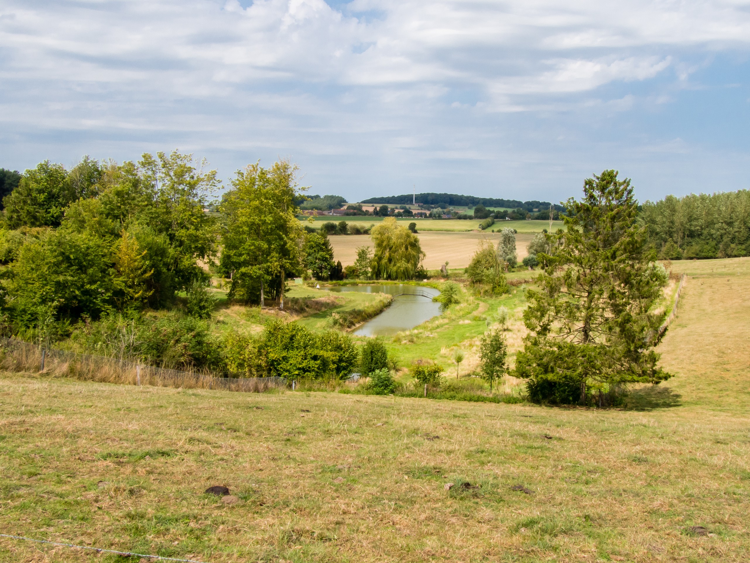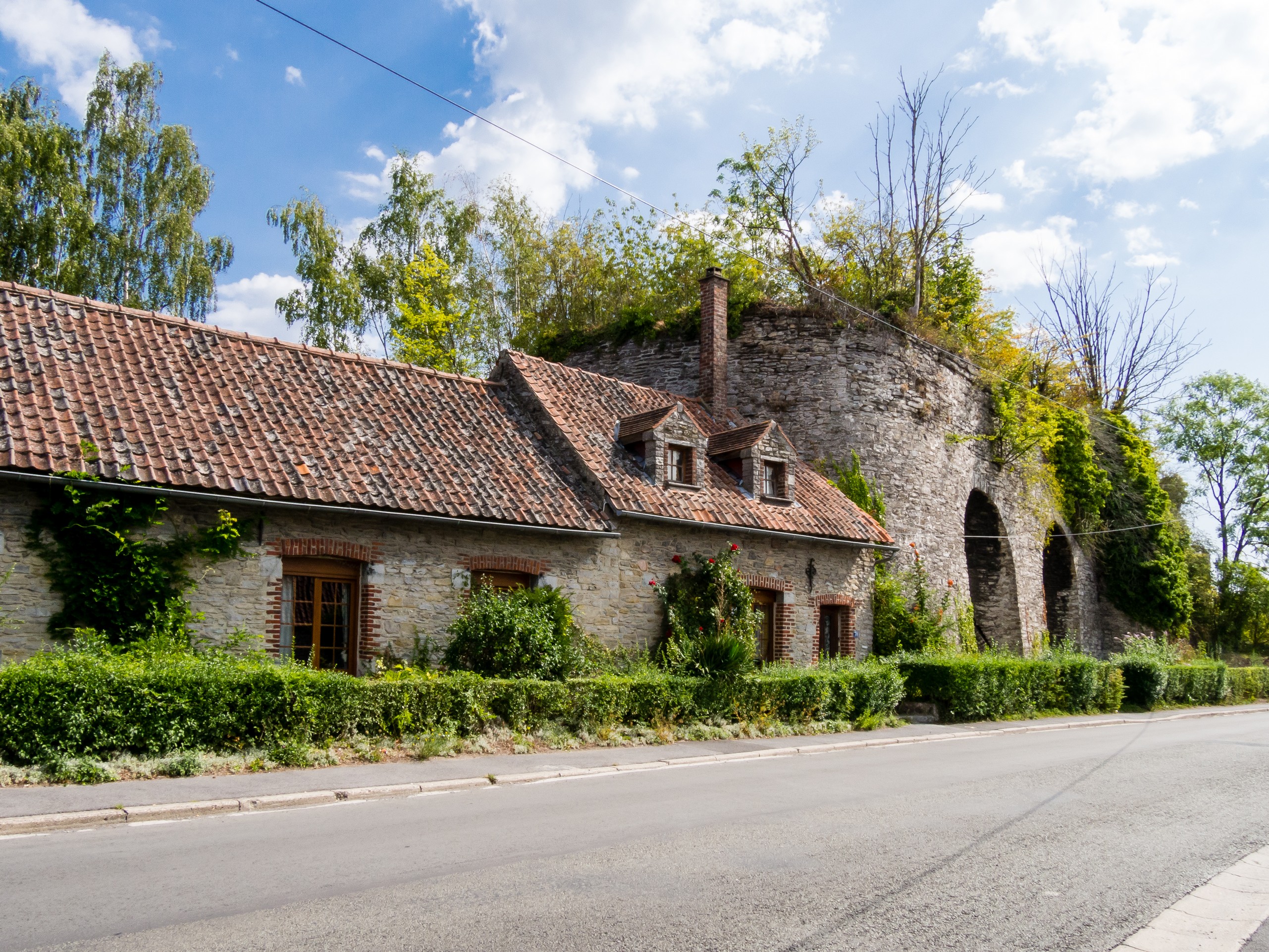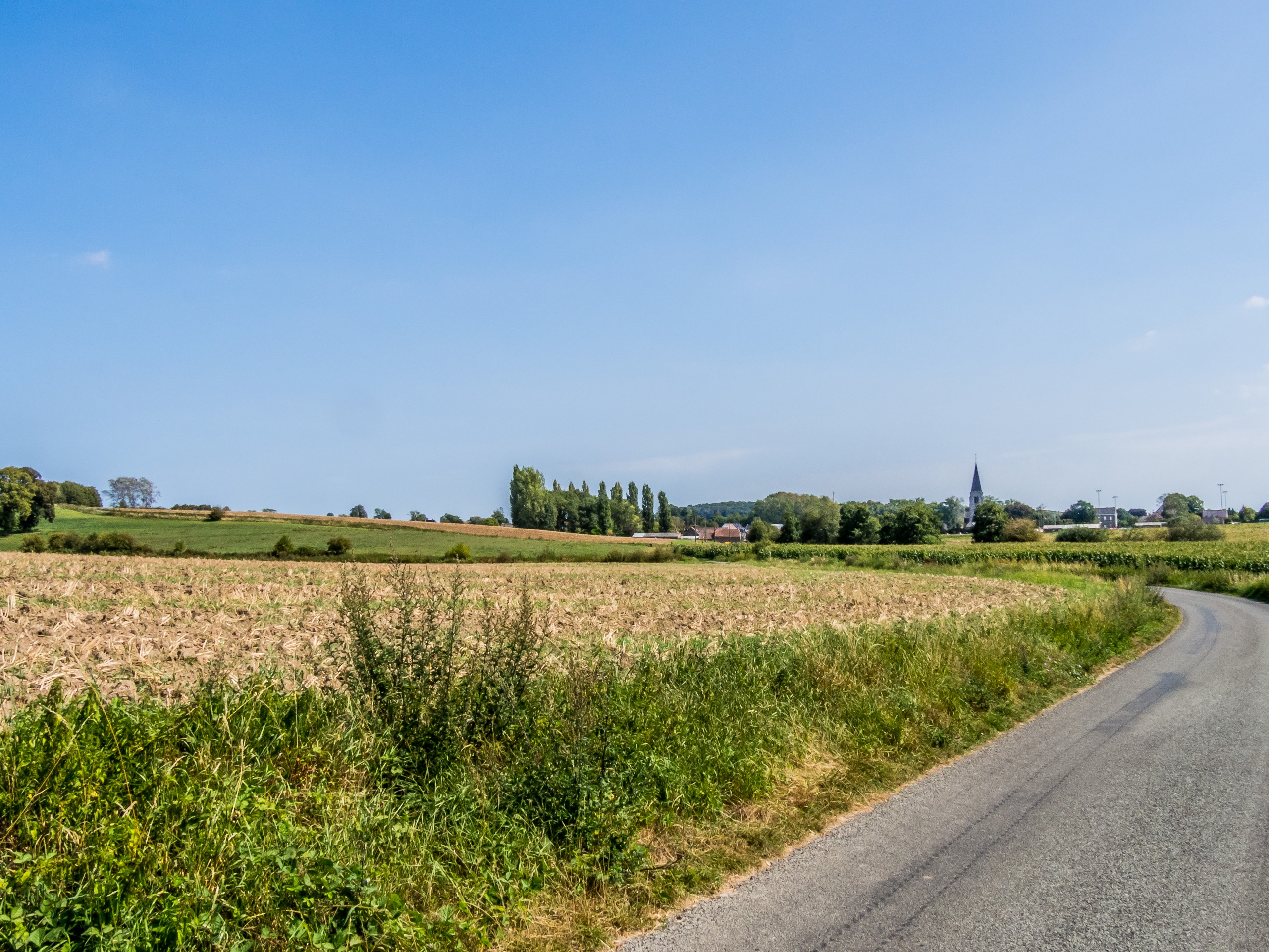 D’abord, il faut sortir d’une Tournai en travaux. Pour coller au plus près de l’expérience, je me rends à la piscine de l’Orient et prends un peu de temps pour décider de l’itinéraire. Il existe trois routes pour Bike & Beer : une longue, une moyenne et une courte. Le choix sera vite fait : ce sera la route moyenne qui traverse la campagne à l’aller et la courte au retour, qui se passe au fil de l’eau. Quelques minutes plus tard, j’ai quitté la grand route et me voilà pédalant au soleil à travers les doux paysages du tournaisis. Ici, les routes ne sont plus qu’à une voie, les voitures sont rares et on profite avec joie des prairies, des champs et des bocages : plaisirs simples ! De temps en temps, on traverse quelques villages. Rumilies, Havinnes, Beclers, Maulde, Barry s’égrènent au fur et à mesure des coups de pédale. Vous croiserez aussi ces fameuses petites chapelles si typiques de la région. Installées aux croisements des chemins, elles sont souvent construites à l’ombre d’arbres centenaires, souvent un chêne ou un châtaignier.
