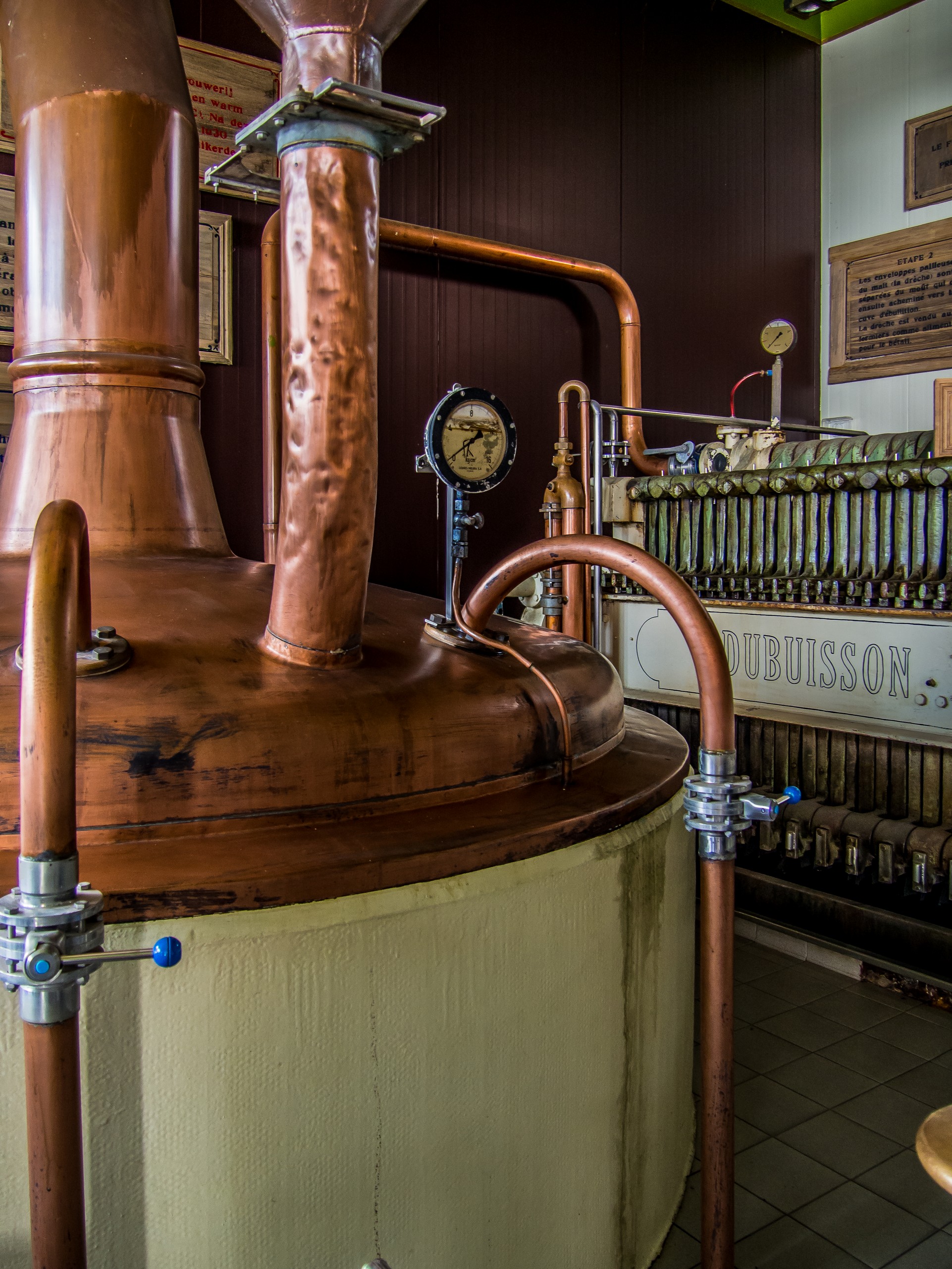 Encore quelques kilomètres et me voilà à Pipaix, village de la Brasserie Dubuisson. Loin de ressembler à un endroit industriel, on dirait plutôt une grande ferme perdue dans la campagne, c’est à l’intérieur que les choses se cachent ! La Brasserie Dubuisson, c’est la plus ancienne des brasseries familiales de Wallonie encore en exercice. Elle fête d’ailleurs cette année ses 250 ans ! Déjà, les aïeux du fondateur brassaient la bière sur le domaine de Ghissegnies dont le château se trouve de l’autre côté de la route. Ironie de l’histoire, la brasserie venait juste d’acheter le château lors de mon passage. La brasserie a survécu à la Révolution française, aux deux Guerres Mondiales et elle est connue pour produire les plus fortes des bières qu’on puisse trouver facilement (la Bush Caractère, la bière phare de la marque développée sur le goût anglais en vogue dans les années 30, titre à 12%).