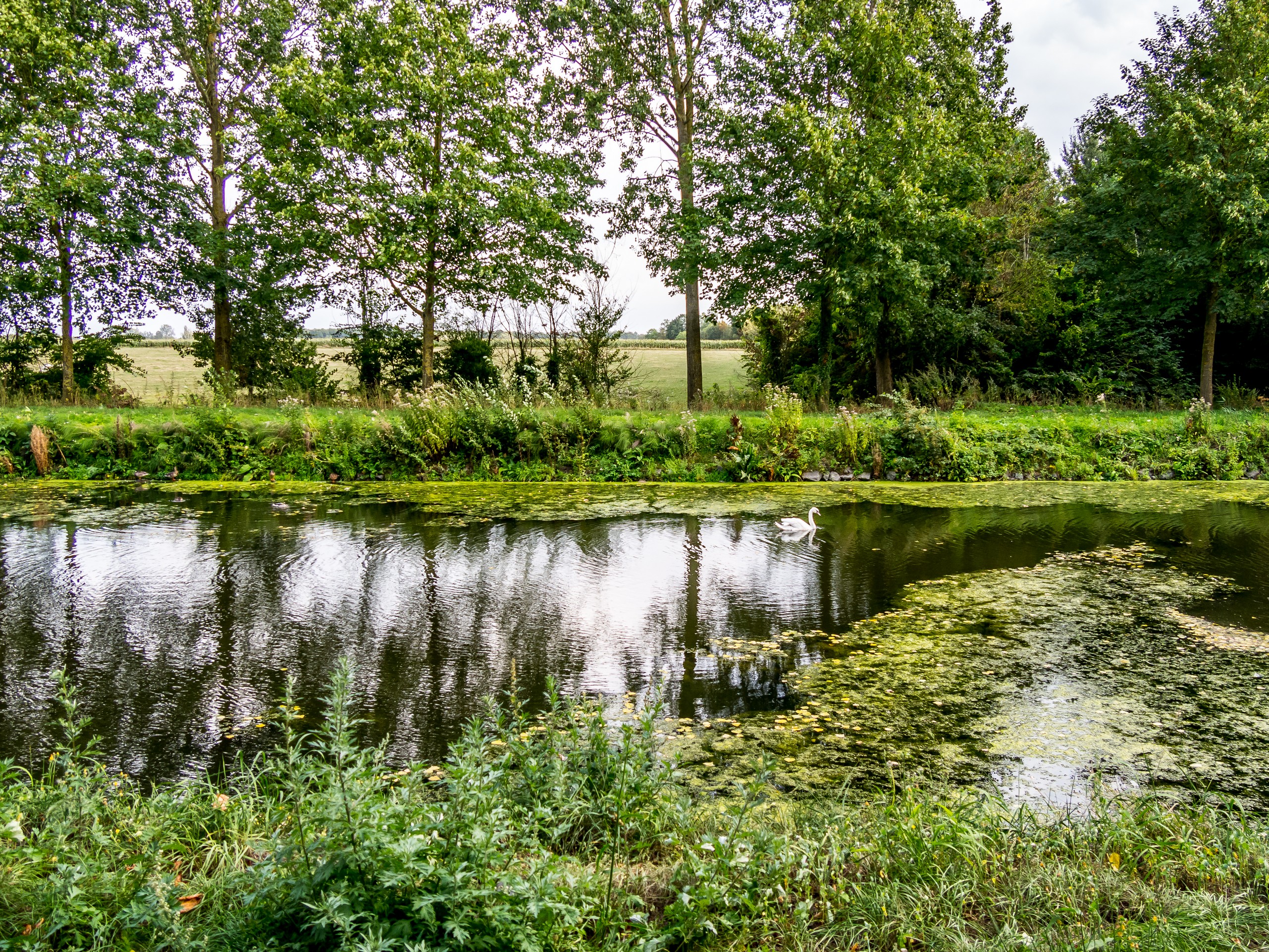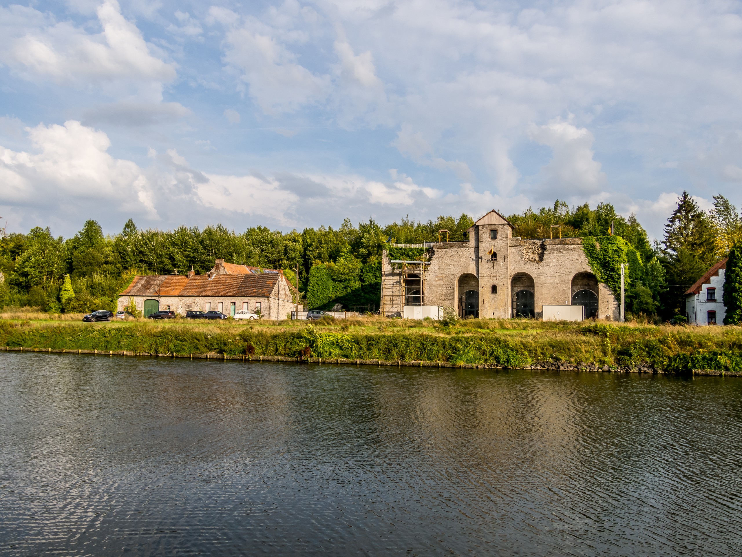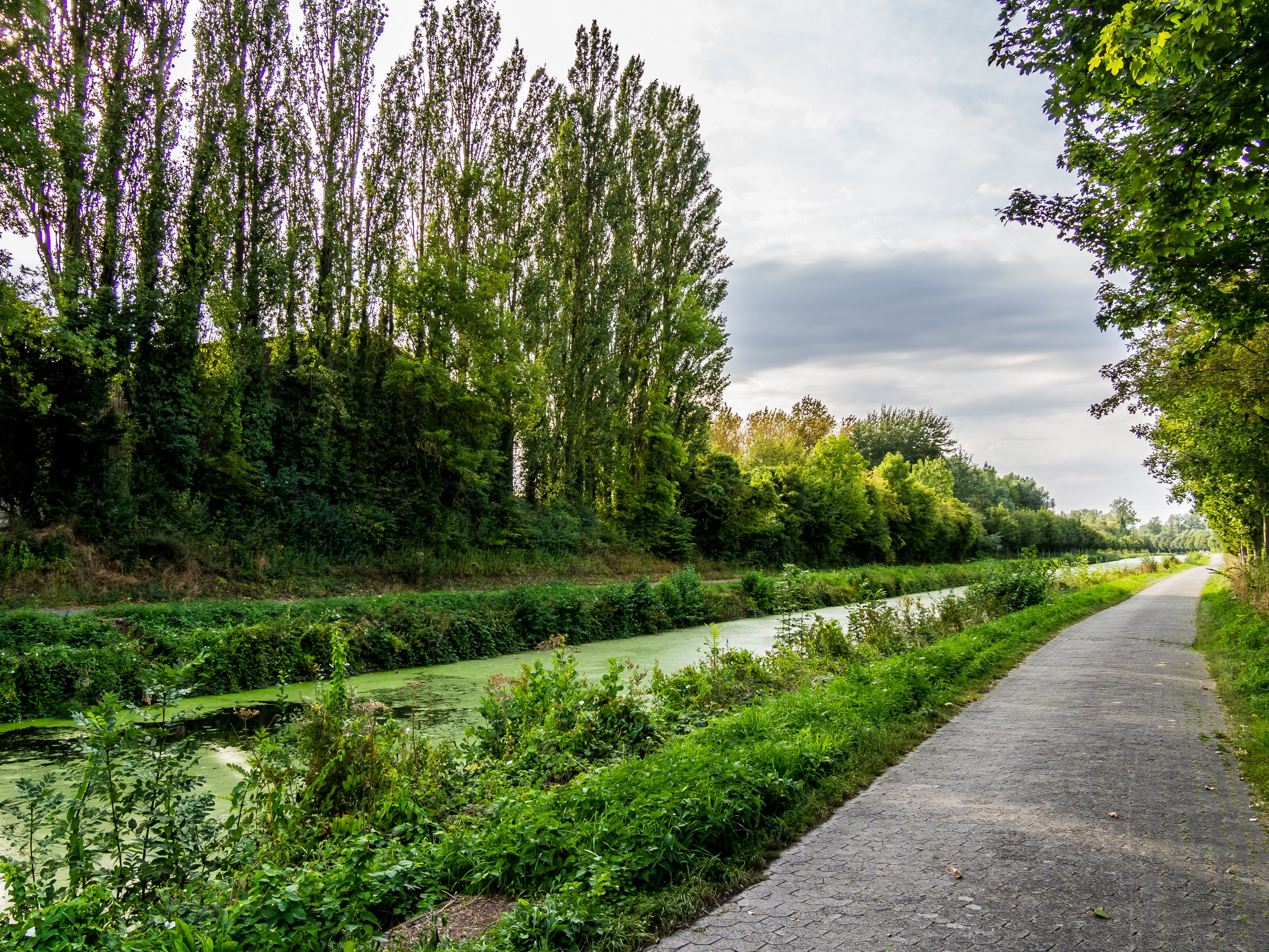C’est donc légèrement enivrée, avec un vent de face et une batterie quasi à plat que je reprends la route pour rejoindre Tournai avant 19h : c’est parti pour une course contre la montre ! Après un court morceau à travers la campagne, j’ai vite fait de rejoindre les bords de l’ancien canal de Pommeroeul-Antoing.