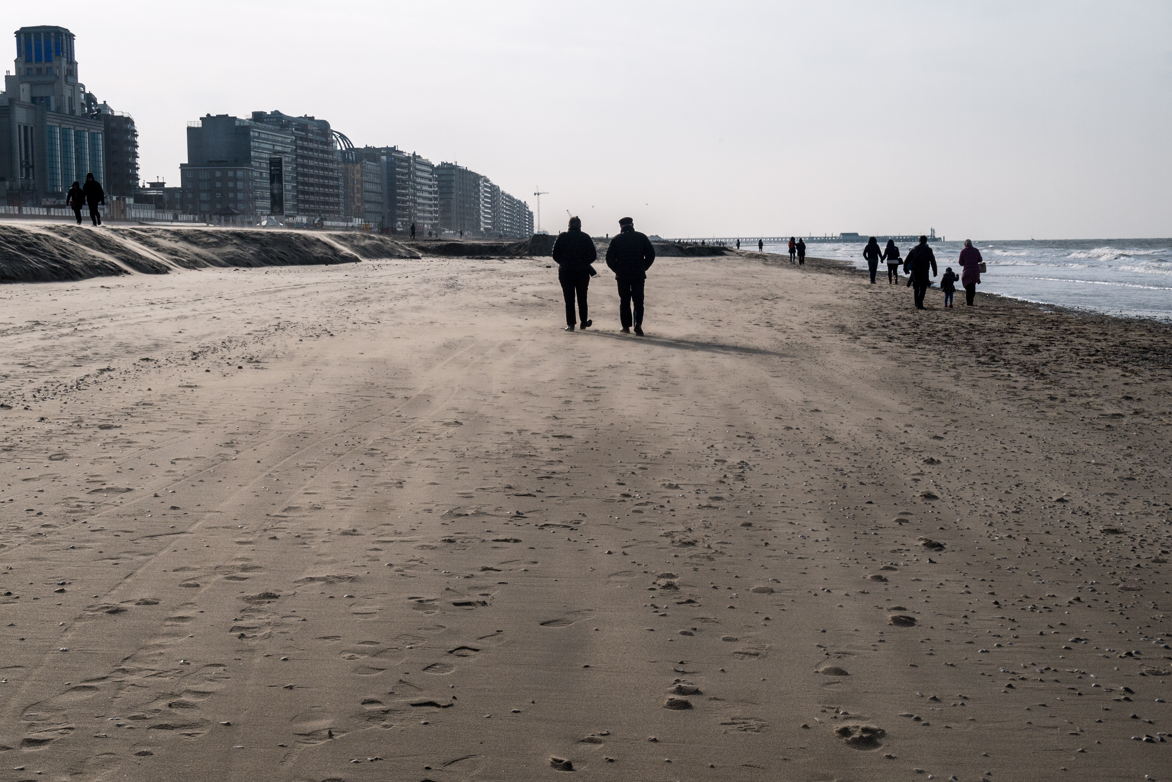 Je reprends ma promenade sur la digue. Une digue de la Côte belge en hiver est une des choses les plus mélancolique qu'on puisse voir. D'habitude, les boutiques, bistrots et salons de thé sont ouverts et animés et là... un commerce sur cinq doit être ouvert. C'est une longue suite silencieuse de portes closes.