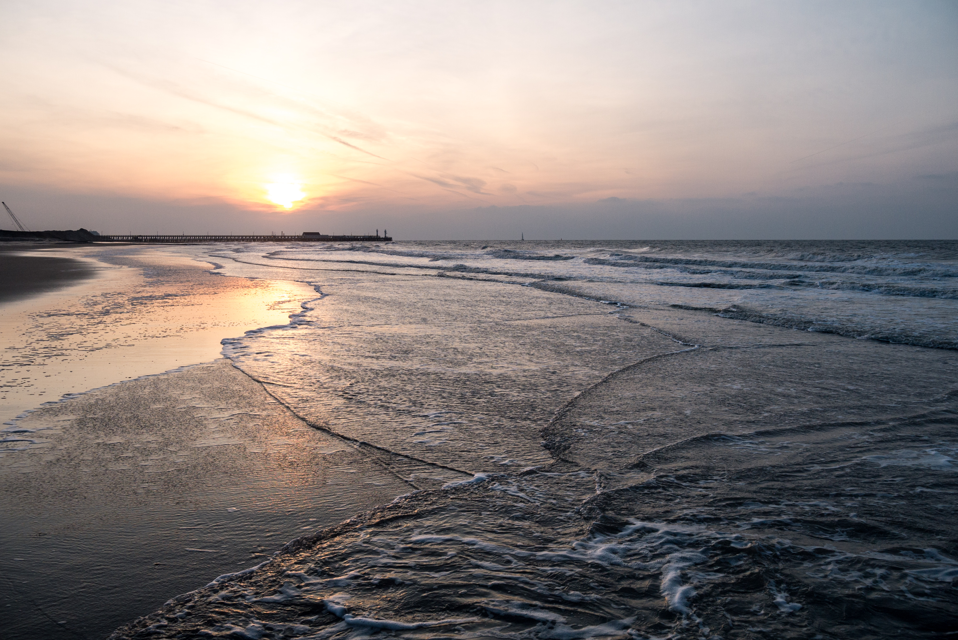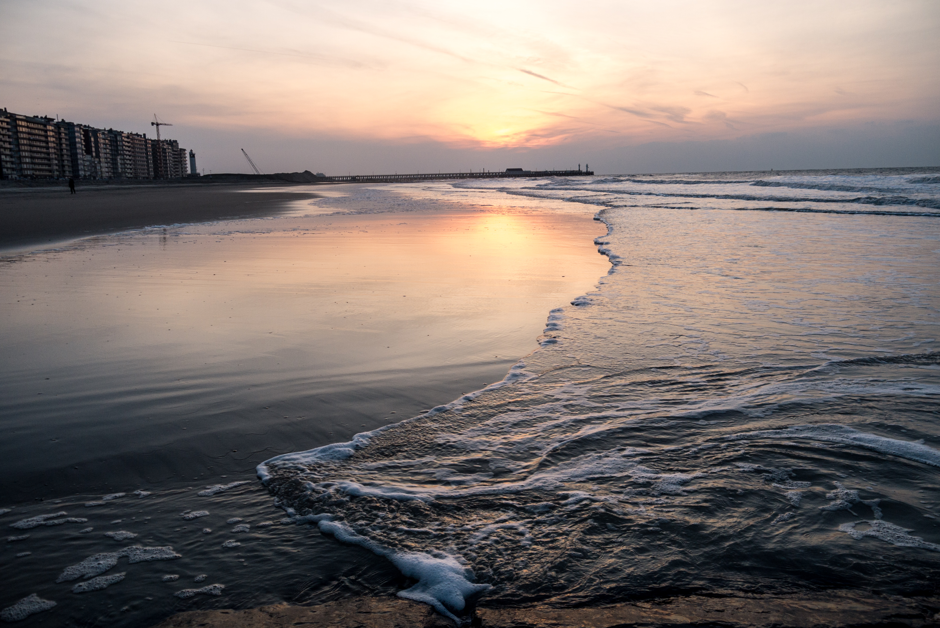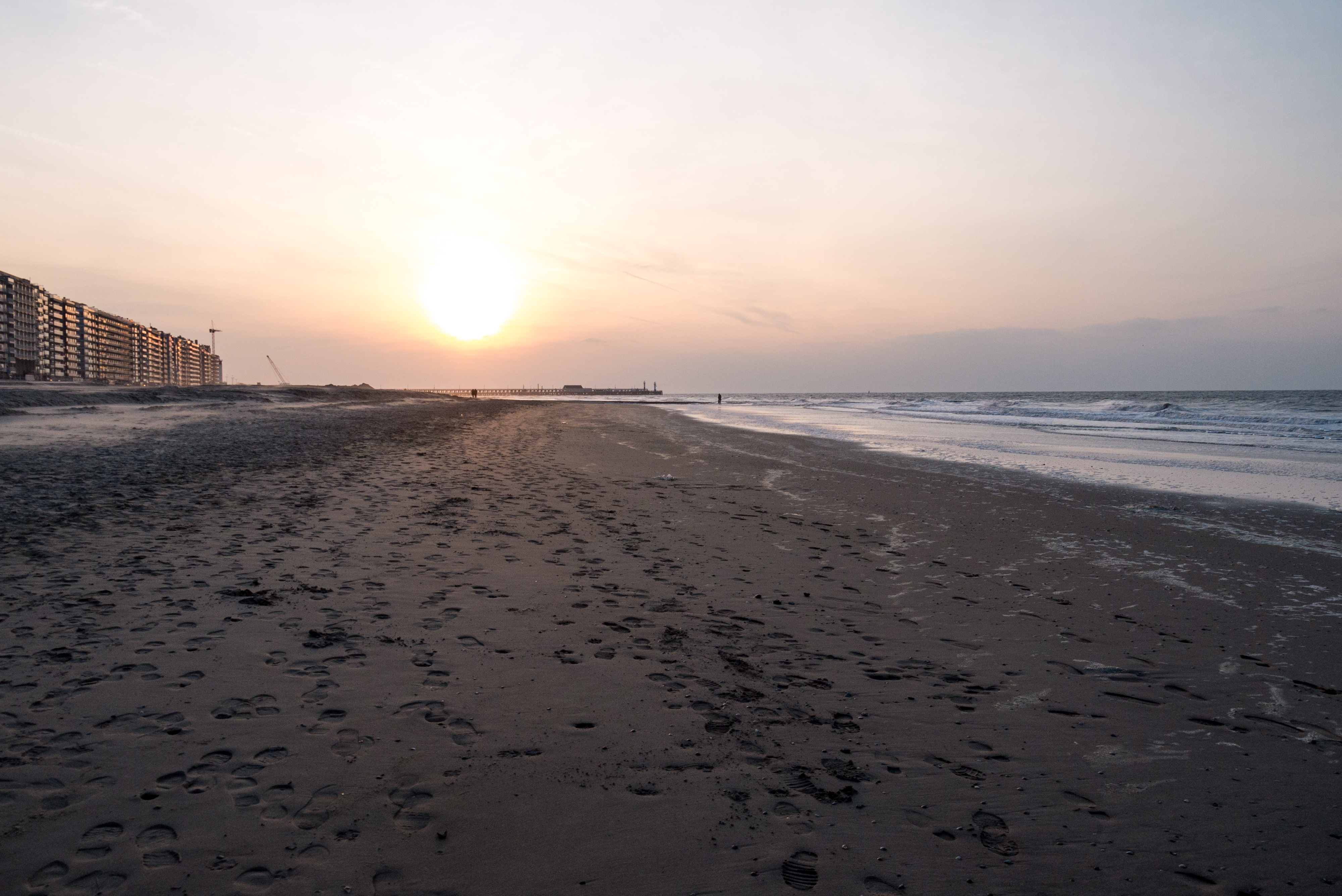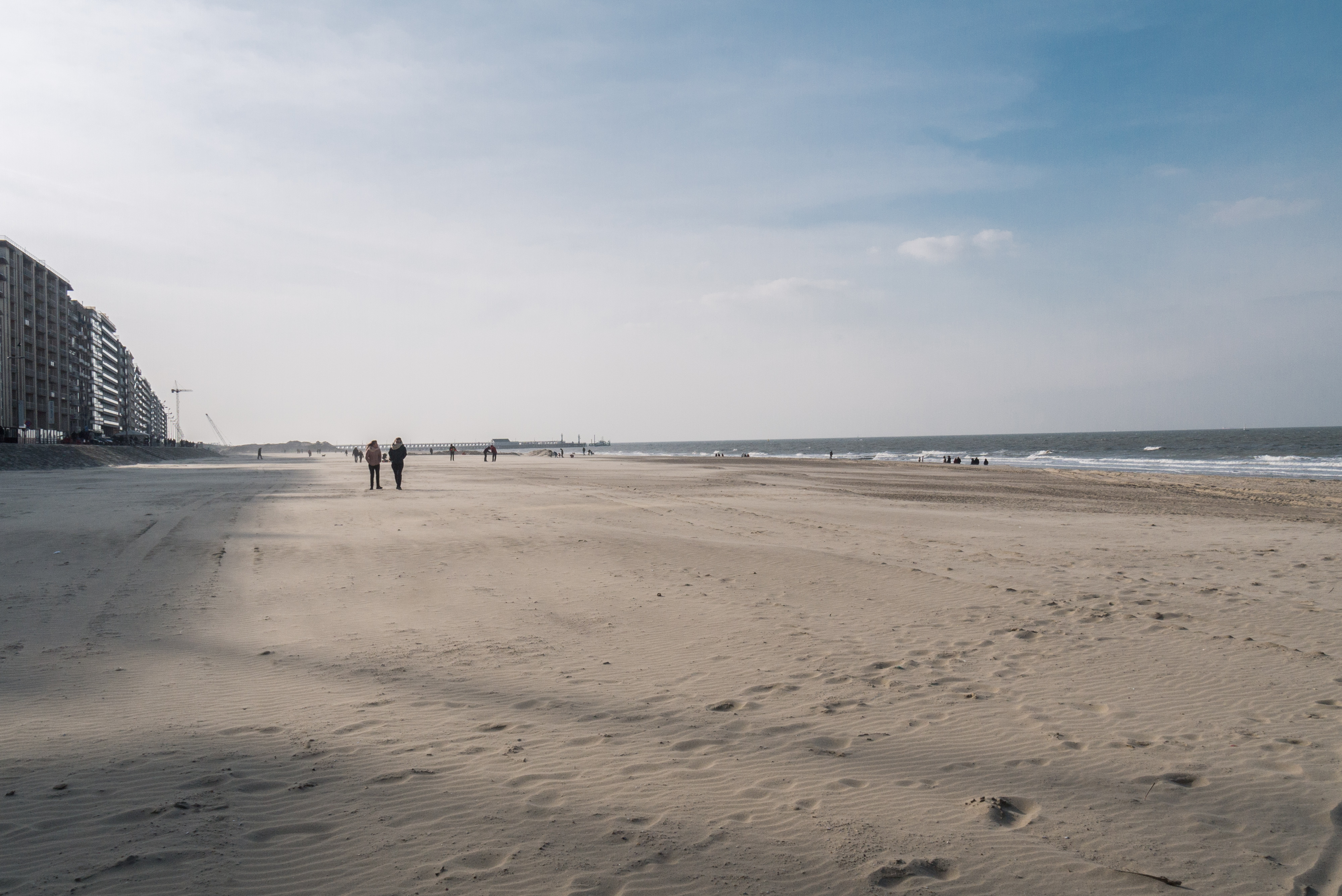 Je progresse lentement, les bottines dans le sable couleur café au lait, encore humide et dur du bord de l'eau, le dos au soleil. C'est le milieu de l'après-midi et un long coucher du soleil commence... Sur le paysage, il y a ce voile familier. Cette étrange lumière argentée qui vient tinter tout ce qui vous entoure. Les couleurs et les contrastes sont comme absorbés par cet étrange filtre, comme si on se baladait dans une photo Instagram avec filtre Ludwig. Comme si on marchait dans une espèce de rêve. Cela n'arrive qu'à la Mer du Nord !