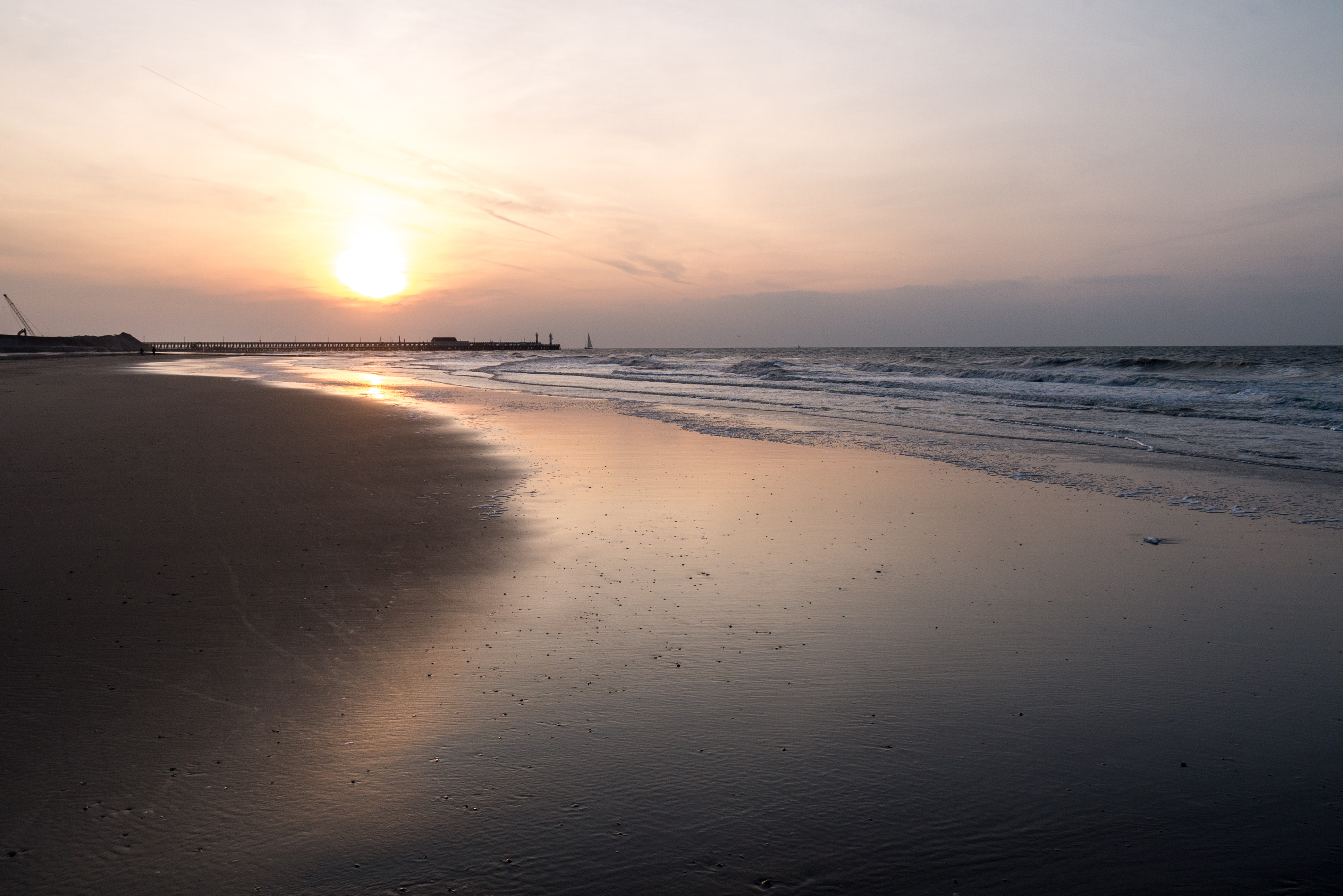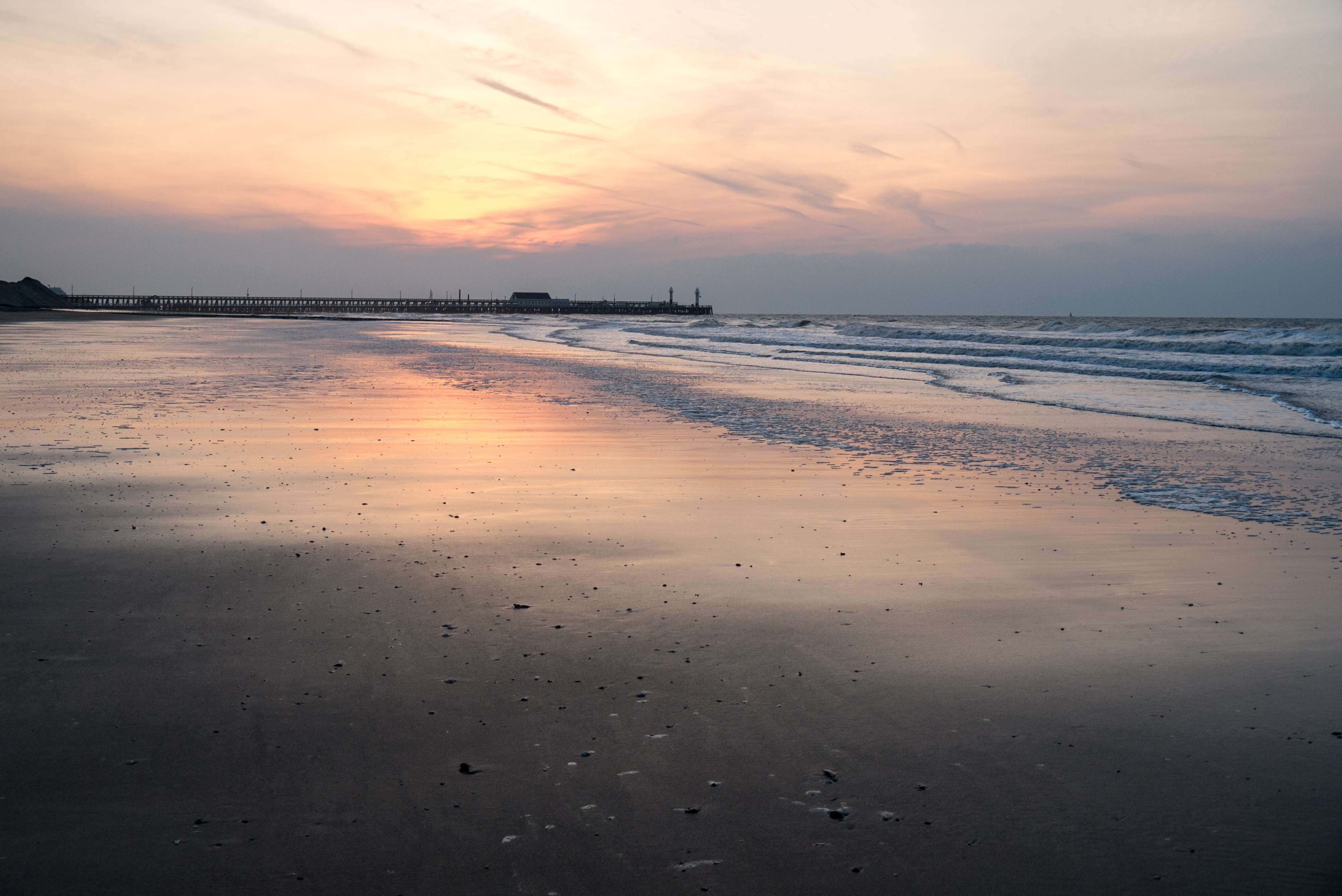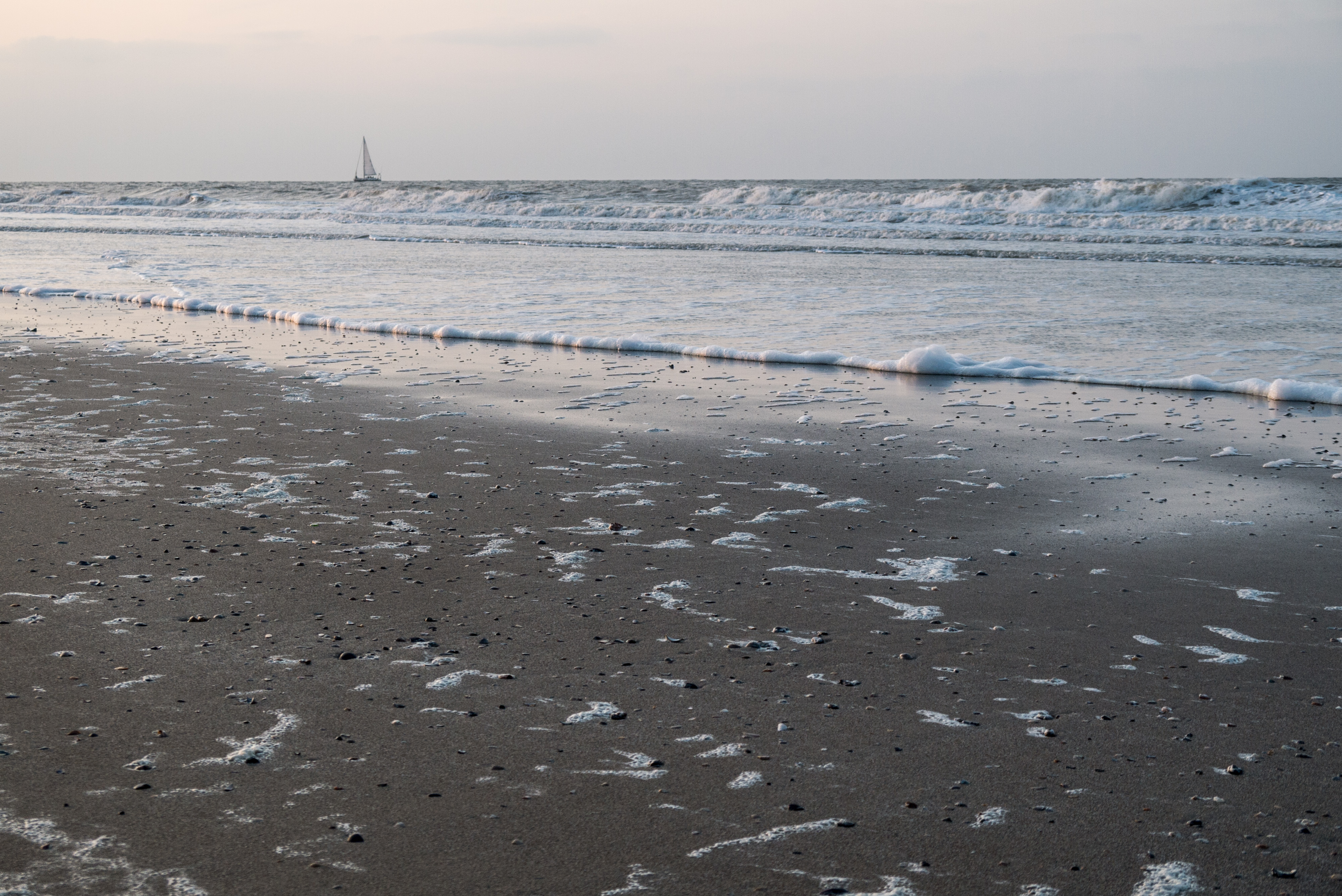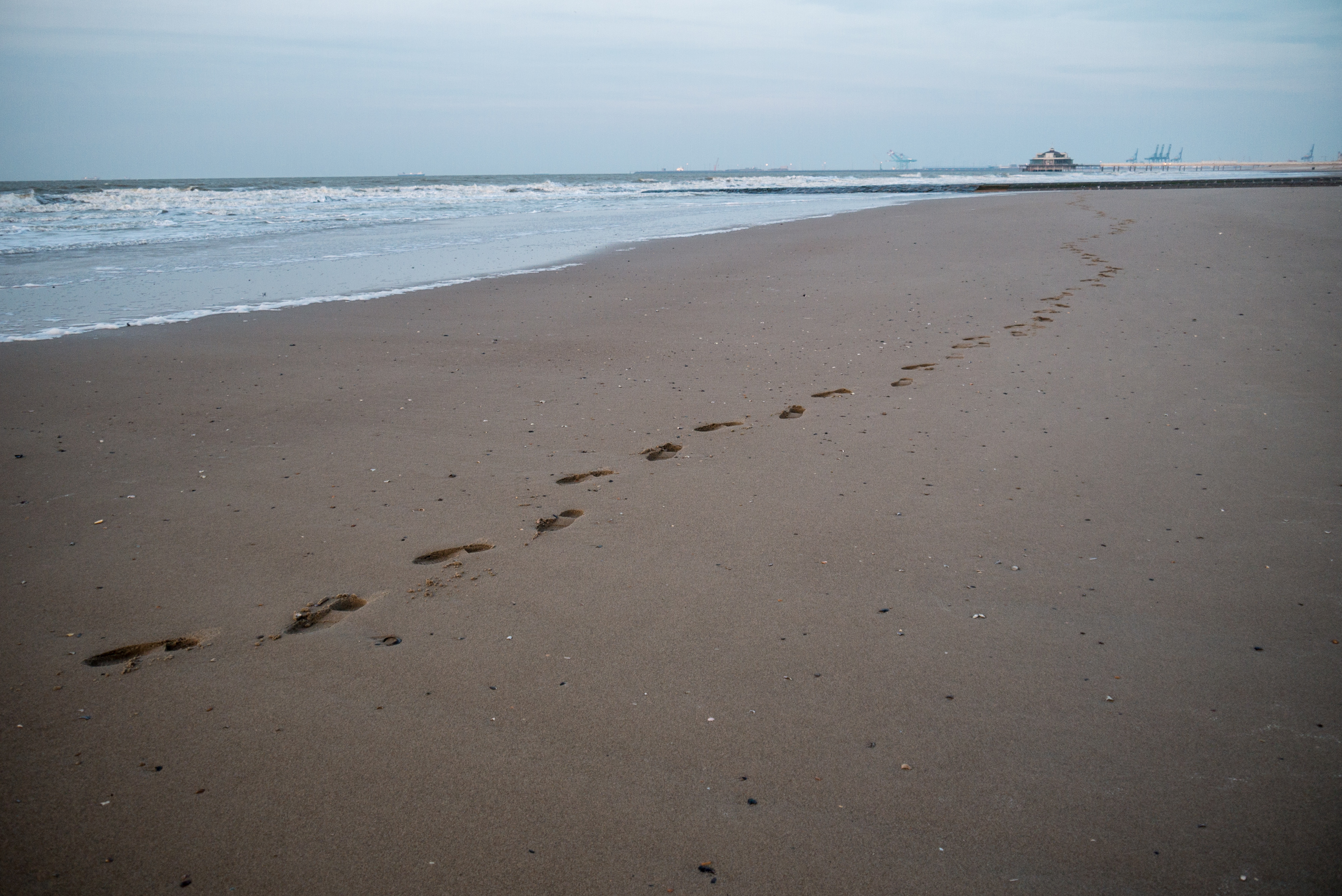 Je progresse lentement, les bottines dans le sable couleur café au lait, encore humide et dur du bord de l'eau, le dos au soleil. C'est le milieu de l'après-midi et un long coucher du soleil commence... Sur le paysage, il y a ce voile familier. Cette étrange lumière argentée qui vient tinter tout ce qui vous entoure. Les couleurs et les contrastes sont comme absorbés par cet étrange filtre, comme si on se baladait dans une photo Instagram avec filtre Ludwig. Comme si on marchait dans une espèce de rêve. Cela n'arrive qu'à la Mer du Nord !