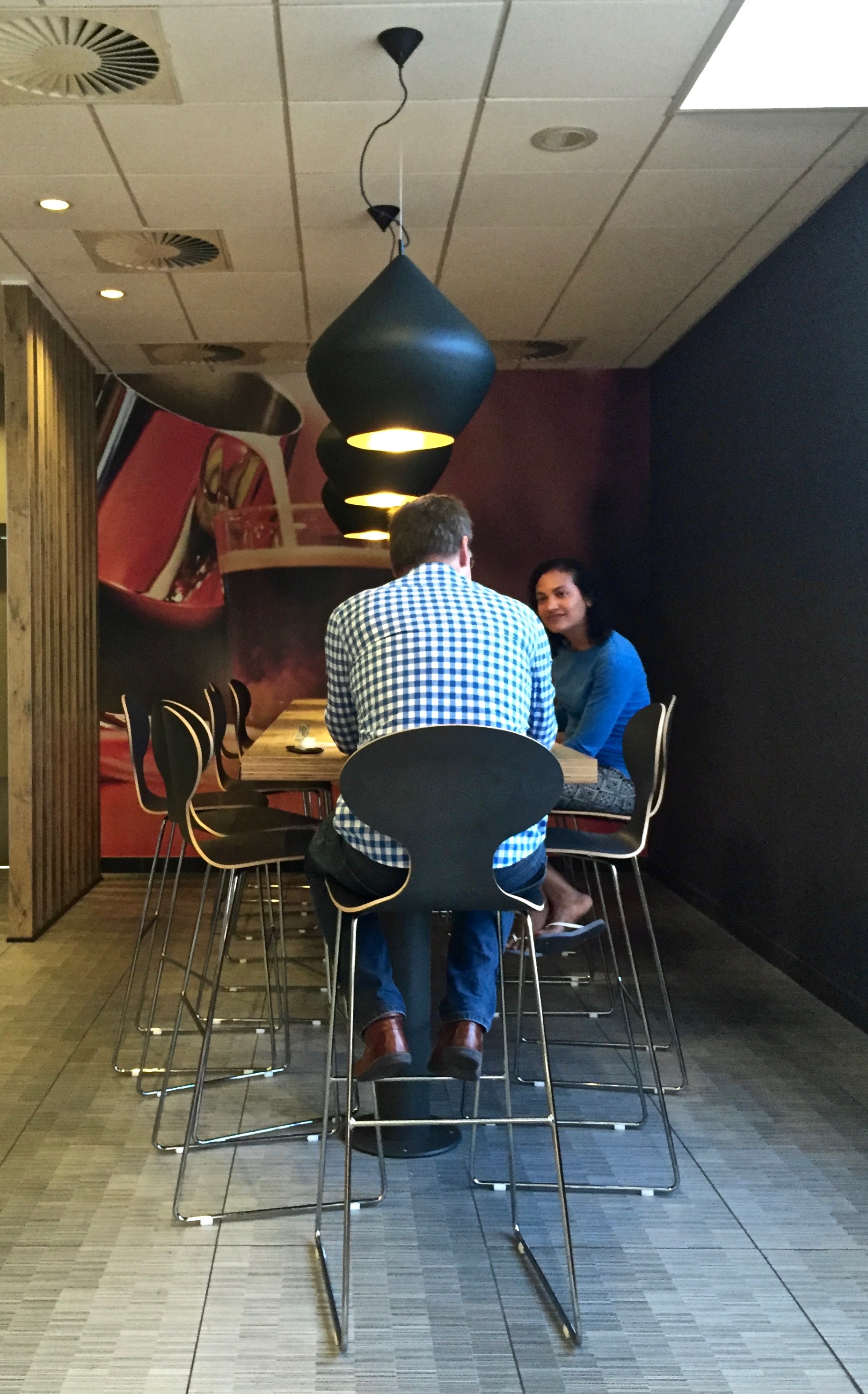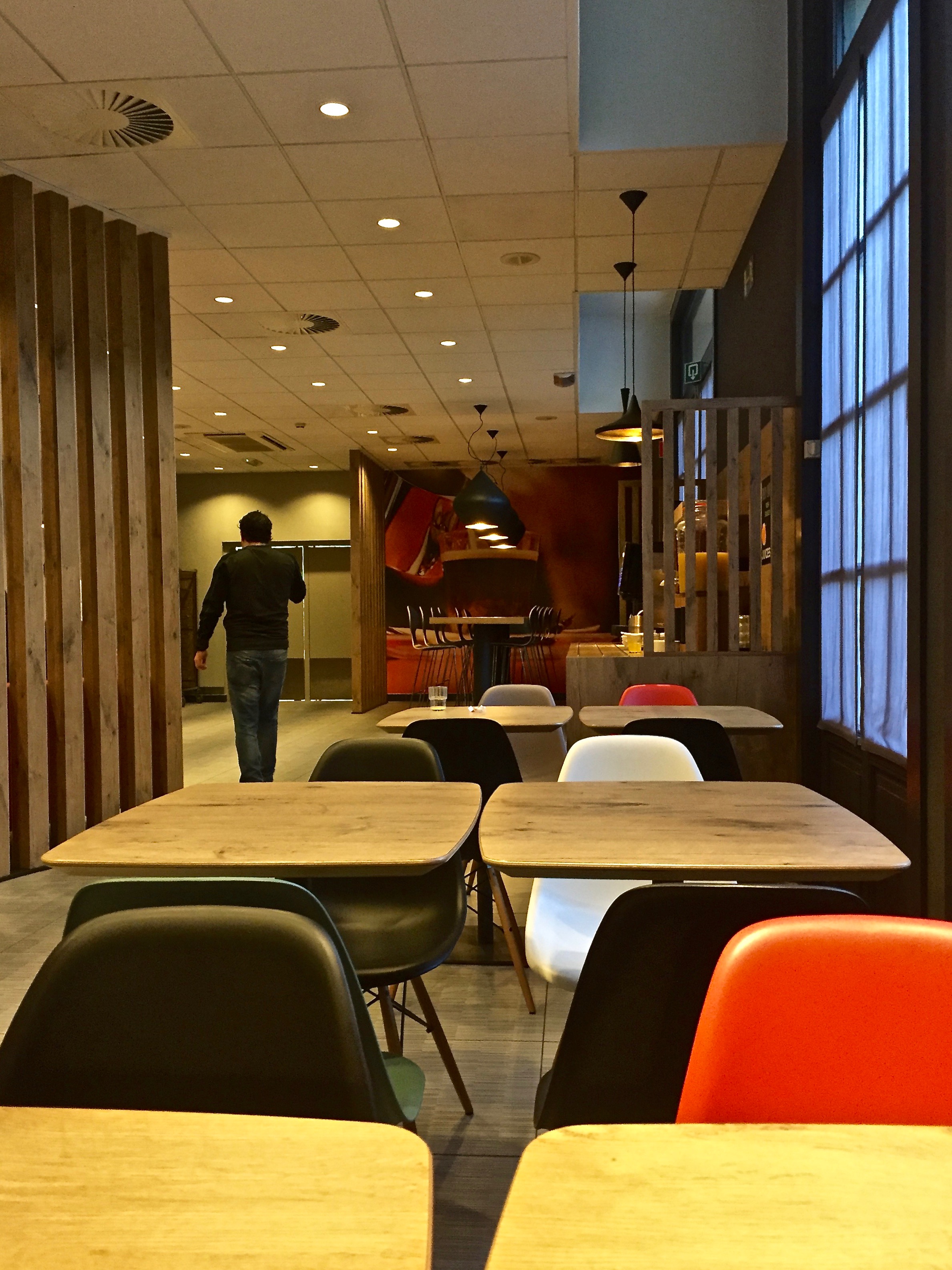 Mais avant les petits-déjeuner, il y a toujours les nuits qui précèdent : c’est à l’Ibis off Grand Place que nous allons passer la nuit. Comme tous les Ibis, les espaces communs de cet hôtel situé pile-poil entre la Gare centrale et la Grand-Place (difficile de faire mieux point de vue situation) ont été rénové dans le style urbain de la marque qui m’est désormais familière : béton ciré, accents vermillon, blanc et noir, bois… Côté chambre, on retrouve le fameux « SweetBed », qui ne m’a jamais fait défaut quand il s’agit de dormir mais elle aurait bien besoin d’un petit coup de jeune et semble avoir gardé le look des Ibis d’antant. J’imagine que ça ne saurait tarder. Par contre, la salle de bain et sa douche à l’italienne, bien que petite, est nickel et rien ne manque. Le petit plus de l’Ibis Grand Place, c’est sa brasserie. Avec la rénovation, elle détonne d’ailleurs un peu avec son style typiquement bruxellois de « stamcafé » : bois sombre, vieilles chaises et tables, un bel assortiment de bière.s.. Un chouette plus pour cet hôtel !
