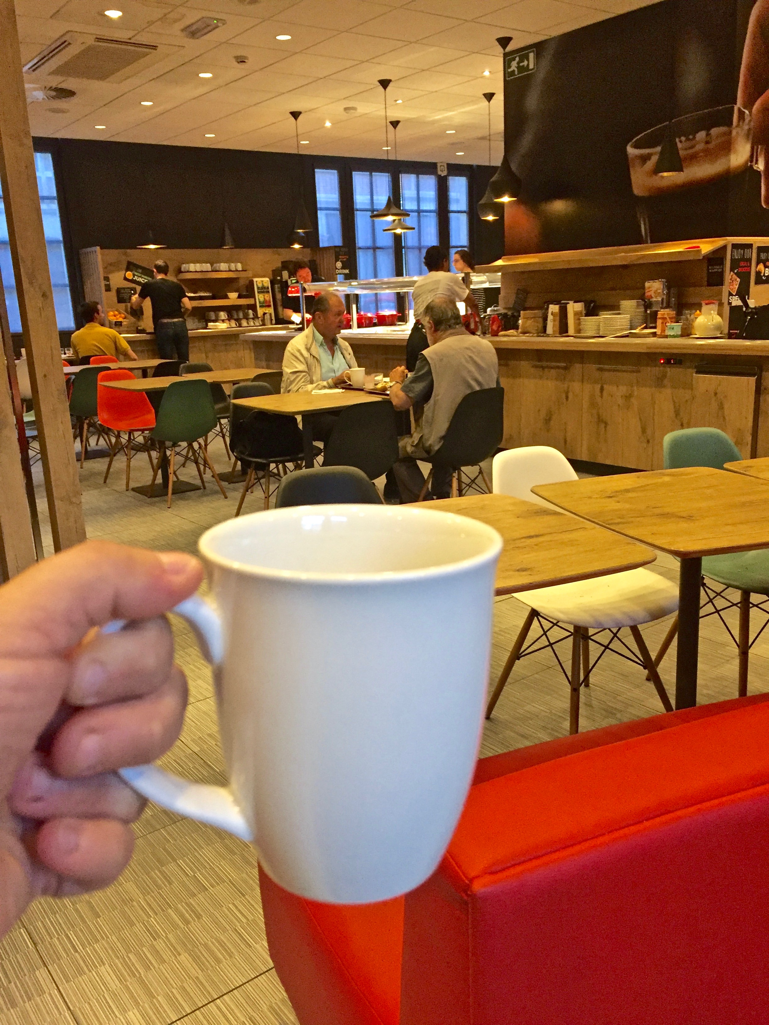 Levée aux aurores, c’est d’ailleurs dans la brasserie que va se tenir l’atelier sur « Comment bien démarrer sa journée ». J’y prêterais une oreille distraite… Tous ces conseils (prendre son temps, faire un bon petit-déjeuner mais sans exagérer sur les sucres et le gras, blah, blah…), je les ai déjà entendu et je demande comment les 12-15 points de la liste peuvent être appliqué, du moins hors week-end, alors qu’on essaie tous de maximiser notre temps de sommeil et que les journées sotn déjà assez courtes comme çà.