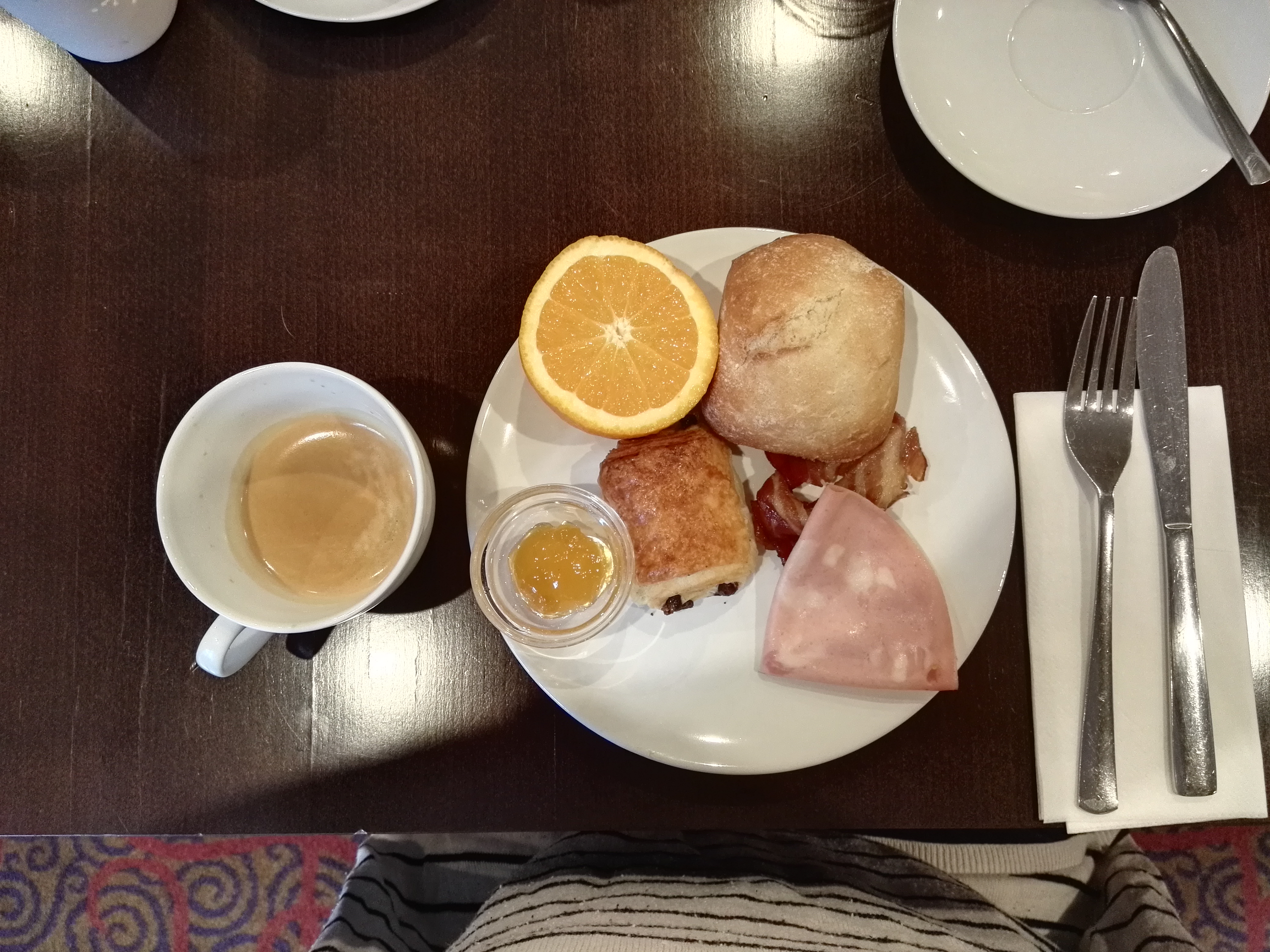Pour le petit-déjeuner, rien à redire. Il est correct et on y trouve de tout. Du chaud (des oeufs, du bacon), du froid (viennoiseries, fromages et charcuterie...) et, on peut se faire un jus d'orange pressé soi-même, ce qui est plutôt sympa! De quoi faire le plein avant de reprendre le chemin de mon appart', à seulement une petit quart d'heure à pied... mais dans une ville dense comme Bruxelles, ça pourrait tout autant être des années lumières.