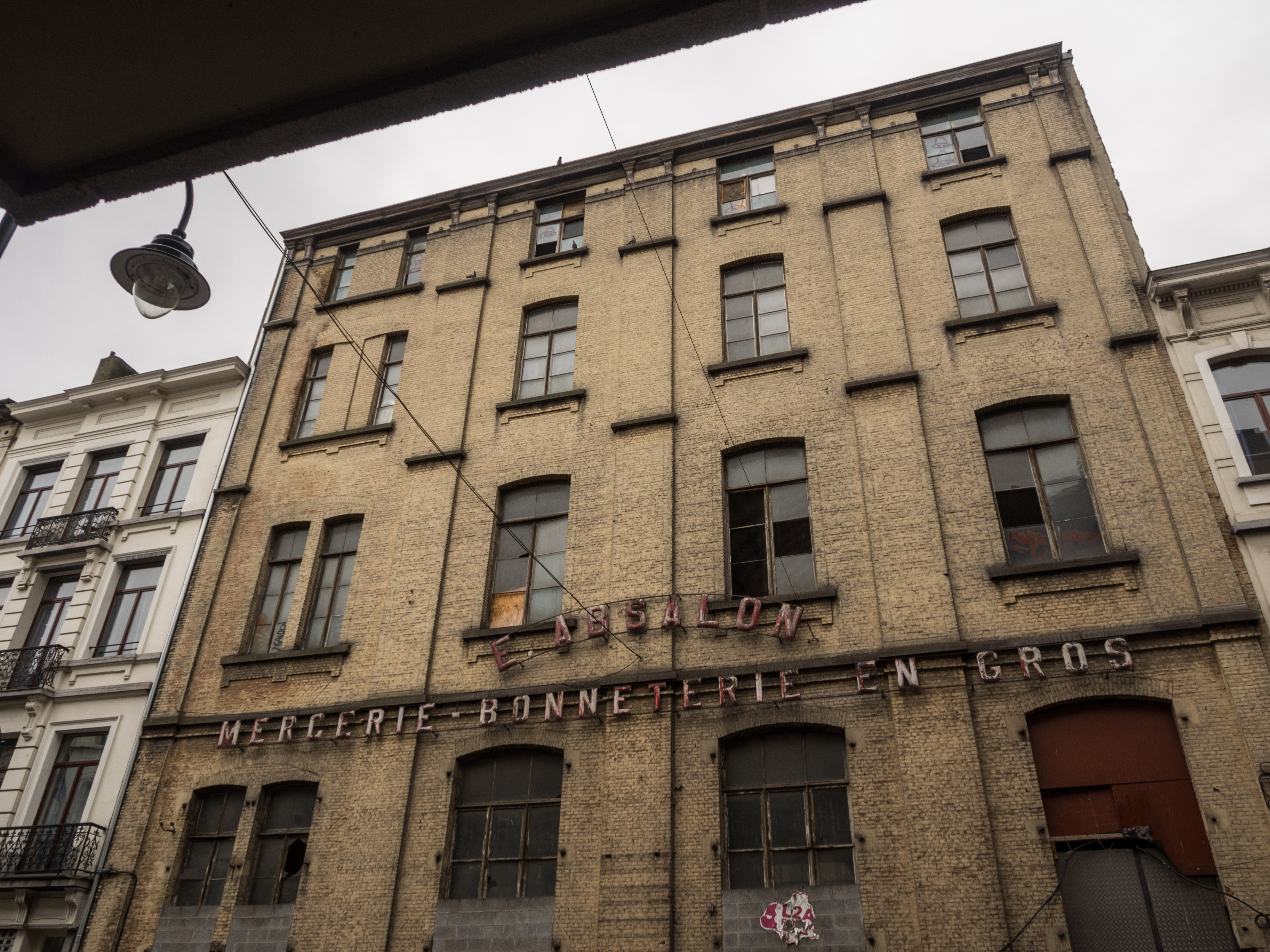 En prenant la rue des Fabriques, on arrive dans un Bruxelles industriel. Difficile d'imaginer que la Grand-Place est à 10 minutes à pieds seulement et pourtant... les grands bâtiments, dont certains sont transformés en loft, témoignent du passé de manufactures du quartier. Il y avait même une fonderie de plomb dont ont peu encore voir la tour. C'est un plaisir de s'y promener hors de sentier battus. Il y a de fortes chances pour que vous soyez tous seuls, à par les résidents du quartiers! J'aime y faire un tour de temps en temps pour voir comment les choses évoluent. Pour le moment, il semble que ce soit largement le résidentiel qui s'y installe. Et quelques galeries d'art et entreprises, puisque les volumes sont grands.