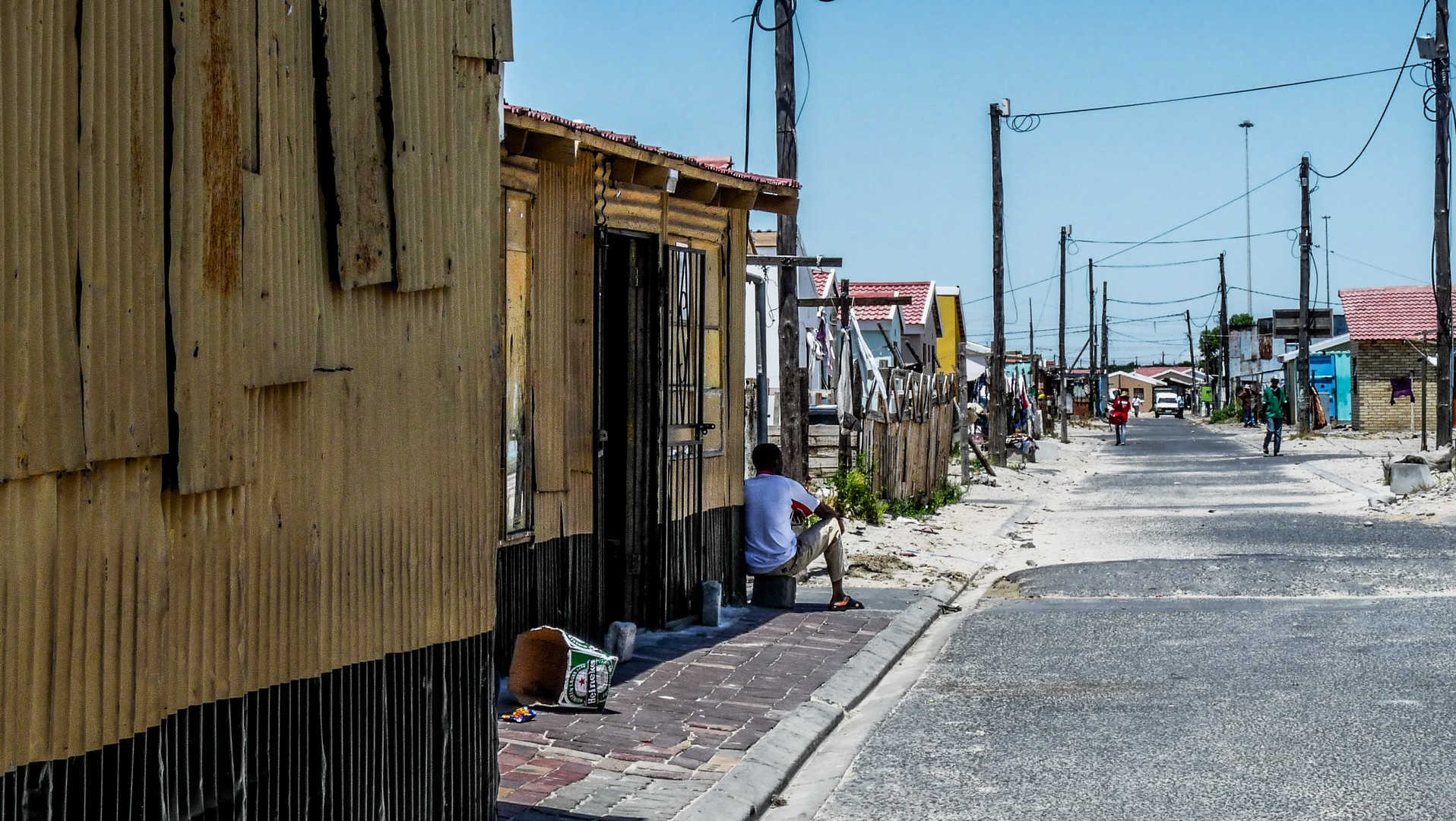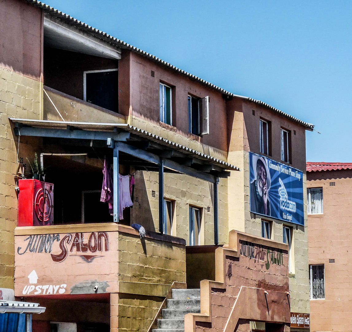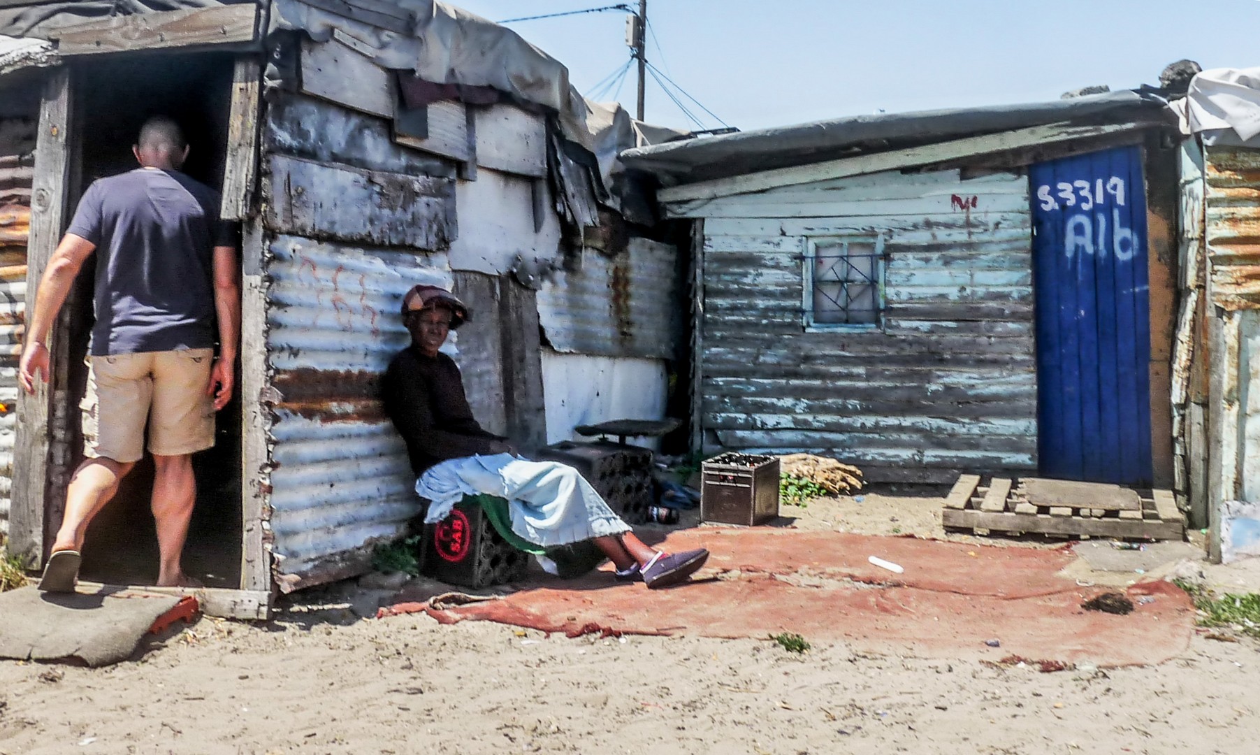 Ici, c’est le règne de la débrouille. Ceux qui n’ont pas d’emploi en inventent. Nous allons d’ailleurs rencontrer une entrepreneuse mais en chemin, on va boire un coup dans un shebeen. Du temps de l’apartheid, les Noirs n’avaient pas le droit de boire de l’alcool. Des « bars » illégaux appelés « shebeens » se sont ouverts dans des baraques d’apparence anodines et l’on y servait de la bière de sorgo faite maison. C’est à notre tour de l’essayer. Nous entrons dans une petite construction dont seule la porte laisse entrer la lumière. Dans le fond, une dame à l’âge indéfinissable est penchée sur une espèce de marmite. La dame remplit une énorme boite de fer d’un liquide mousseux qui se boit à même le récipient. Le goût en est en même temps sucré avec une légère amertume. Pas mauvais… mais pas spécialement bon non plus. Dans le noir, je la vois sourire.