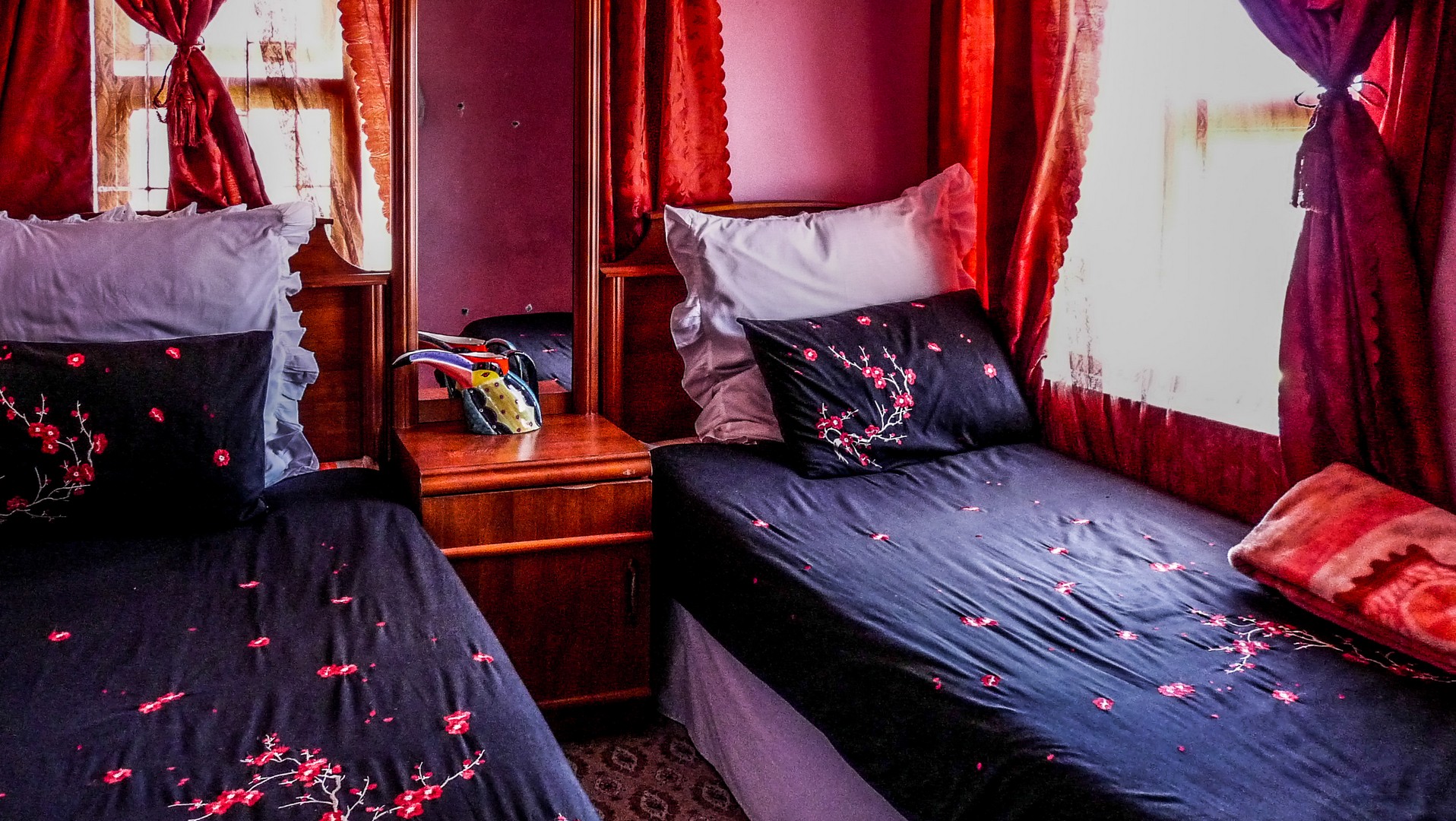 Nous quittons le shebeen pour nous rendre chez Miss Vicky. Miss Vicky est la propriétaire du plus petit Bed&Breakfast d’Afrique du Sud. Comme toutes les maisons des townships, le B&B est fait de bois et de tôles, sauf qu’il a un étage. L’intérieur est étonnement spacieux! Miss Vicky et son mari y accueille les visiteurs et les prennent en charge pendant leurs séjours. Elle nous invite à visiter les chambres. Elles sont impeccables avec leurs literies aux couleurs vives! Son B&B a eu droit à un coup de flash médiatique lorsque de nombreux supporters de foot sans logement lors de la coupe du monde y ont été dirigés. Une fierté pour sa propriétaire et pour Khayelitsha! Mais Miss Vicky sait aussi que sa réussite doit aussi profiter à sa communauté et elle est impliquée dans un projet éducatif.