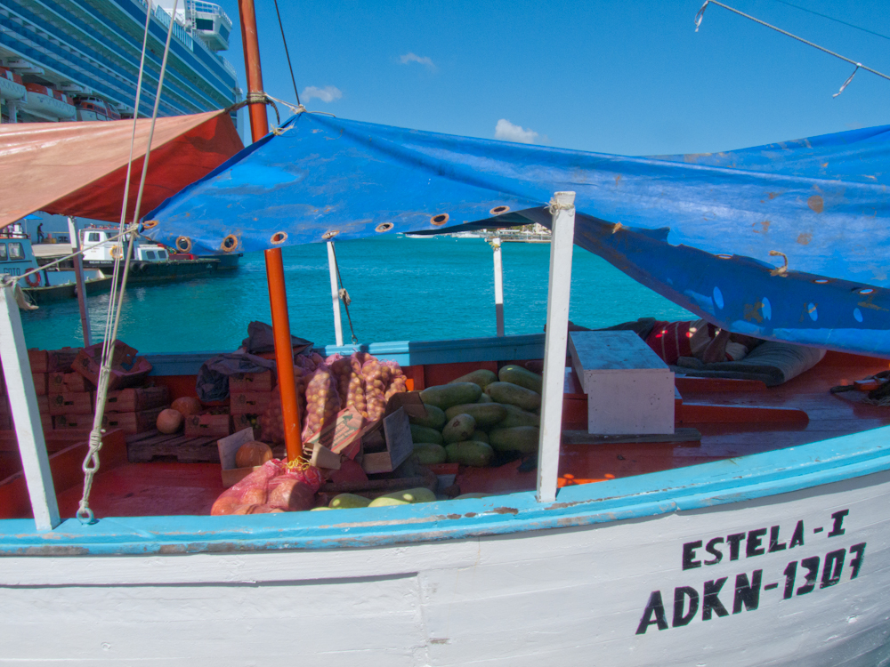Lorsque je pose le pied sur l’île, ce n’est pas seulement la chaleur qui me signale que nous sommes à un jet de pierre de l’Amérique latine… Les visages de Bonaire me disent qu’il y a une bonne partie de la population originaire du continent. Juste à côté du Ruby Princess, un petit bateau chargé de fruits et immatriculé au Venezuela attend paisiblement qu’on vienne le décharger. Ce n’est pas seulement la population qui est plus fortement métissée que dans les Caraïbes britanniques ou françaises… le langage aussi s’est crée d’un grand brassage entre le portugais, l’espagnol, le néerlandais, l’anglais,les langues africaines et le français : c’est le papiamento, qu’on ne parle que dans ces îles du sud.
