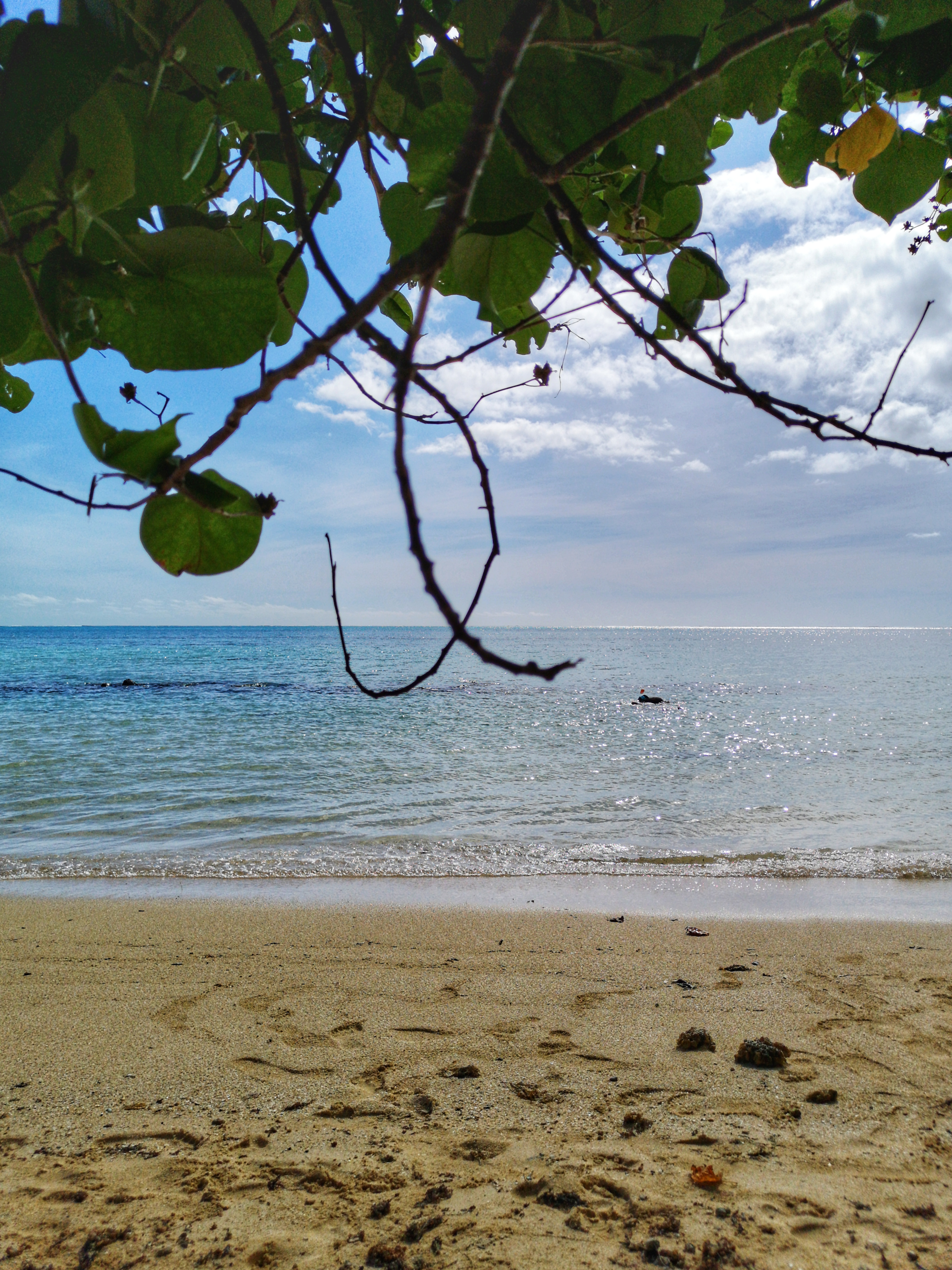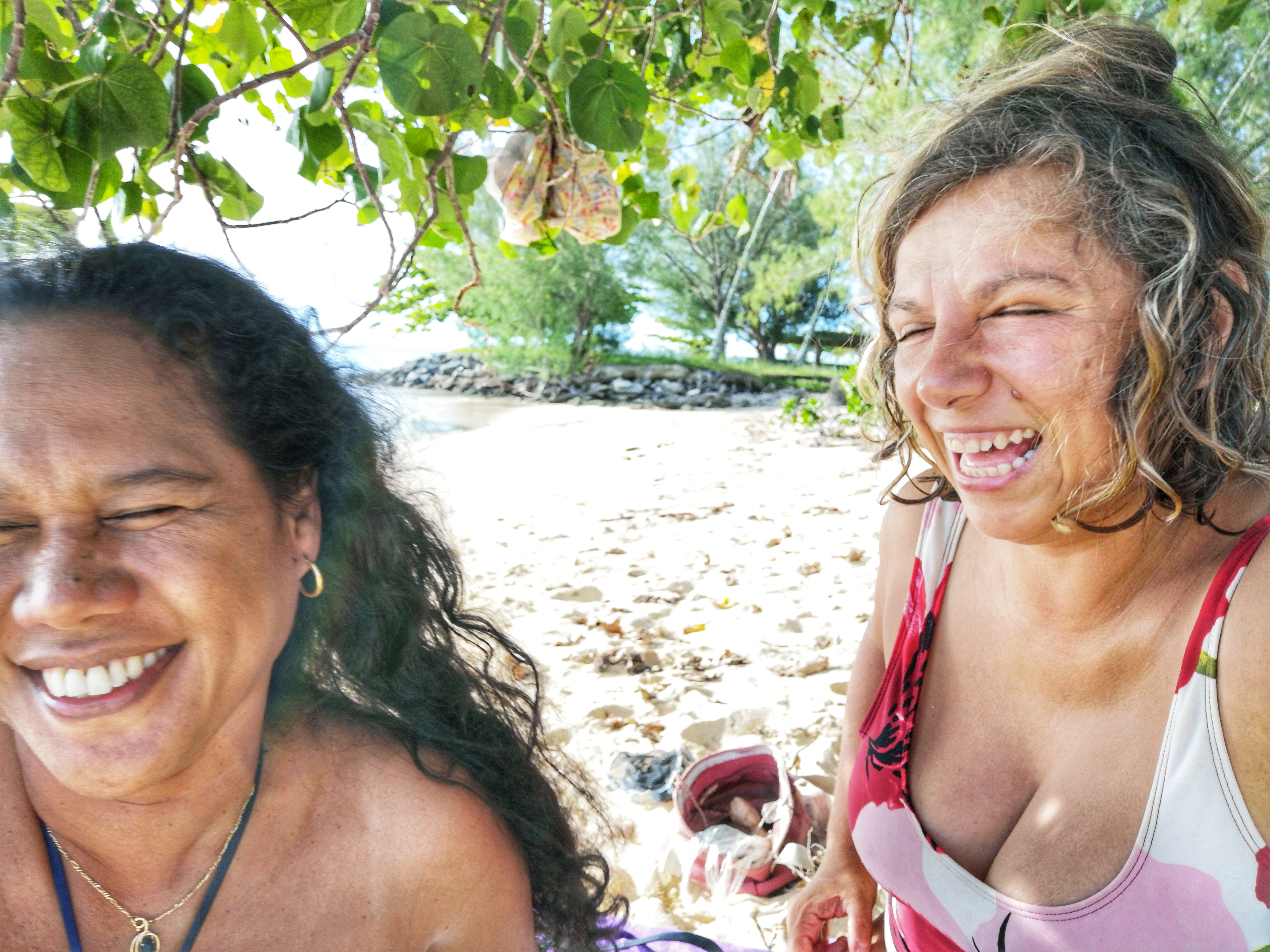 Here ne tarde pas à aller voir les voisins pour s’enquérir des dernières nouvelles. Finalement épuisée par les pleurs et la fatigue, la dame a fini par s’endormir. Ses autres enfants, qui habitent dans d’autres îles, dont Tahiti, seront là demain soir et c’est chez Rodrigue et Here qu’ils viendront séjourner alors que nous quitterons leur maison le matin même. La question ne s’est même pas posée pour eux, recevoir la famille de voisins à la dernière minute, c’est tout naturel ! Je reste admirative devant cette solidarité. Je vais même y apporter ma petite contribution. « Ce qui lui fait le plus de peine, nous dit Here, c’est d’avoir perdu la photo de son mari avec son écharpe de maire ». Car oui, c’est la veuve de l’ancien maire de Tubuai. Peut-être que les archives de la mairie ont un exemplaire ? Le négatif ? Ou c’est le photographe qui a pris le cliché qui l’a gardé ? Mes suggestions sont prises en compte mais Here réalise du coup qu’il a plein de choses à faire et nous chasse littéralement de la maison pour que nous allions nous amuser, Noho et moi. Stéphane ayant l’intention de se reposer, nous prenons la voiture pour passer la fin de l’après-midi sur la plage, une dernière fois.
