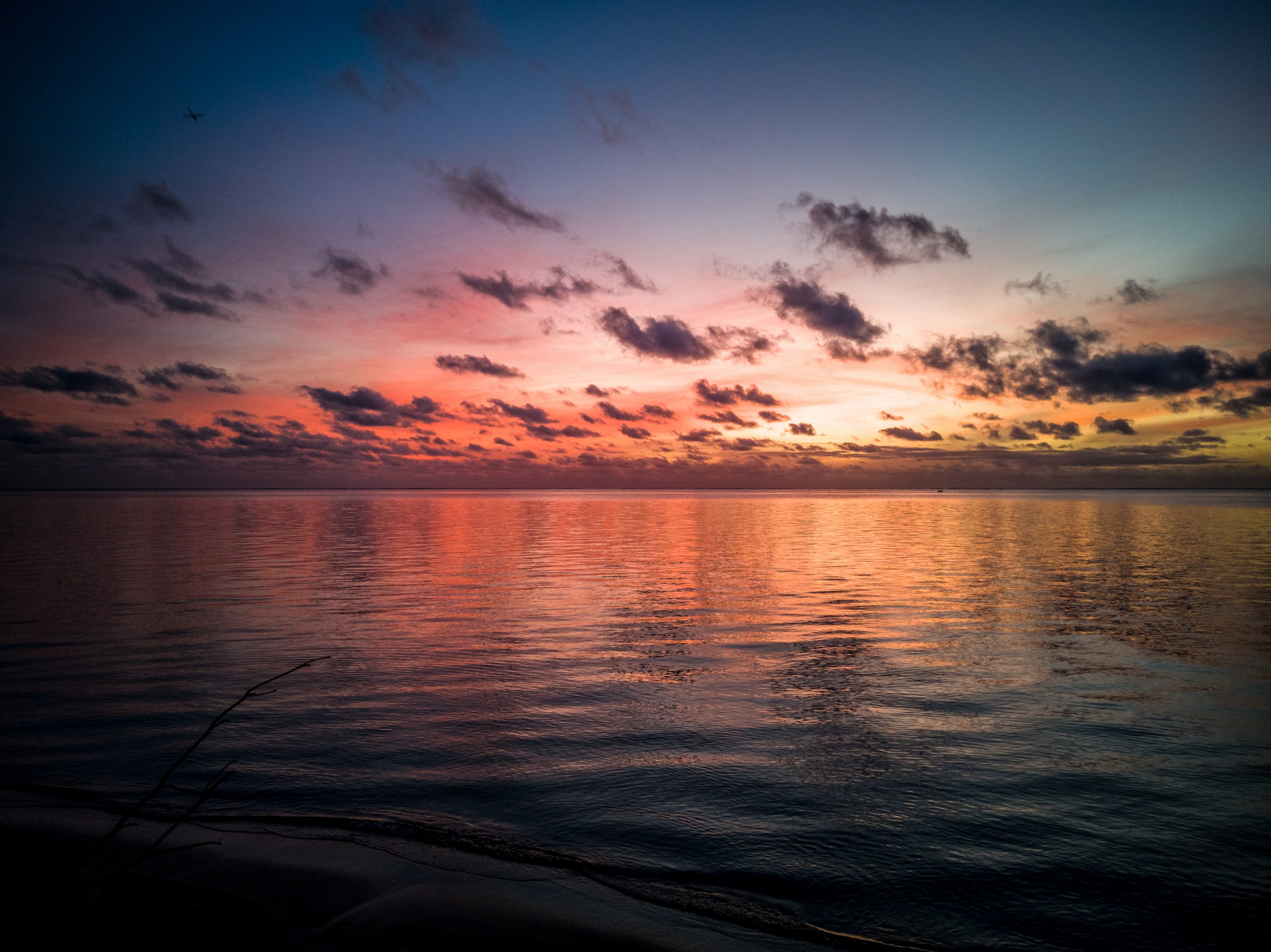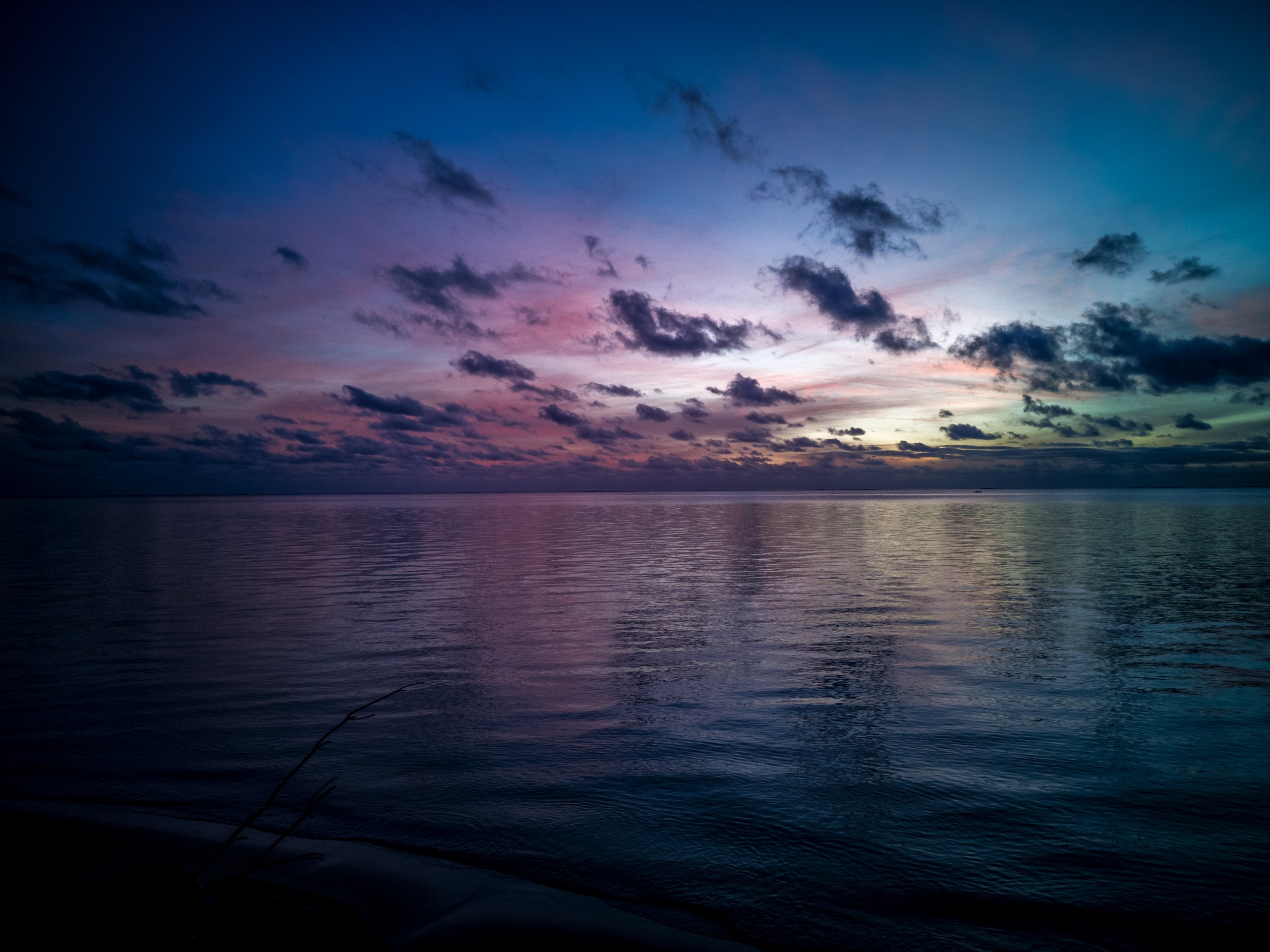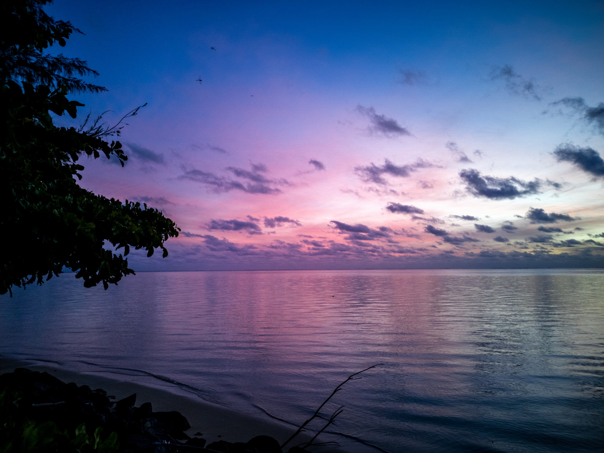 Ce mardi matin, je me suis levée aux aurores, à 5h30 et ai enfourché le vélo pour filer vers la supérette et acheter de quoi faire un bon petit déjeuner. Dans les petites îles de Polynésie, on se lève tôt et on se couche tôt, pas étonnant de voir un magasin ouvert dès l’aube. Dans l’air frais du matin, l’esprit encore un peu brumeux, je pédale et profite du calme. Le soleil n’est pas encore complètement levé et Tubuai est plongée dans la lueur bleue du matin. Quand je roule à côté de la plage, c’est à peine si l’on entend le bruit des vagues sur le sable. Si je ne devais pas me dépêcher de rentrer, j’en aurai profiter pour faire un petit plongeon.
