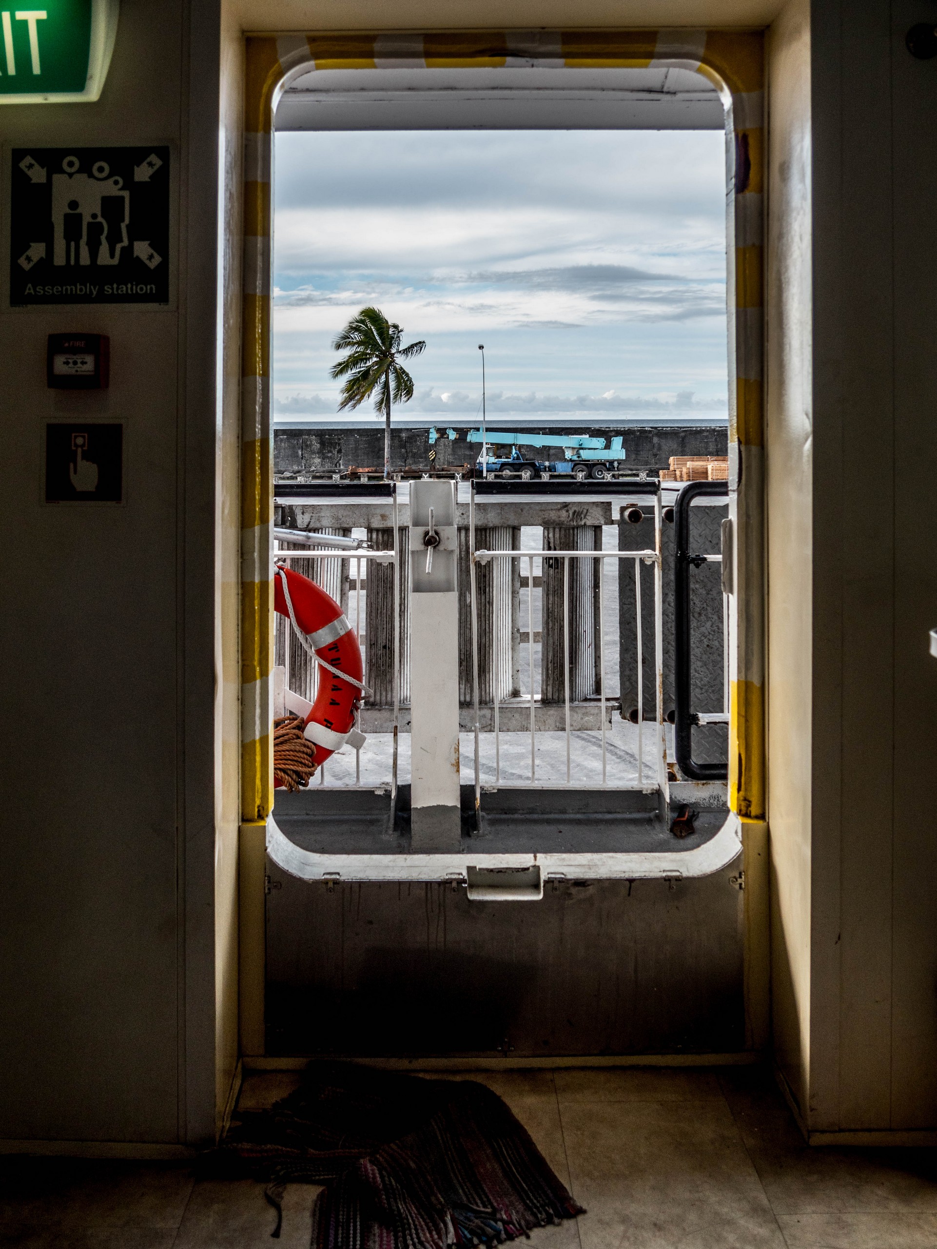 Je pensais ne jamais devoir utiliser l’expression « sortir de sa zone de confort ». Et j’aimerai te dire, Lectrice, Lecteur, que c’est parce que je me sens à l’aise partout (non, je déteste cette expression en fait) mais là, force est de constater que c’est ce qui se rapporte le mieux à ce que je ressens. Mais par contre, il y a les Polynésiens. A la gentillesse sans limite, au sourire franc et au tutoiement facile. En voyant la petite popa’a arriver sur le bateau et qui, drôle d’idée, a préféré dormir en couchette qu’en cabine (et je t’avoue que c’était surtout une question de prix), l’équipage m’a tout de suite adoptée. Reste à trouver mes marques sur ce tout petit espace de vie.
