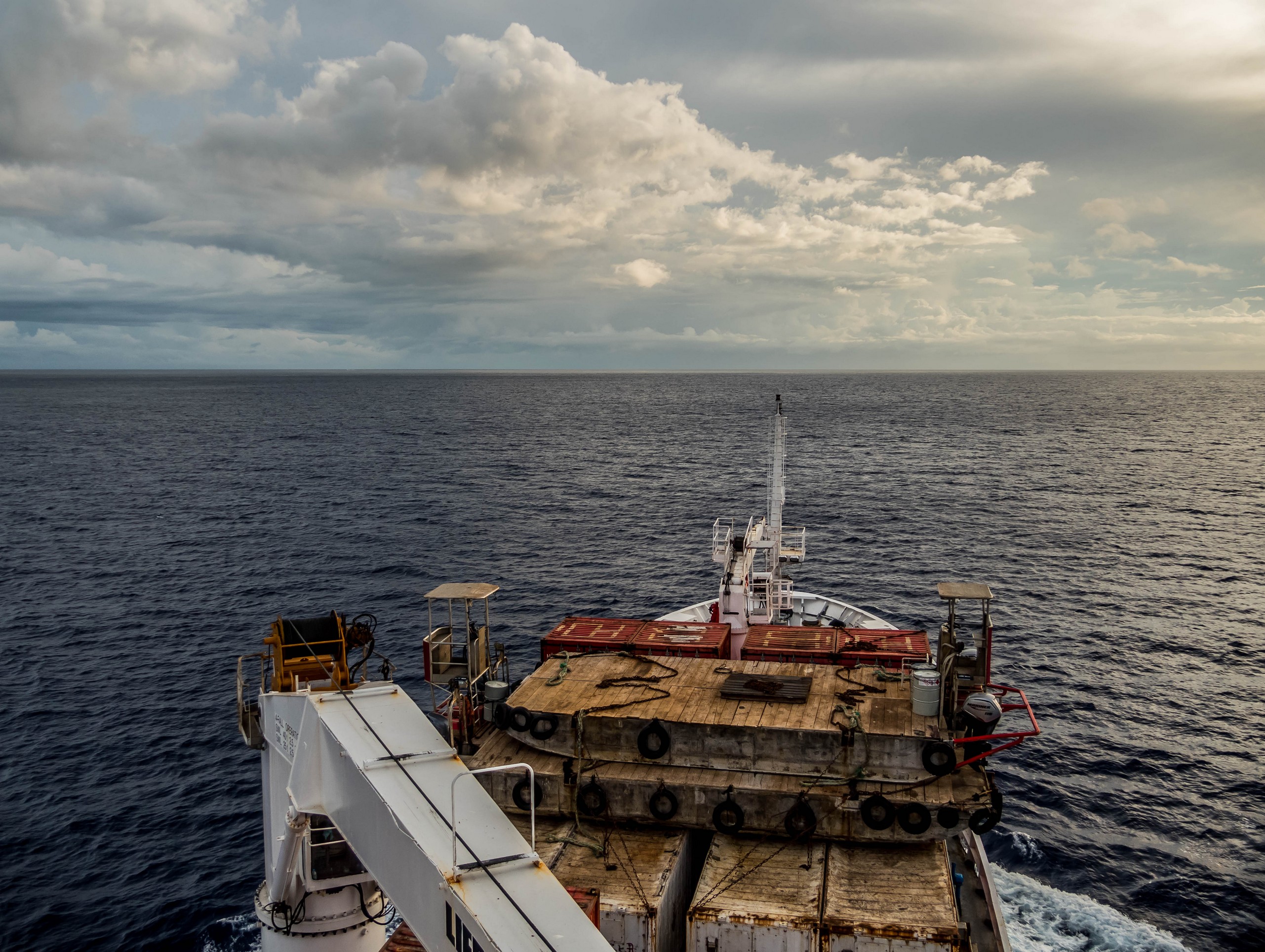 Les nuages tourmentés, je les retrouve dans le ciel de Tahiti. L’été, ce qui signifie la saison des pluies, fut long à venir mais le voici. Et la météo de Polynésie d’être chamboulée entre petite averse et soleil cuisant. Je transpire de tous mes pores. J’adore les tropiques mais cette impression permanente d’être une salaison qui dégorge en plein soleil me plaît moyen. Ce sera différent sur le bateau… Car finalement, m’y voilà : le Tuhaa Pae IV. Quand je monte à son bord, j’ai encore du mal à le croire. C’est comme si j’atteignais l’inaccessible. Je savais qu’il existait, ce bateau (quoique, les informations précises à son sujet sont bien minces) mais les péripéties de la vie qui m’ont empêché de le toucher du doigt auraient presque fini par me convaincre qu’il était une légende. Mais non, ce 4 novembre 2018, avec Evaina, la fille de Mélina qui est devenue une amie depuis notre rencontre lors de mon tour du monde, je monte la planche de fer qui me donne accès à ce rêve vieux de neuf ans. Elle a tenu à m’amener jusqu’au port et à s’assurer que je serai bien.